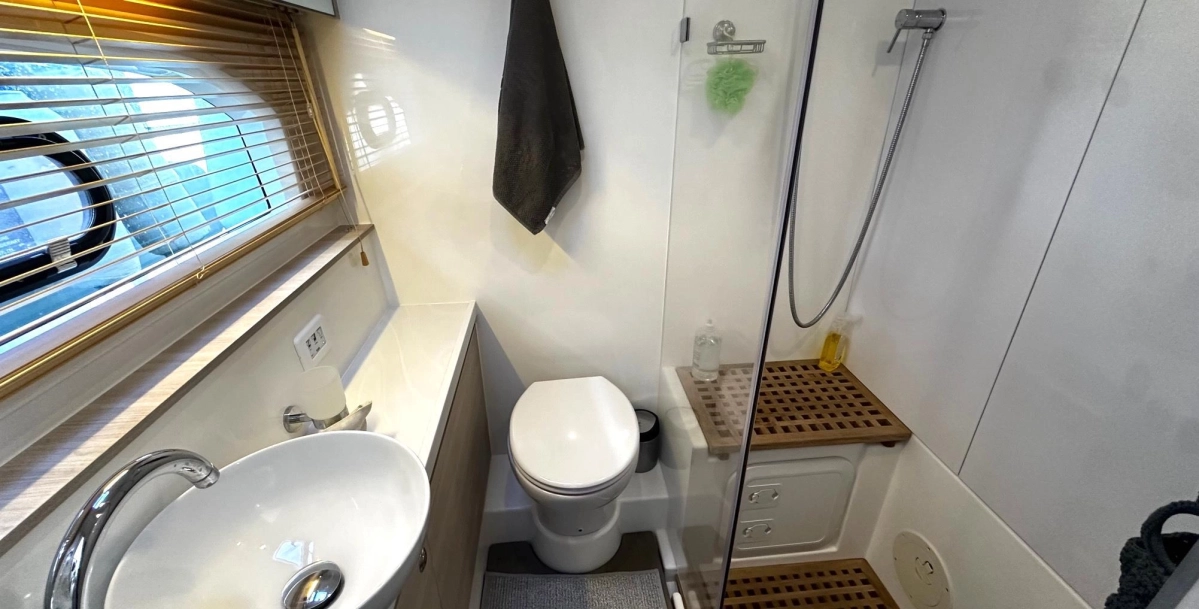El Aquila 44 Yacht es uno de los powercats más valorados del mercado por su combinación de estabilidad, eficiencia y espacio real habitable. Su amplia manga ofrece un salón panorámico luminoso y tres cabinas dobles con baño privado, logrando el confort de un yate mayor en una eslora contenida.