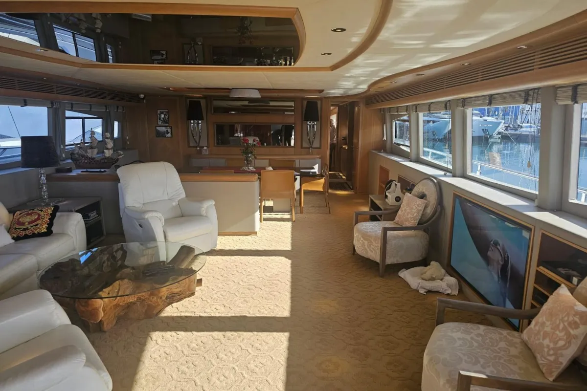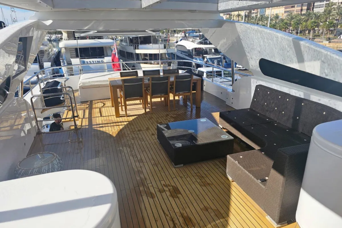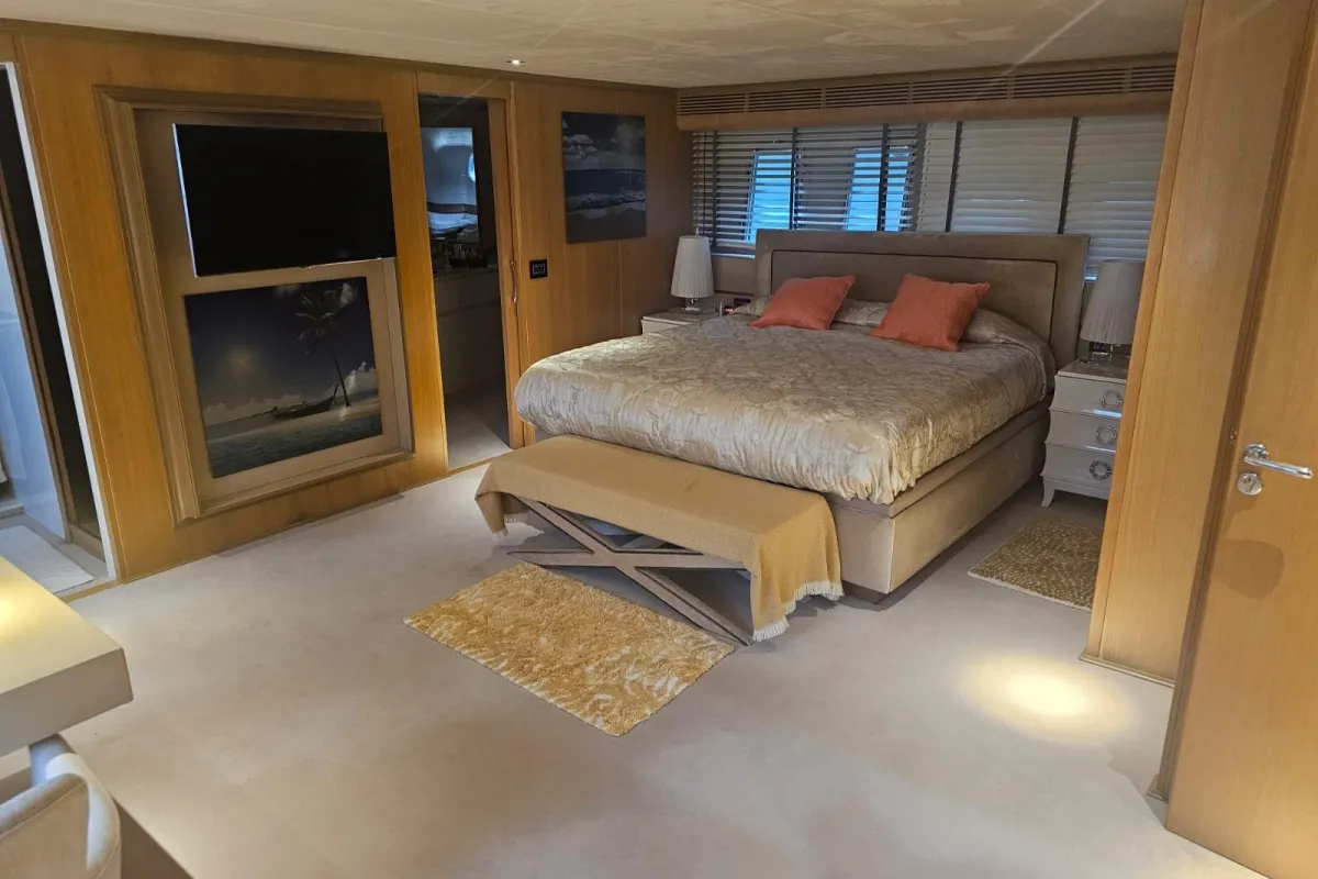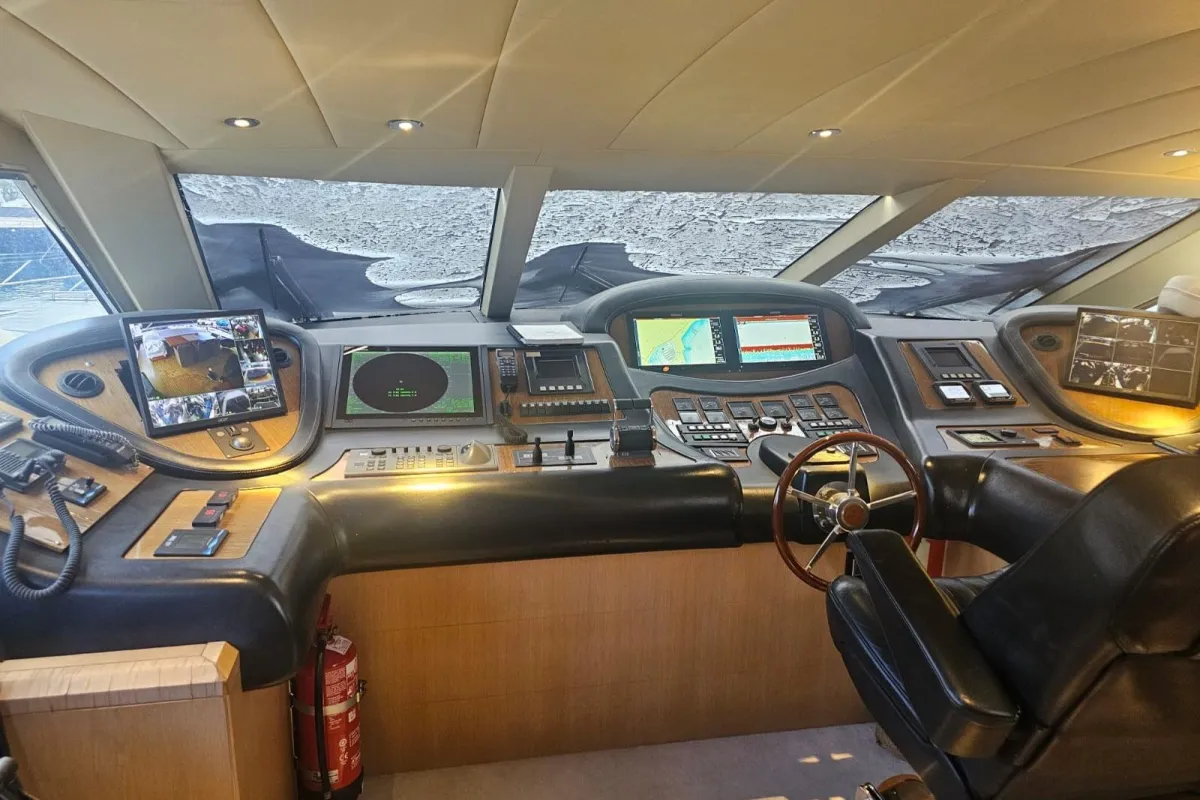 [EN] Introducing the magnificent "Last Man Standing," a stunning 31.1-meter mega yacht crafted by Astondoa in 2003. This luxurious vessel boasts a sleek fiberglass hull with a planing shape, ensuring exceptional performance on the water. Powered by twin MTU 12V396TE94 engines, each delivering an impressive 2200 hp, it achieves a cruising speed of 21 knots and a maximum hull speed of 26 knots, making it perfect for exhilarating adventures. Accommodating up to 8 guests in comfort, the yacht features four well-appointed heads, enhancing the onboard experience. The hydraulic windlass adds convenience to your anchoring process, while the spacious deck offers ample room for relaxation and entertainment. With a range of 500 miles, "Last Man Standing" is designed for extended voyages, promising unforgettable memories on the open sea. Experience the epitome of luxury and performance with this remarkable vessel.