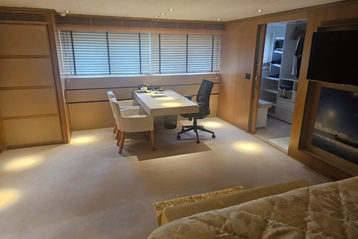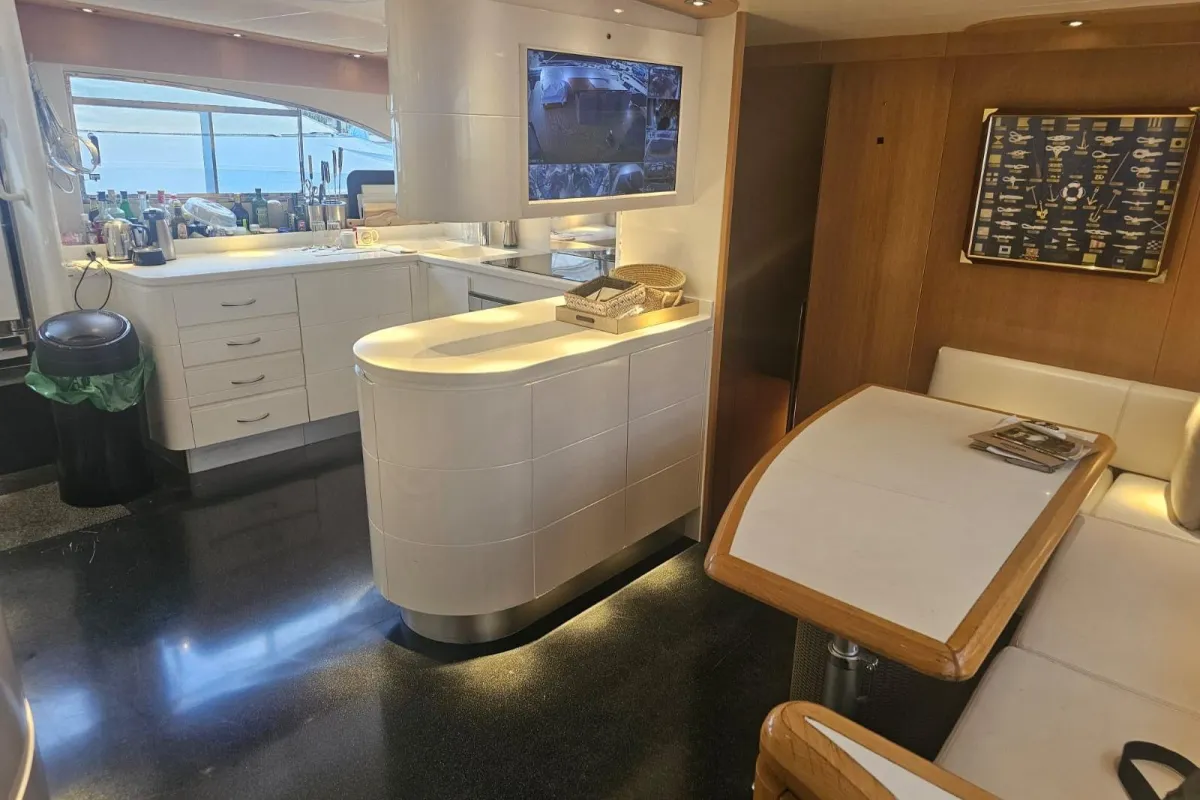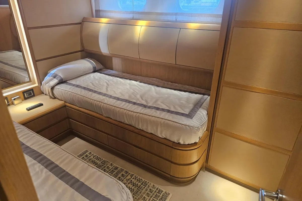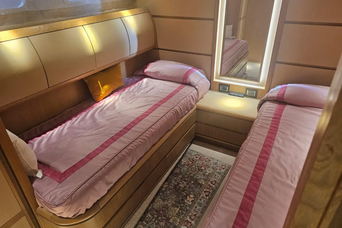 [EN] Introducing the magnificent "Last Man Standing," a stunning 31.1-meter mega yacht crafted by Astondoa in 2003. This luxurious vessel boasts a sleek fiberglass hull with a planing shape, ensuring exceptional performance on the water. Powered by twin MTU 12V396TE94 engines, each delivering an impressive 2200 hp, it achieves a cruising speed of 21 knots and a maximum hull speed of 26 knots, making it perfect for exhilarating adventures. Accommodating up to 8 guests in comfort, the yacht features four well-appointed heads, enhancing the onboard experience. The hydraulic windlass adds convenience to your anchoring process, while the spacious deck offers ample room for relaxation and entertainment. With a range of 500 miles, "Last Man Standing" is designed for extended voyages, promising unforgettable memories on the open sea. Experience the epitome of luxury and performance with this remarkable vessel.