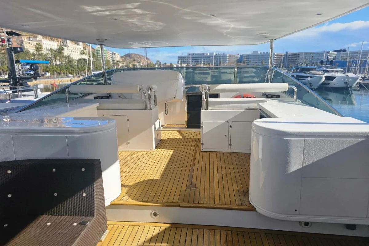 [ES] Presentamos el magnífico "Last Man Standing", un impresionante megayate de 31,1 metros de eslora, construido por Astondoa en 2003. Esta lujosa embarcación cuenta con un elegante casco de fibra de vidrio con una forma de planeo que garantiza un rendimiento excepcional en el agua. Impulsado por dos motores MTU 12V396TE94, cada uno con una impresionante potencia de 2200 CV, alcanza una velocidad de crucero de 21 nudos y una velocidad máxima de casco de 26 nudos, lo que lo hace perfecto para emocionantes aventuras. Con capacidad para hasta 8 invitados, el yate cuenta con cuatro baños bien equipados que mejoran la experiencia a bordo. El molinete hidráulico facilita el fondeo, mientras que la espaciosa cubierta ofrece amplio espacio para la relajación y el entretenimiento. Con una autonomía de 800 kilómetros, "Last Man Standing" está diseñado para viajes largos, prometiendo recuerdos inolvidables en alta mar. Experimente la máxima expresión del lujo y el rendimiento con esta extraordinaria embarcación.