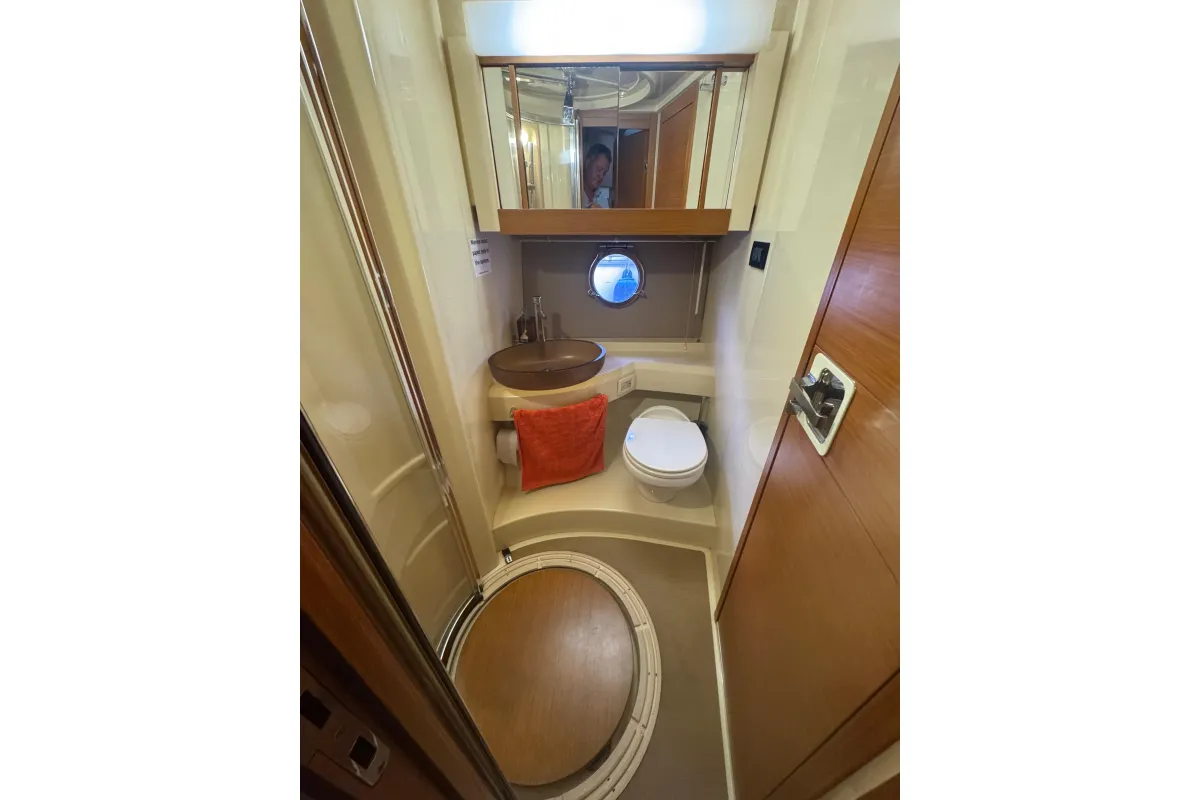 Con un solo propietario desde su compra, esta es una oportunidad única para disfrutar de un crucero mediterráneo Azimut flybridge de tres camarotes en excelente estado, un verdadero hogar lejos de casa, a un precio muy razonable. Con el IVA de la UE pagado, todas las comodidades mediterráneas, aire acondicionado, generador, pasarela y plataforma de baño hidráulicas, bimini, cocina completa, electrónica y tan solo 490 horas de uso en sus motores Cummins de 480 CV, lo convierte en una embarcación realmente completa.