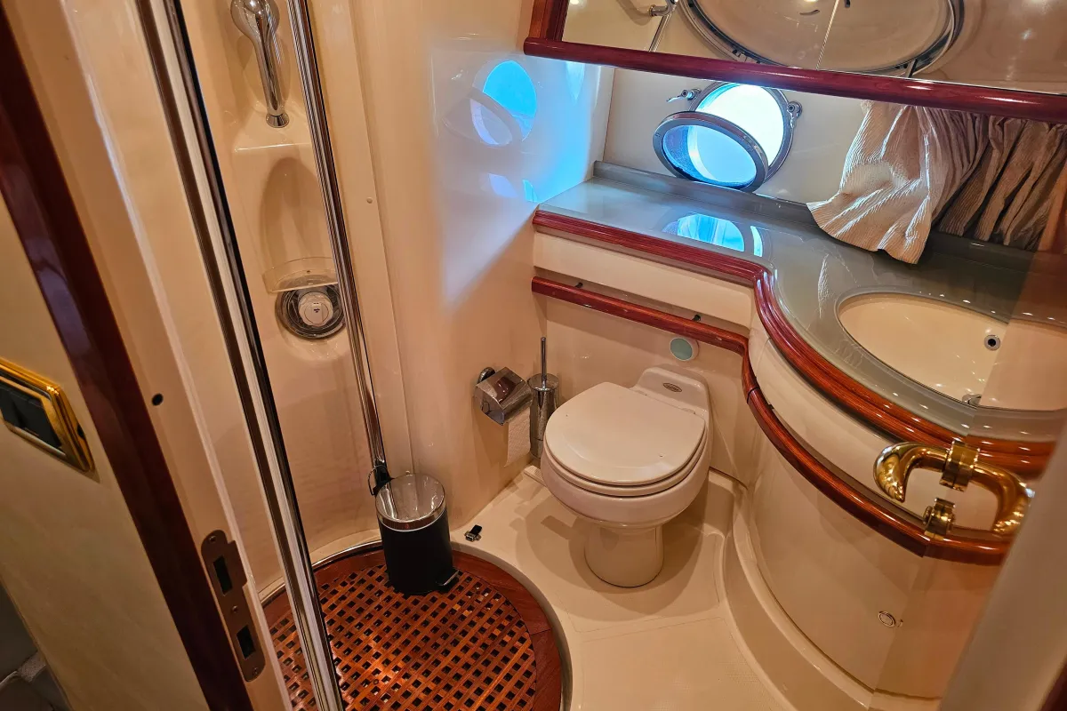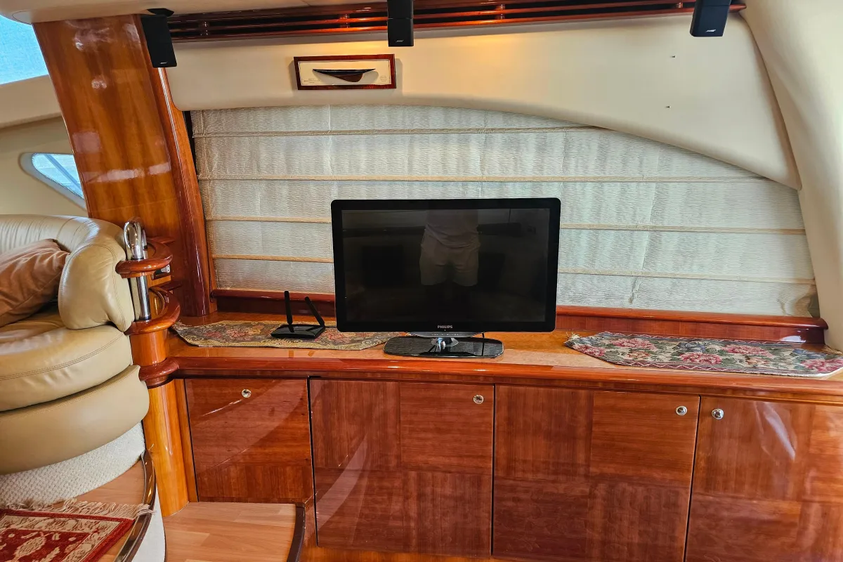 Introducing the stunning Azimut 55, a remarkable motor yacht from 2004 that combines elegance with performance. With an overall length of 17.51 meters, this vessel boasts a sleek modified Vee hull cr afted from durable fiberglass, ensuring a smooth and stable ride on the water. Powered by twin Caterpillar 12 DITA engines, each delivering an impressive 710 horsepower, the yacht achieves a cruising speed of 22 knots and a maximum hull speed of 32 knots, making it perfect for exhilarating adventures. The engines have been well-maintained, with only 1578 and 1580 hours of use. Accommodating up to three cabins and two heads, the Azimut 55 offers ample space for relaxation and comfort. Additional features include an electric windlass, enhancing convenience during anchoring. This yacht is a perfect blend of luxury and performance, ready to create unforgettable memories on the water.The solárium has been reupohlsterd recently .Equipped with subacuatic lights and cortesy lights in both extern gangways an interior ladder. Wintercovers for the fly and cockpit,sunshade for cockpit.Simrad satélite antenas sistema.Bose music equipment in saloon.Cockpit cámara conected to the movil.