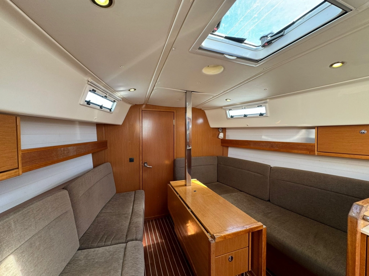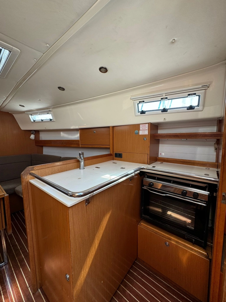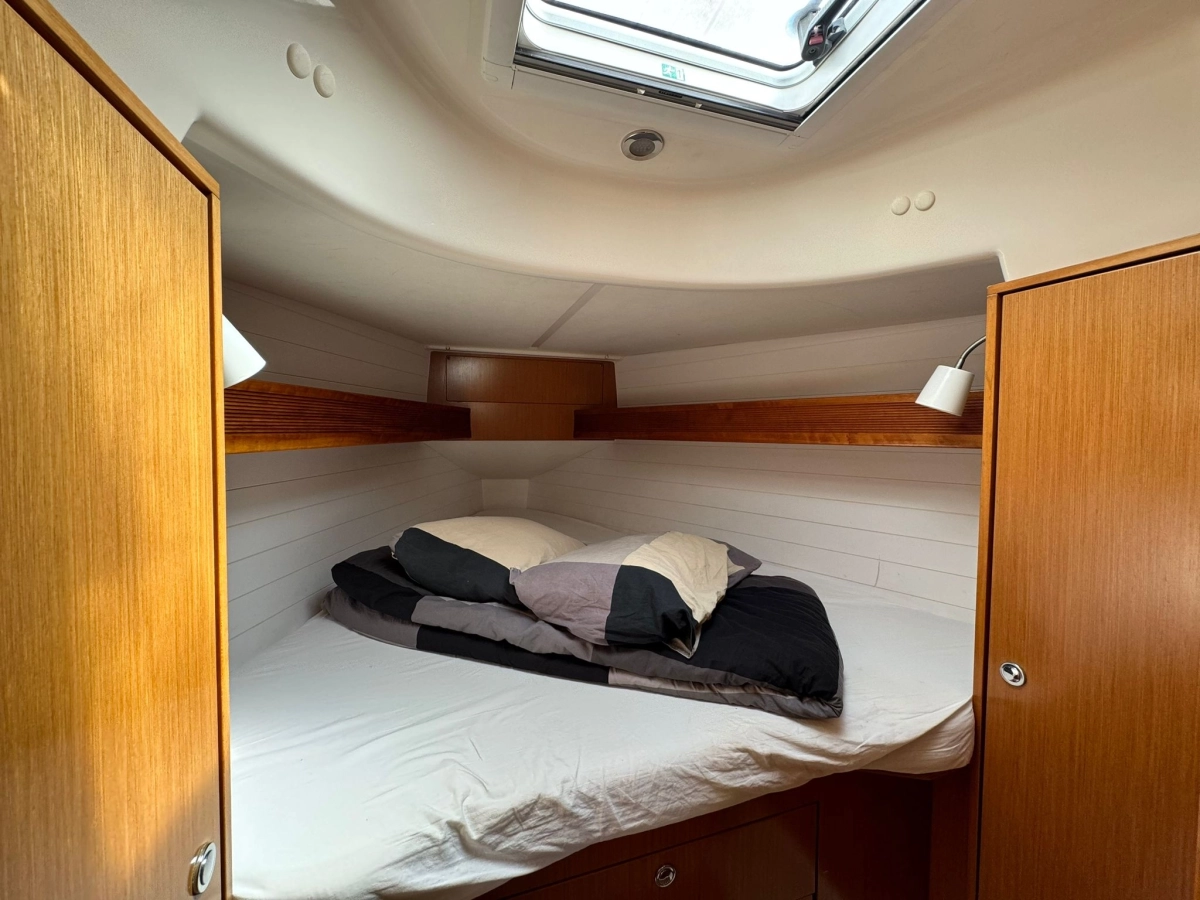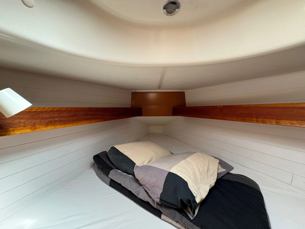2 Cabinas 1 Baño, TV + Antena TV, Emisora VHF Garmin, GPS Plotter Garmin, Equipo de viento Garmin, Sonda + Corredera Garmin, Cargador y medidor de baterías, Radio exterior e interior, Cocina a gas con horno, Nevera eléctrica, Conexión 220V, Plataforma de baño abatible, Escalera de baño, Toldo Bimini, Mesa en bañera, Rueda plegable, Balsa y Radiobaliza a revisar, Neumática + FB 2.3 Hp, Molinete eléctrico.