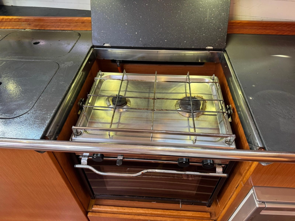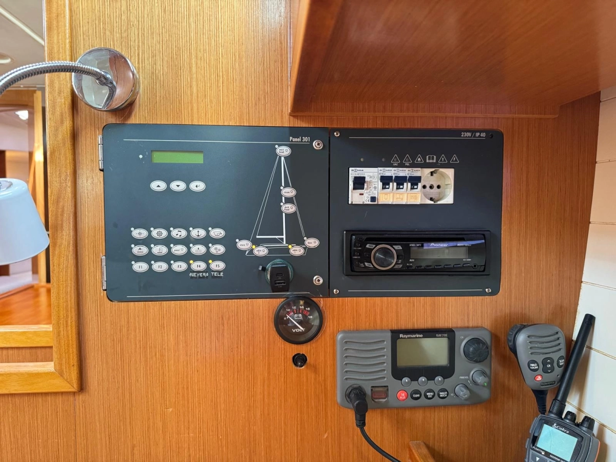 3 Cabinas 2 Baños, Equipo de viento, Hélice de proa, VHF doble estación, Tridata, Piloto Automático, GPS Plotter, Radar, Molinete eléctrico, Fondeo ancla y cadena, Hélice de proa, TV salón + Antena TV, Radio CD con altavoces, Balsa (2022) y Radiobaliza, Pescantes en popa, Colchonetas solárium, 2x Nevera eléctrica, Cocina con horno y microondas, Ducha en bañera, Capota rociones y Bimini, Cargador de baterías, convertidor, Mesa en salón abatible, Agua caliente, 2 Timones/ruedas, Teca en bañera y Plataforma, Cola Saildrive nueva 2024. 1.862 horas de motor.