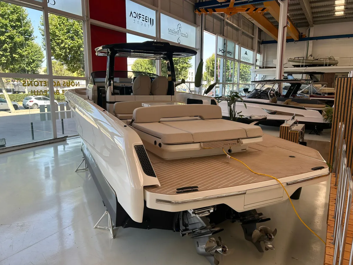Embarcación en fabricación. Entrega mayo 2026. Fotos de archivo, los colores y el equipamiento pueden no corresponder exactamente a la unidad ofrecida. Modelo Astor 36 del prestigioso astillero italiano Bellini, de 11,30 m de eslora total. Barco con hard top y gran solárium a popa. Interiores de diseño moderno y gran habitabilidad.