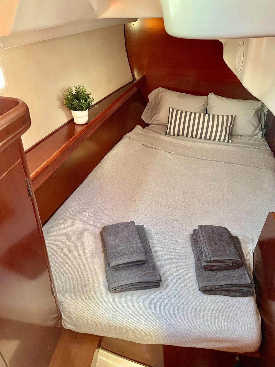 3 Cabinas 1 Baño, Piloto Automático Raymarine año 2022, Equipo de viento B&G, Sonda corredera B&G, Balsa y Radiobaliza a revisar, GPS Plotter nuevo, Emisora VHF, Molinete eléctrico, Toldo Bimini + Avance, Capota rociones, Nevera eléctrica, Cocina a gas, Agua caliente, Equipo Audio + altavoces, Ducha en bañera, Escalera de baño, Neumática + Fueraborda, Placas solares, Asientos en balcón de popa, Mesa en bañera, Pasarela, Molinete eléctrico, Enrollador de Génova nuevo, Colchonetas bañera nuevas, Motor revisado, Documentación al día.