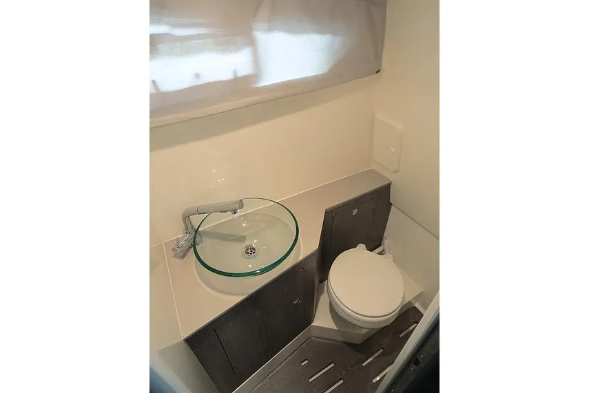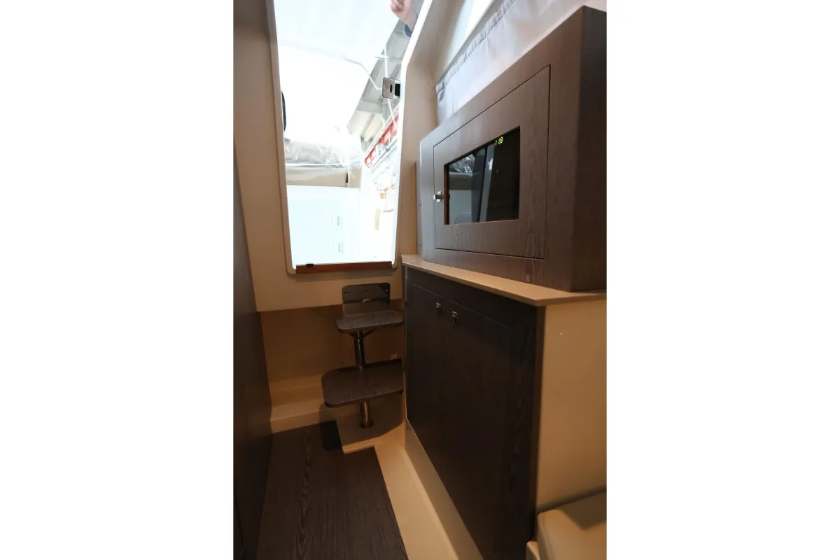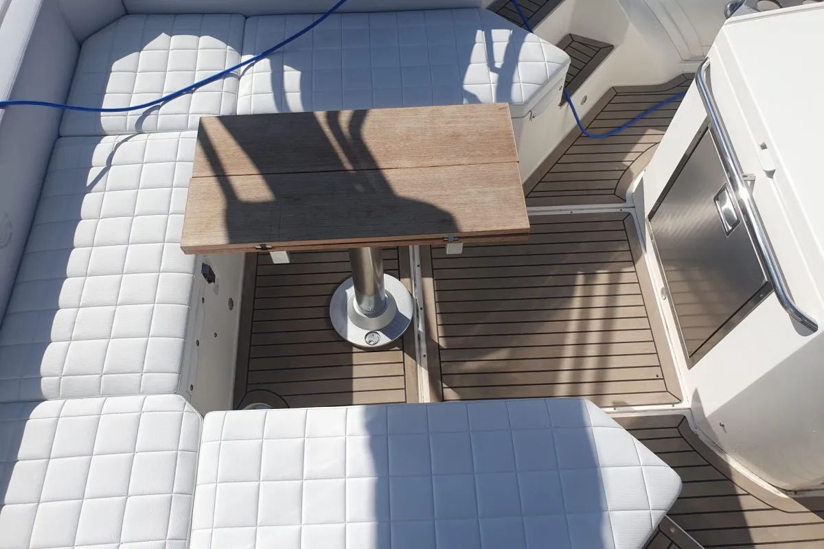 The Tempest 40's deck layout is typical of this type of boat, but with an enormous cockpit that greatly expands its possibilities. Its certification allows it to accommodate up to 18 passengers. The bar unit includes a 65-liter refrigerator under a lid, a sink, and a work surface. The interior is understated and comfortable, with a sofa that converts into a double bed in the bow, a side cabinet, a separate head, and ample storage space. A functional, sporty, and elegant vessel, ideal for day cruising, it offers good living space and excellent performance, even for multi-day voyages.