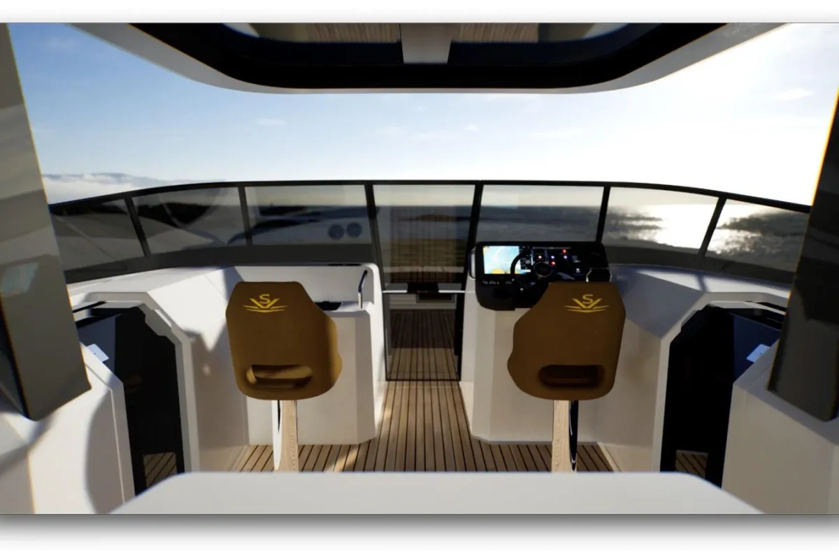 The vessel features 2 private, stylishly appointed cabins and 2 marble-finished bathrooms with showers. Long panoramic portholes provide natural light and sea views. Each cabin is fitted with ambient lighting and independent sound systems. Sophisticated materials, textural contrasts, and bespoke detailing complete the modern, luxurious feel.
