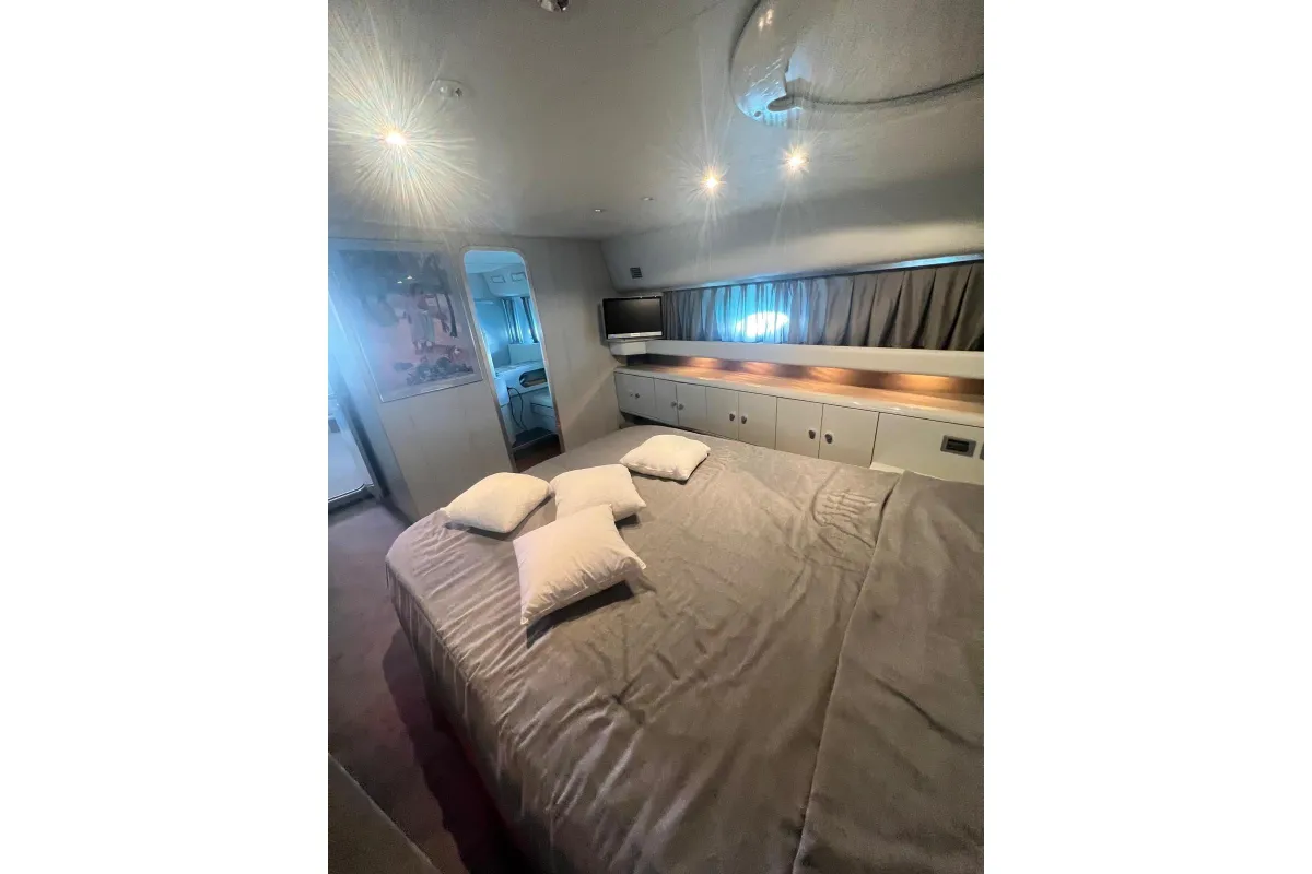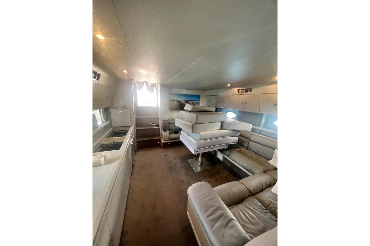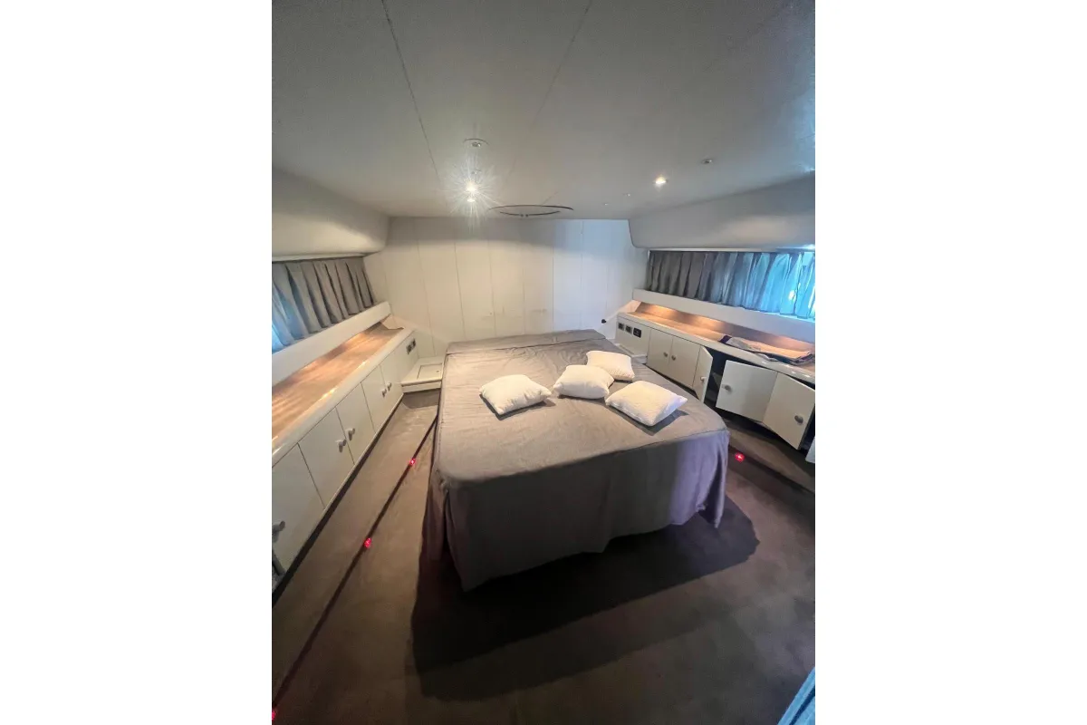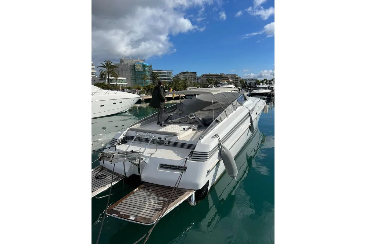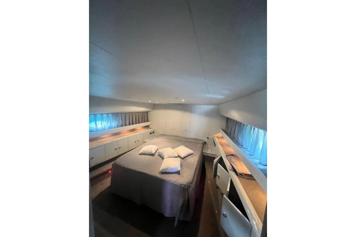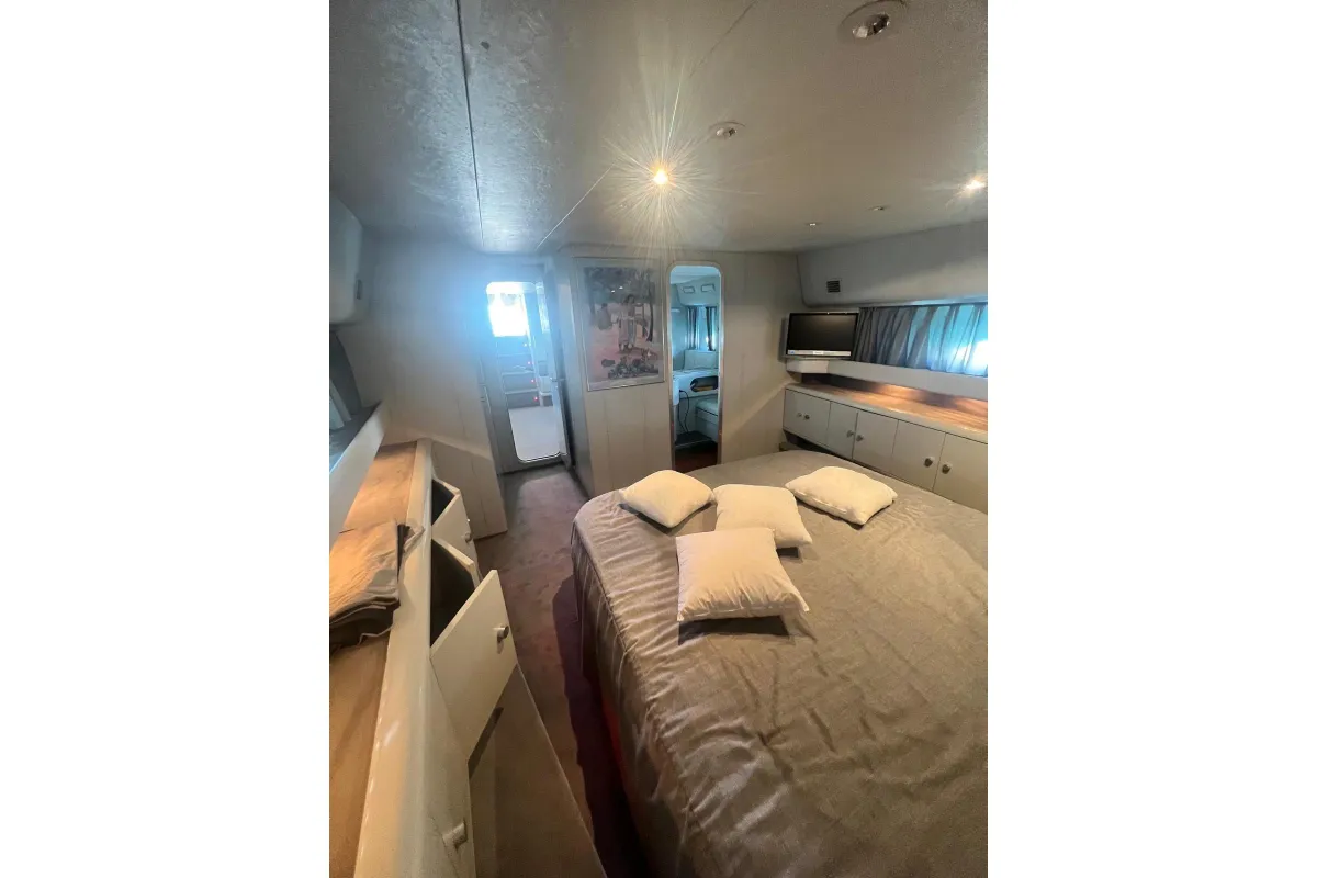[EN] Introducing the stunning 1991 Cherokee 60 Sports Cruiser, a remarkable vessel that combines elegance and performance. With an impressive overall length of 18.5 meters, this boat features a robust fiberglass hull designed in a sleek Deep Vee shape, ensuring stability and agility on the water. Powered by two formidable DETROIT inboard diesel engines, each delivering 1000 horsepower, this cruiser promises exhilarating speed and reliable performance. The electric windlass adds convenience, making anchoring effortless. Accommodating up to three cabins and three heads, the interior is thoughtfully designed for comfort and functionality, perfect for extended voyages or weekend getaways. This used cruiser stands out not only for its impressive specifications but also for its timeless design and craftsmanship, making it an ideal choice for those seeking adventure on the open sea. Experience the thrill of cruising in style with the Cherokee 60, where luxury meets performance.
