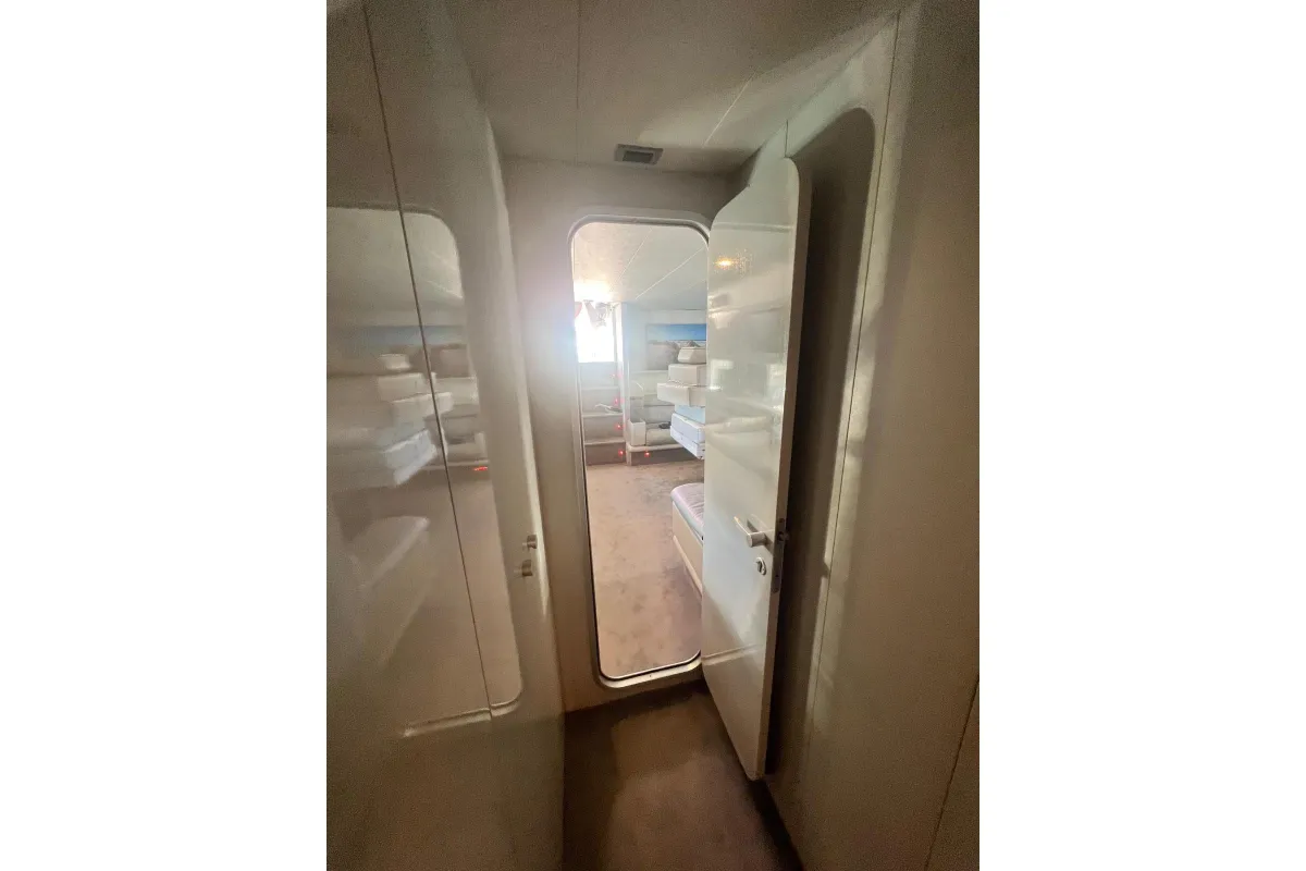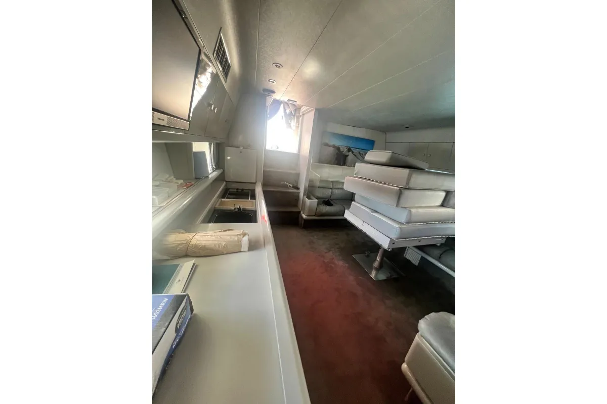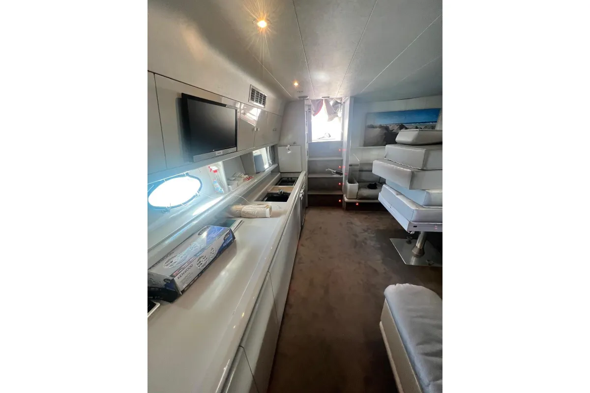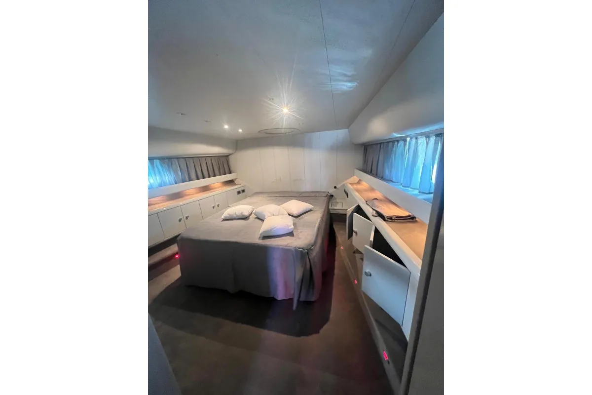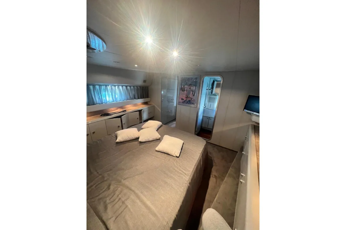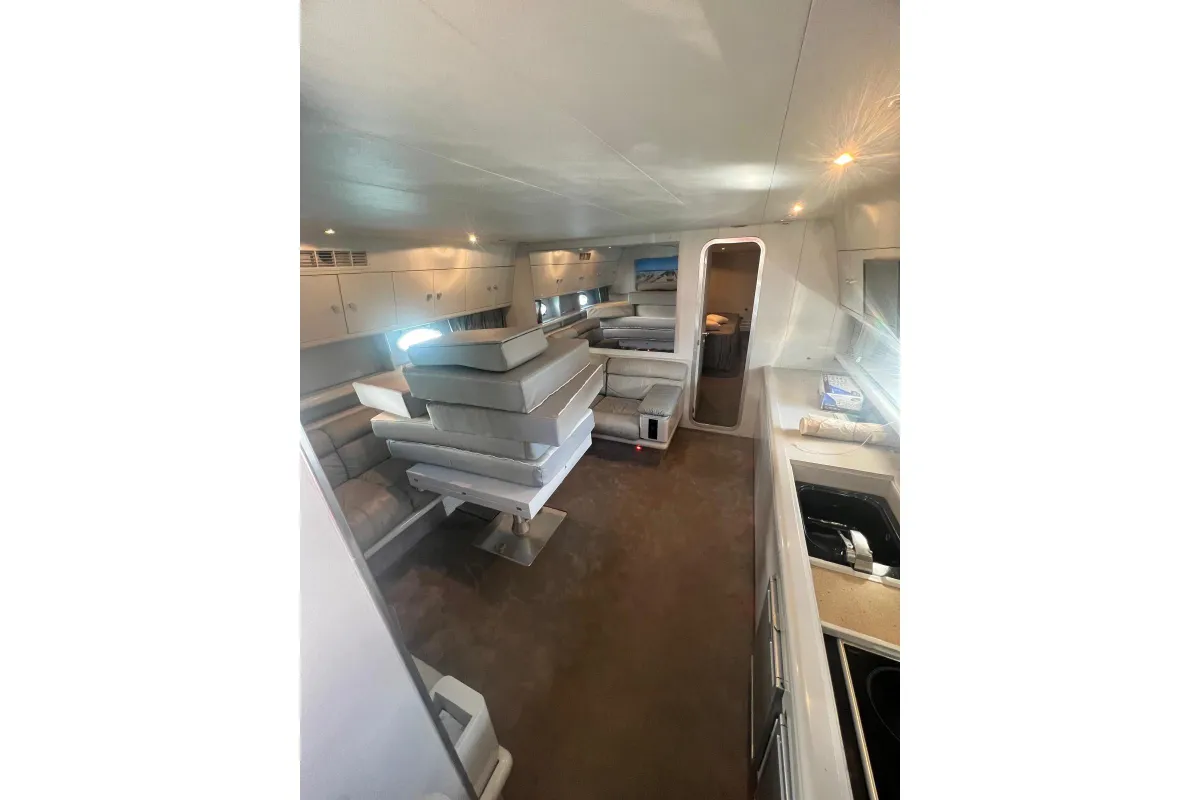 [EN] Introducing the stunning 1991 Cherokee 60 Sports Cruiser, a remarkable vessel that combines elegance and performance. With an impressive overall length of 18.5 meters, this boat features a robust fiberglass hull designed in a sleek Deep Vee shape, ensuring stability and agility on the water. Powered by two formidable DETROIT inboard diesel engines, each delivering 1000 horsepower, this cruiser promises exhilarating speed and reliable performance. The electric windlass adds convenience, making anchoring effortless. Accommodating up to three cabins and three heads, the interior is thoughtfully designed for comfort and functionality, perfect for extended voyages or weekend getaways. This used cruiser stands out not only for its impressive specifications but also for its timeless design and craftsmanship, making it an ideal choice for those seeking adventure on the open sea. Experience the thrill of cruising in style with the Cherokee 60, where luxury meets performance.