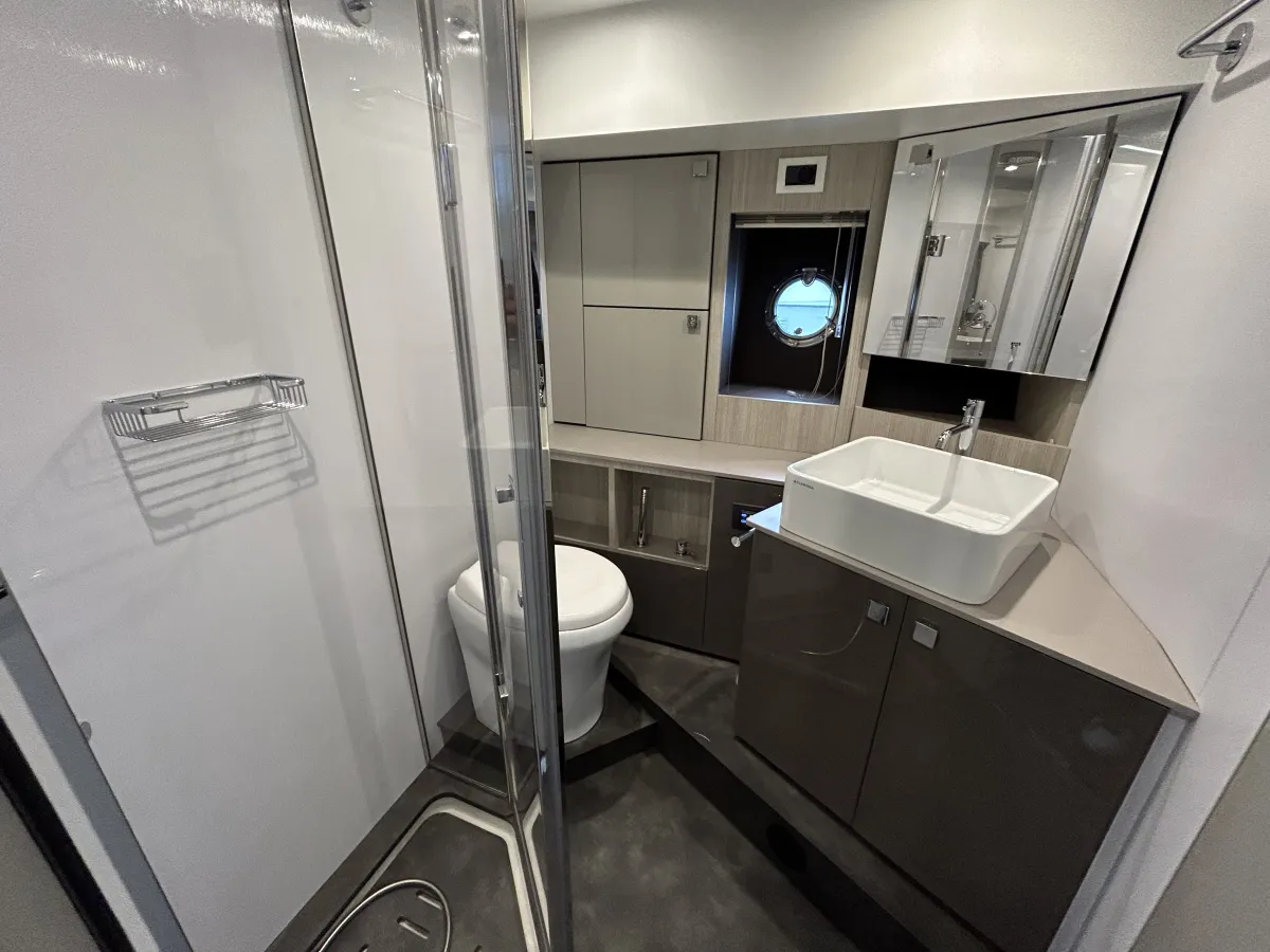 Entrega inmediata. Modelo 60 ST del astillero italiano Cranchi de 18,52 metros de eslora total. Barco con soft top y solárium a popa. Interiores de diseño moderno y gran habitabilidad.