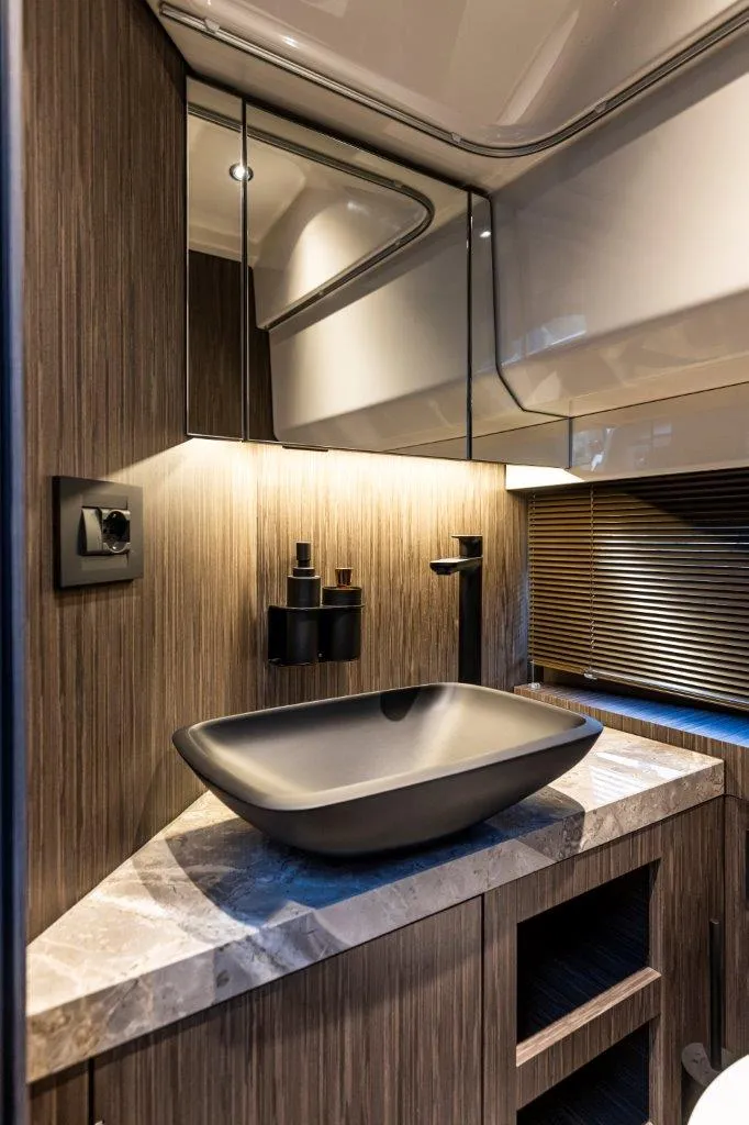 Embarcación nueva disponible próximamente. Fotos de catálogo, los colores y el equipamiento pueden no corresponder exactamente a la unidad ofrecida. Modelo A 32 LT del astillero italiano Cranchi de 10,21 metros de eslora total. De diseño moderno con proa recta, distribución espaciosa, cabinada y con solárium a proa y a popa.