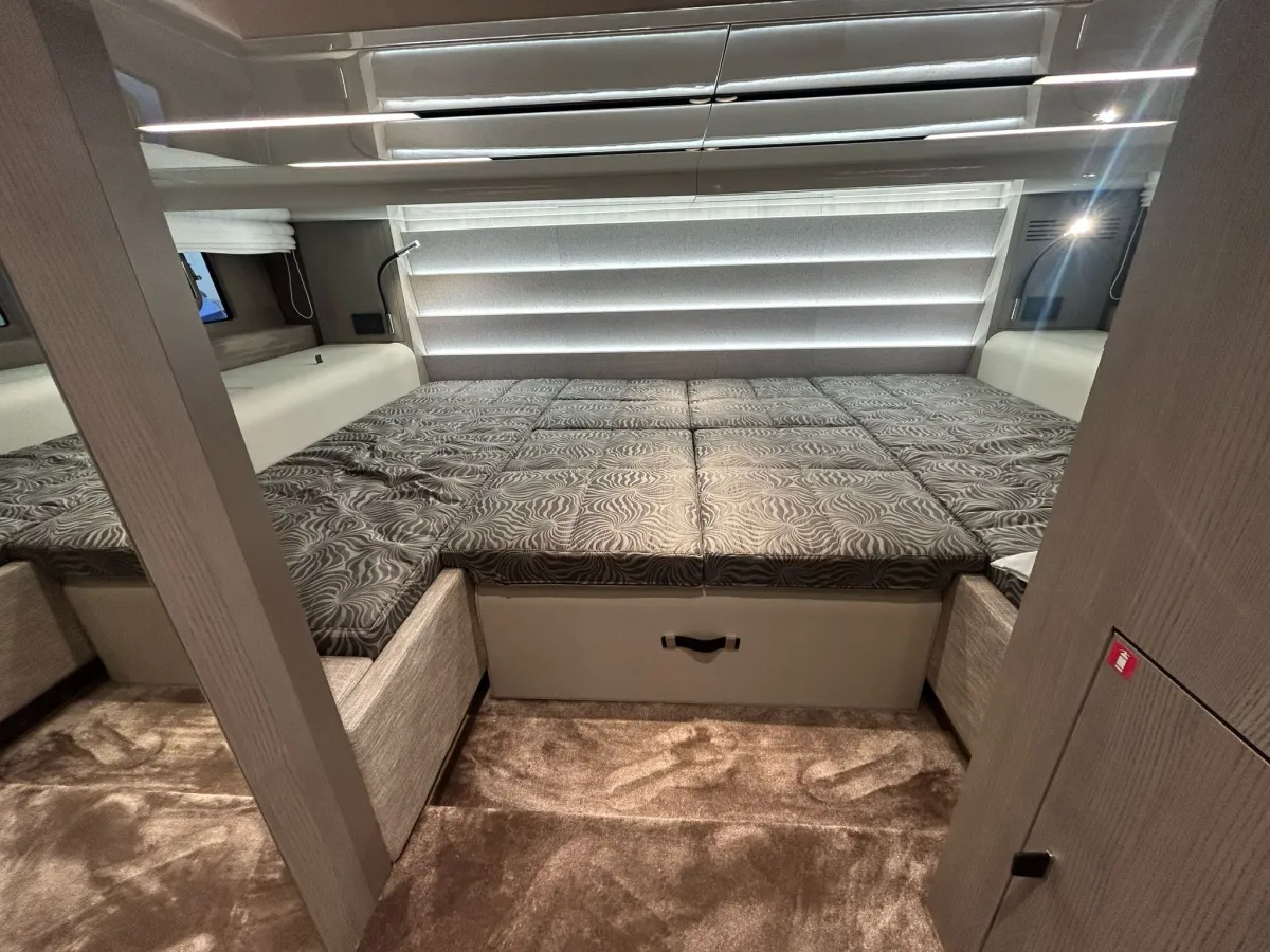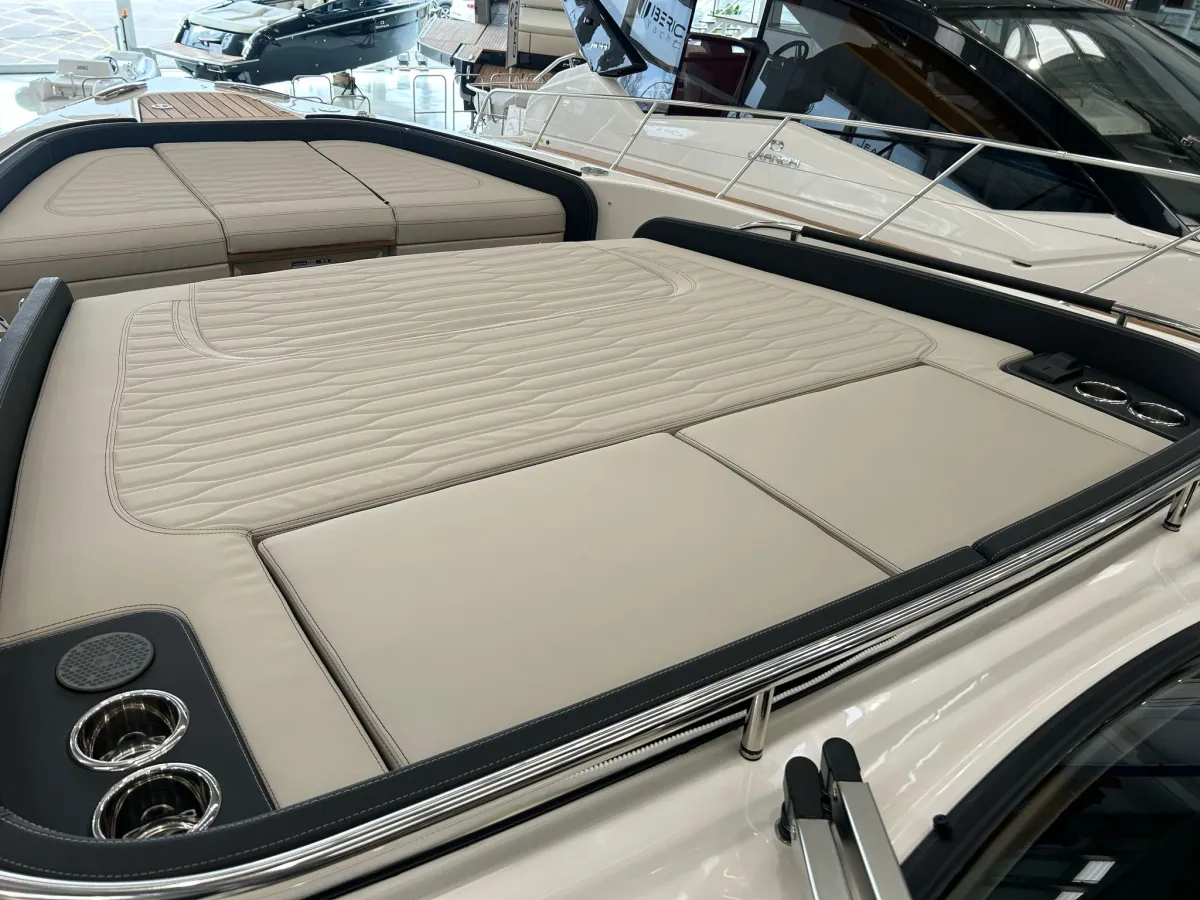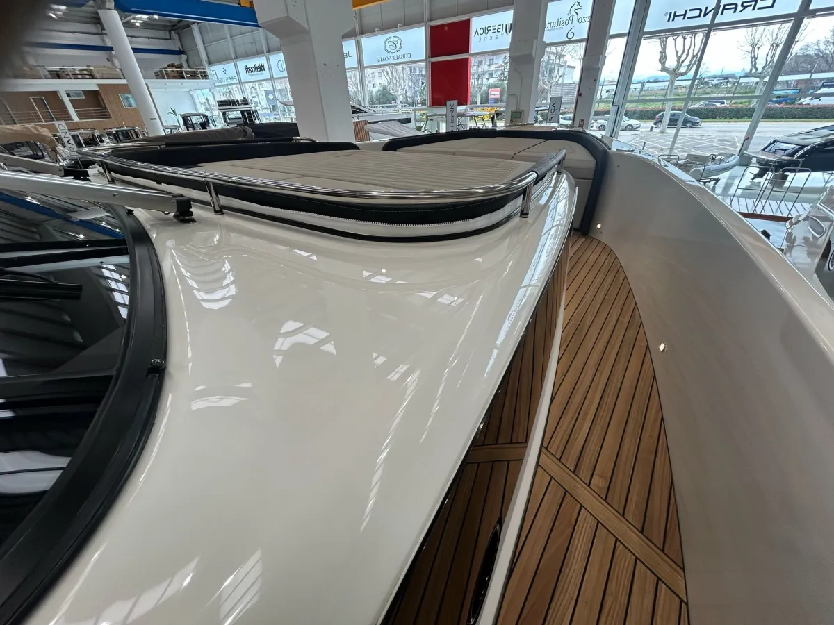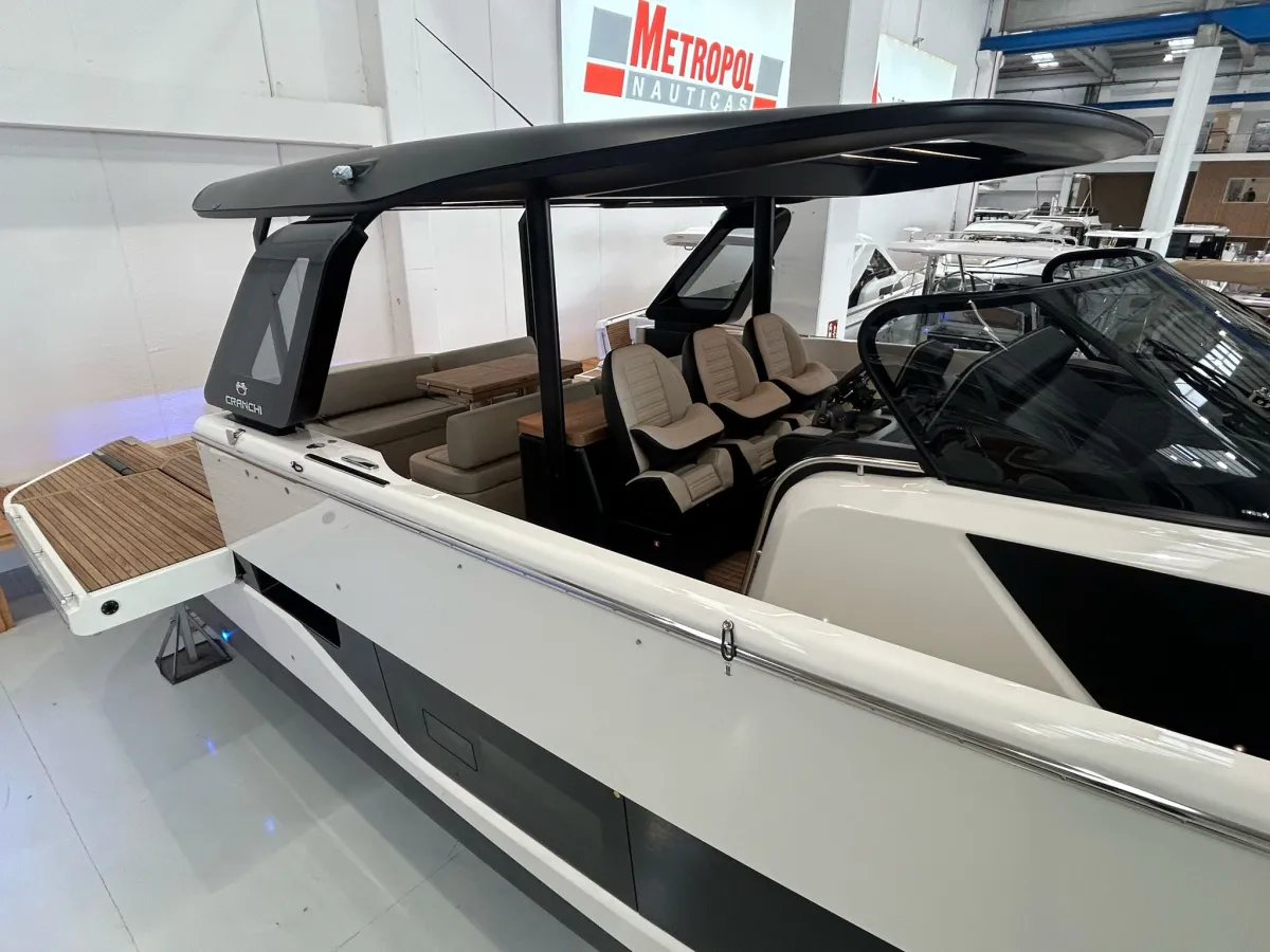 Embarcación en stock. Entrega inmediata. Modelo A 46 LT del prestigioso astillero italiano Cranchi, de 14,25 m de eslora total. Barco con hard top y gran solárium a popa. Interiores de diseño moderno y gran habitabilidad.