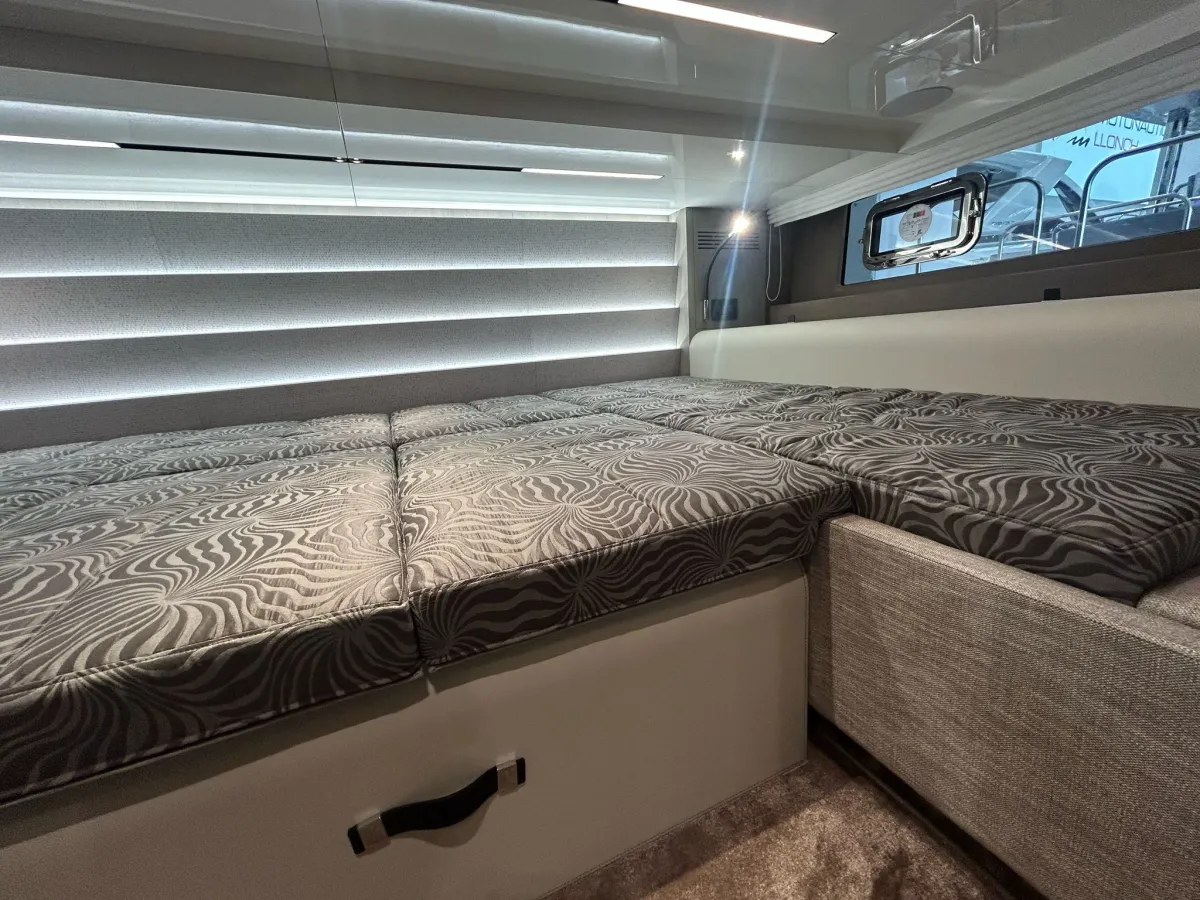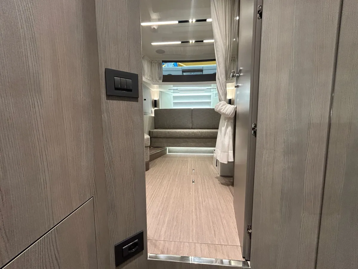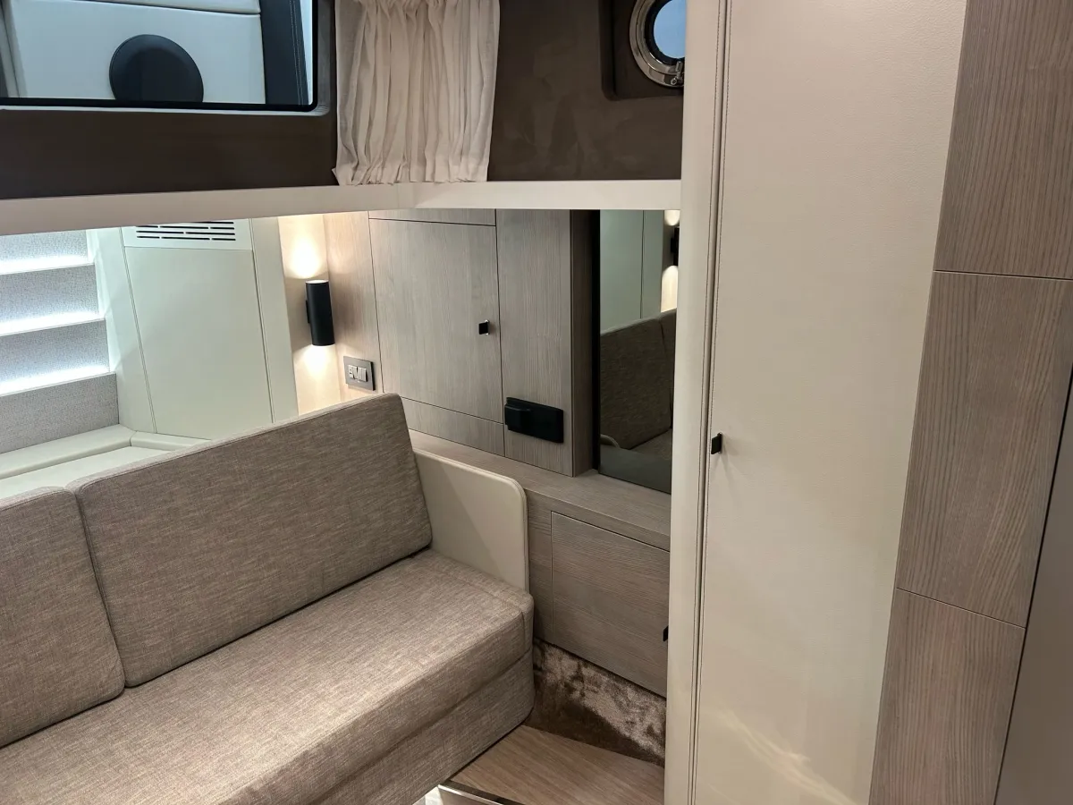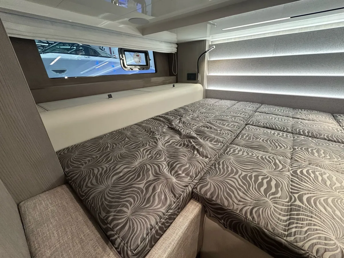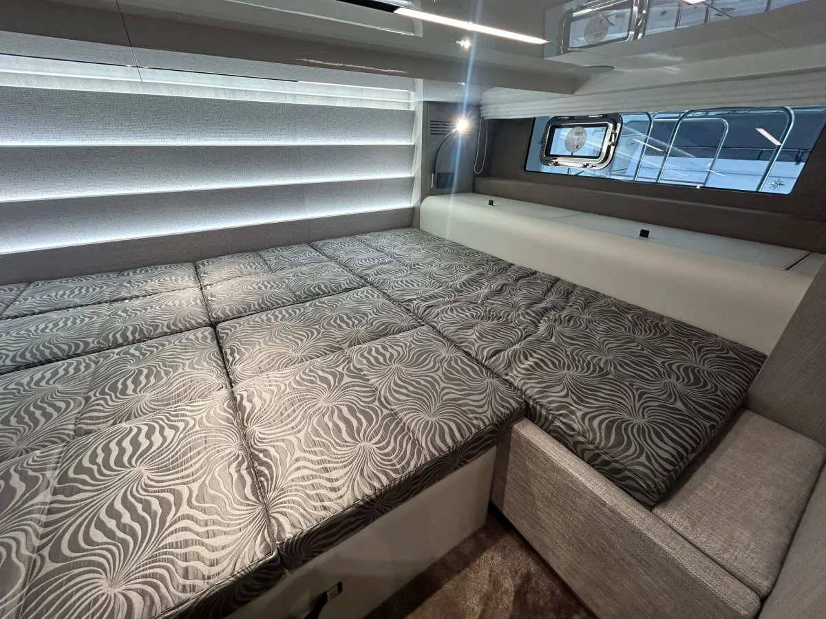 Embarcación en stock. Entrega inmediata. Modelo A 46 LT del prestigioso astillero italiano Cranchi, de 14,25 m de eslora total. Barco con hard top y gran solárium a popa. Interiores de diseño moderno y gran habitabilidad.