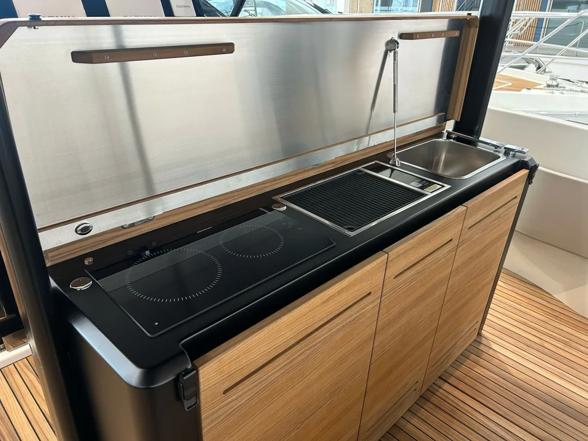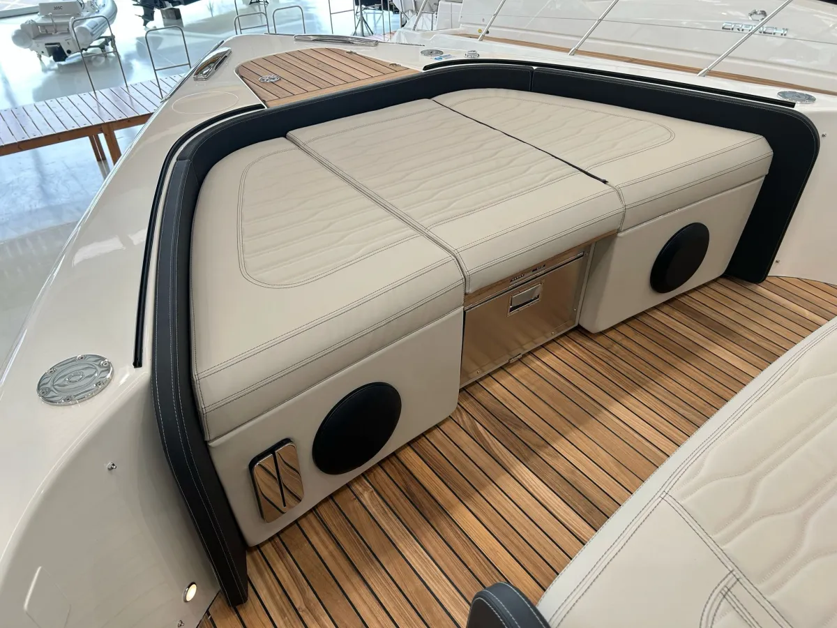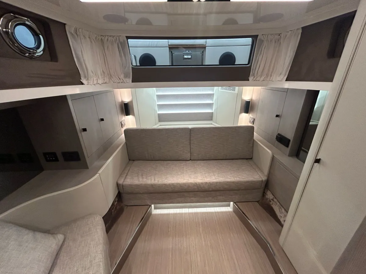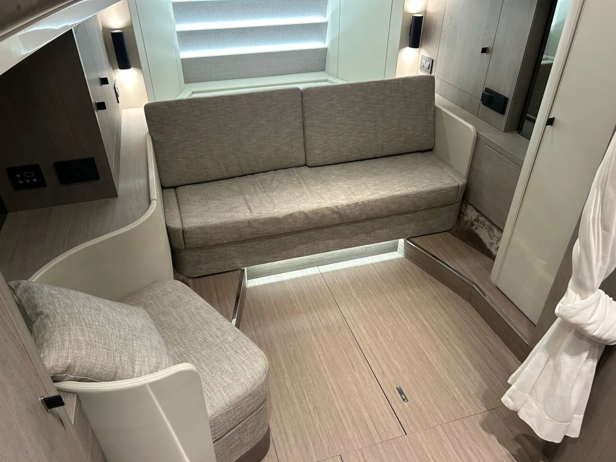 Embarcación en stock. Entrega inmediata. Modelo A 46 LT del prestigioso astillero italiano Cranchi, de 14,25 m de eslora total. Barco con hard top y gran solárium a popa. Interiores de diseño moderno y gran habitabilidad.