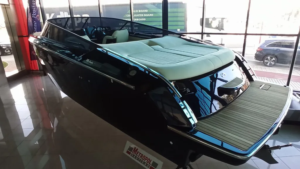Embarcación nueva en stock. Entrega inmediata. Modelo E 26 Classic del astillero italiano Cranchi de 7,85 metros de eslora total. Barco con cómoda plataforma de baño, distribución espaciosa, cabinada y solárium popa.
