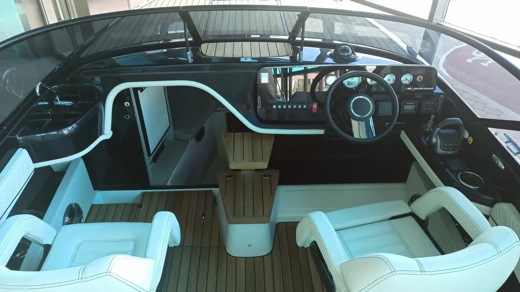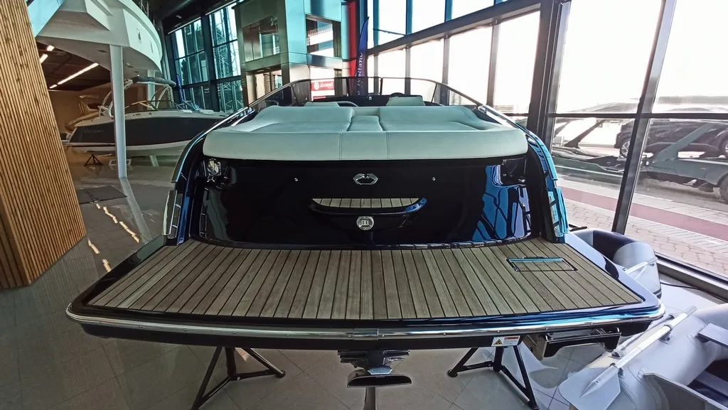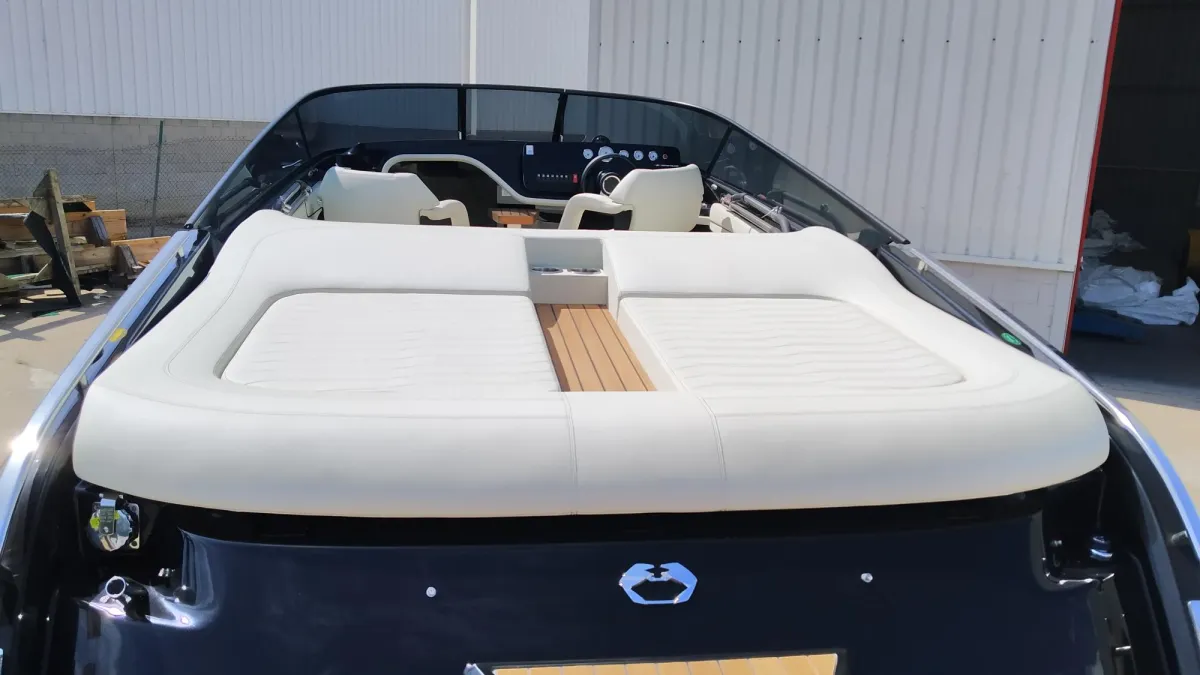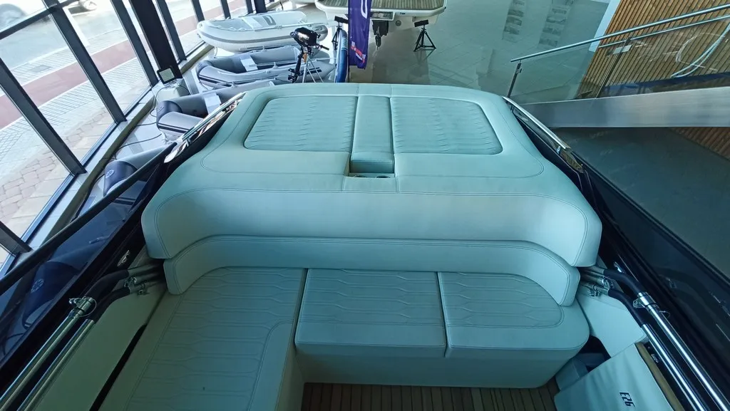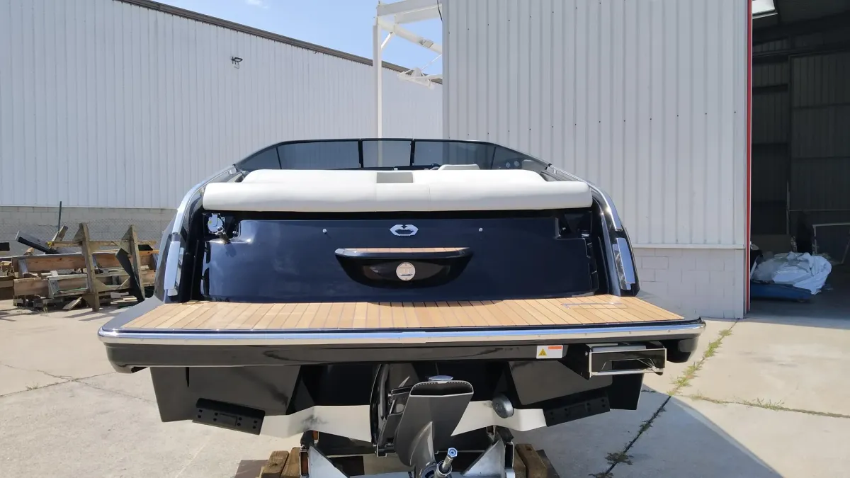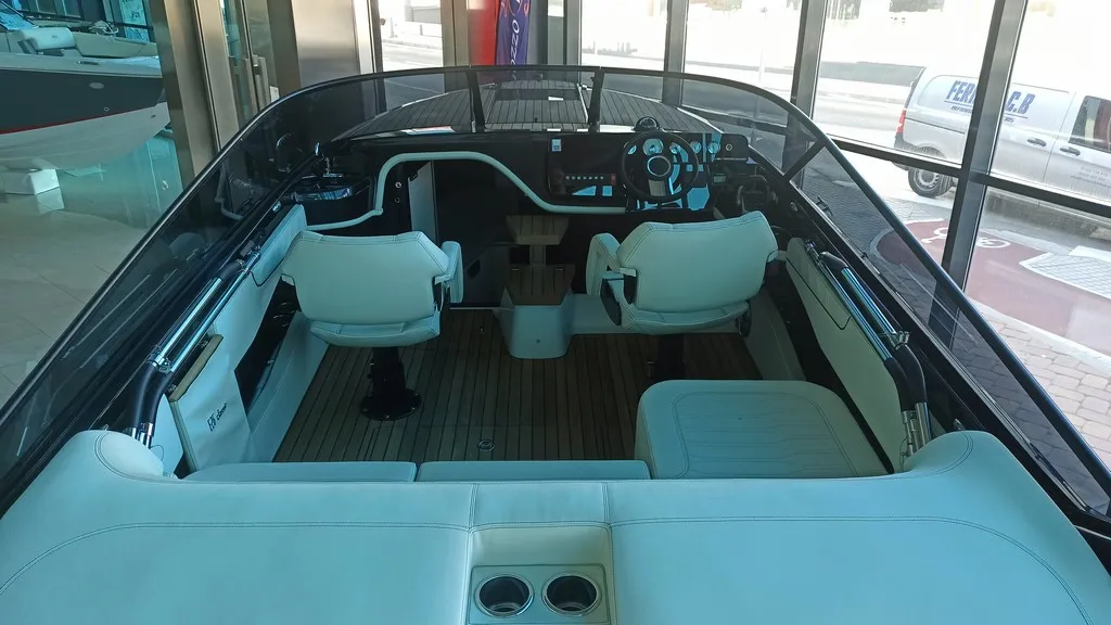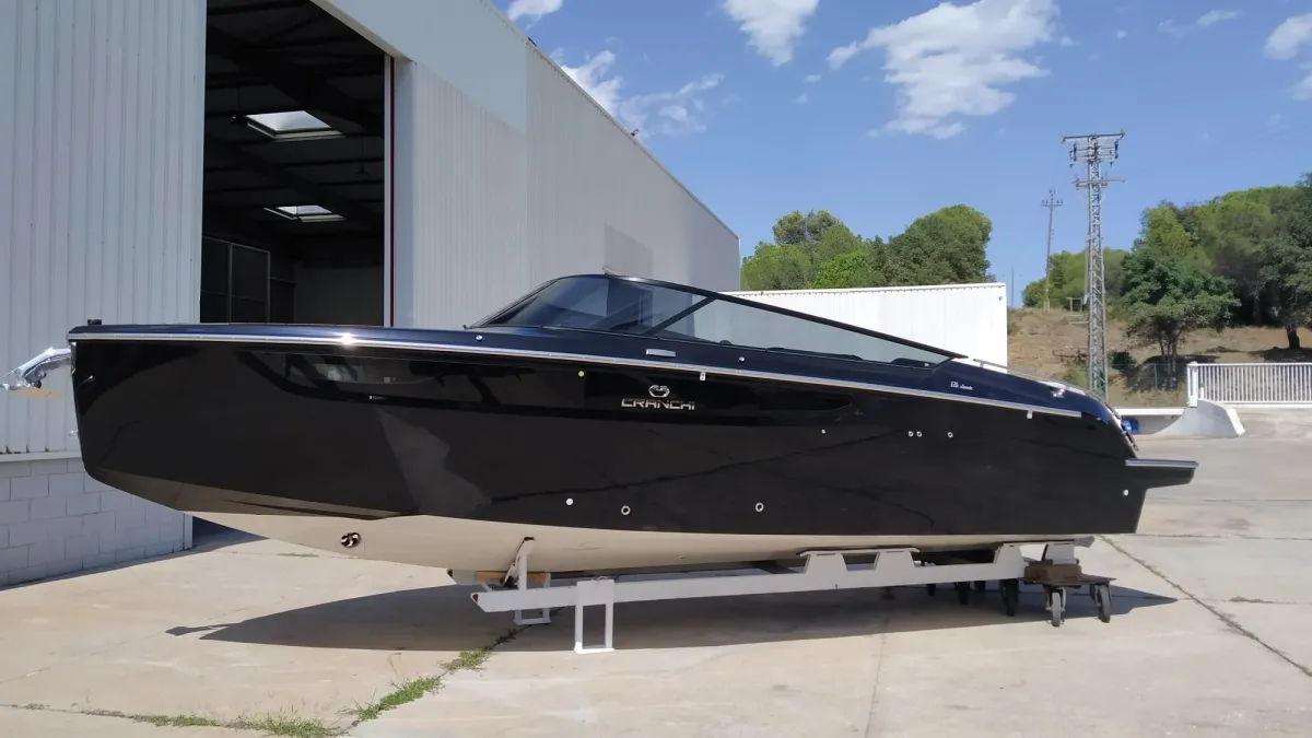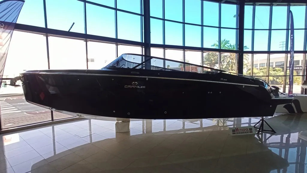 Embarcación nueva en stock. Entrega inmediata. Modelo E 26 Classic del astillero italiano Cranchi de 7,85 metros de eslora total. Barco con cómoda plataforma de baño, distribución espaciosa, cabinada y solárium popa.