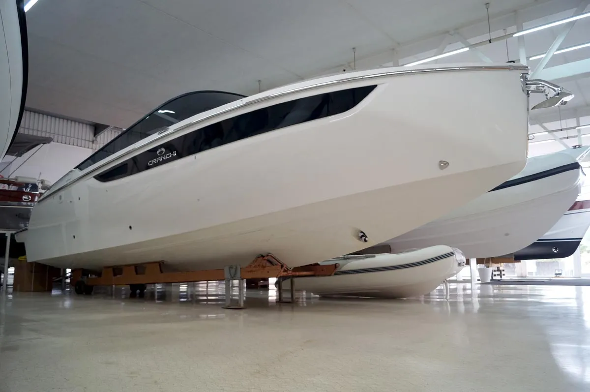 Embarcación nueva en stock. Disponible en enero 2026. Fotos de archivo, los colores y el equipamiento pueden no corresponder exactamente a la unidad ofrecida. Modelo E 26 Classic del astillero italiano Cranchi de 7,85 metros de eslora total. Barco con cómoda plataforma de baño, distribución espaciosa, cabinada y solárium popa.