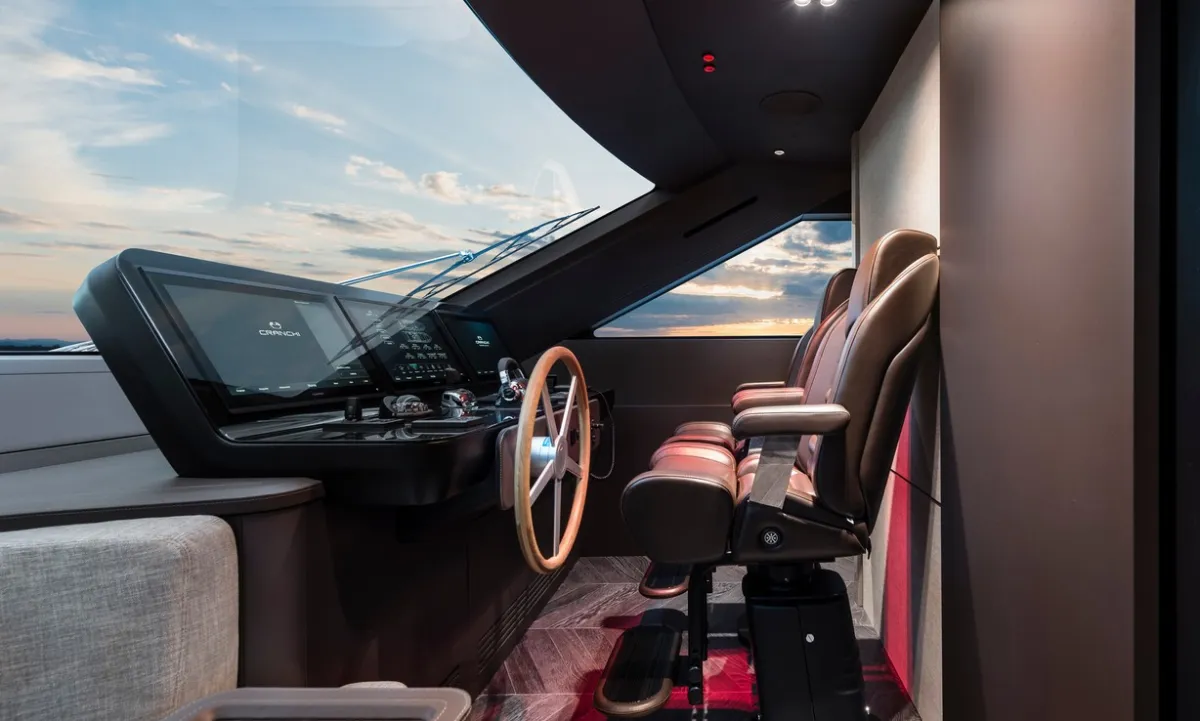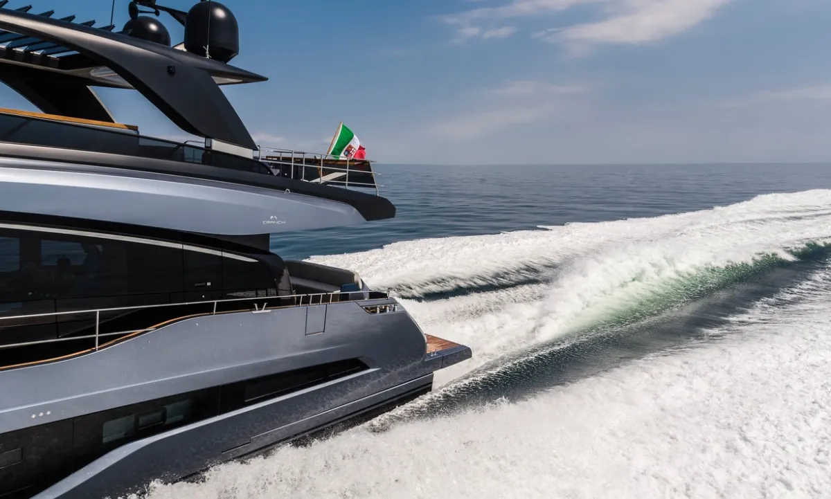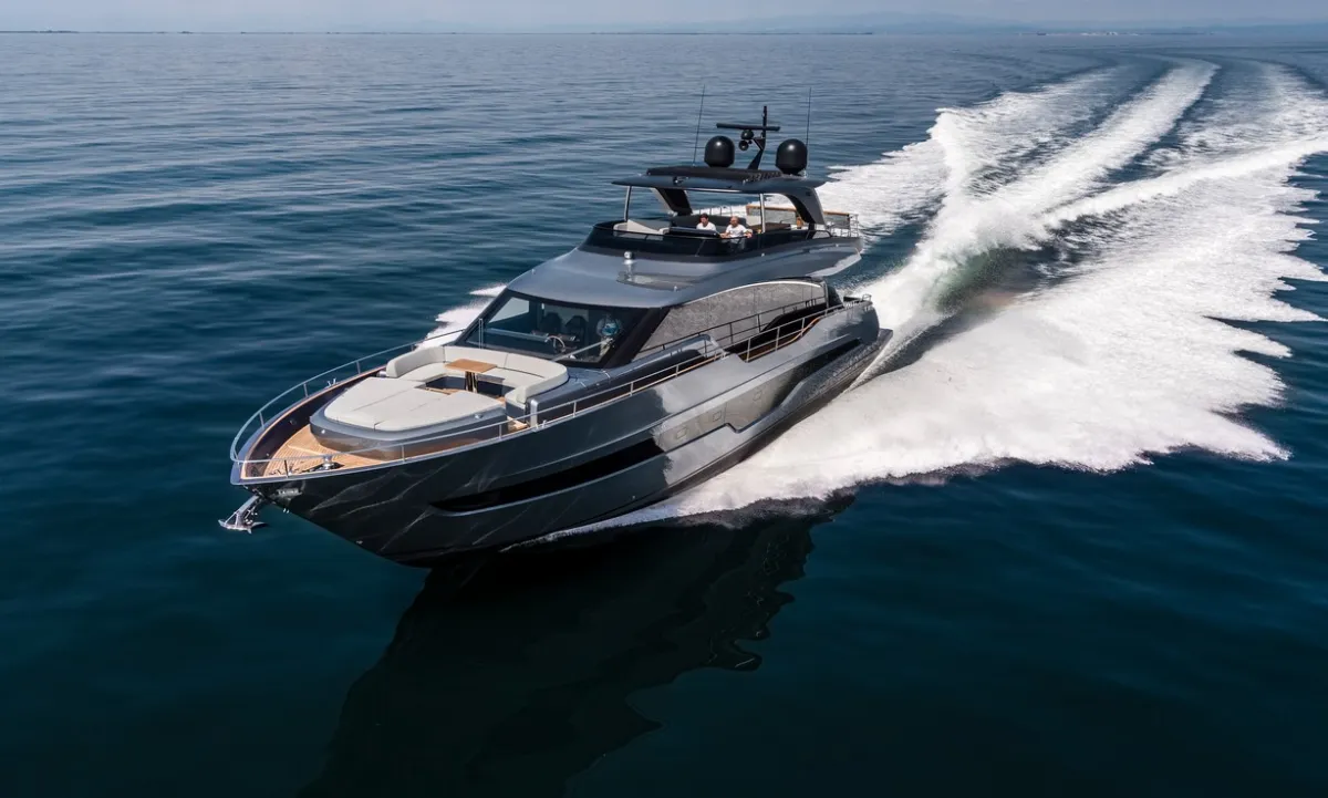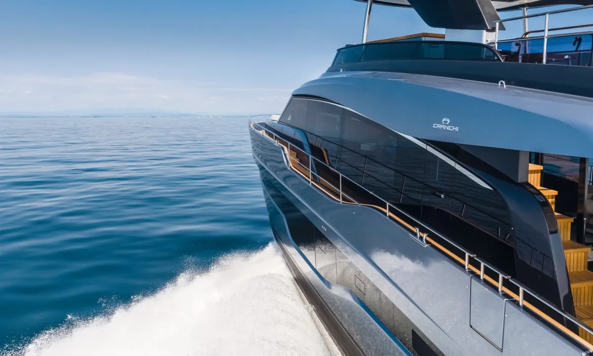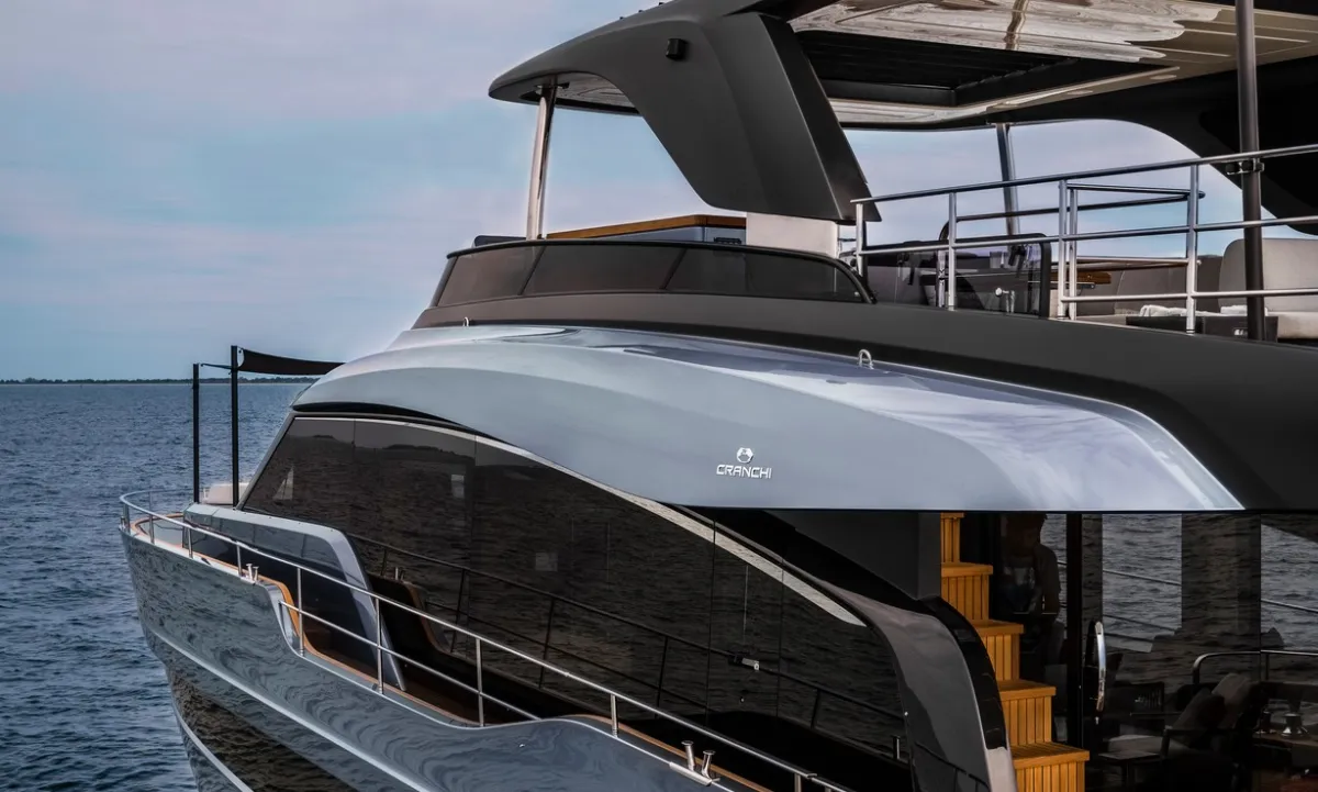 Fotos de catálogo, algunos accesorios y colores pueden no corresponder a la unidad ofrecida. Modelo Settantotto 78 del astillero italiano Cranchi de 25,15 metros de eslora total. Barco con flybridge, interiores de diseño moderno y gran habitabilidad.