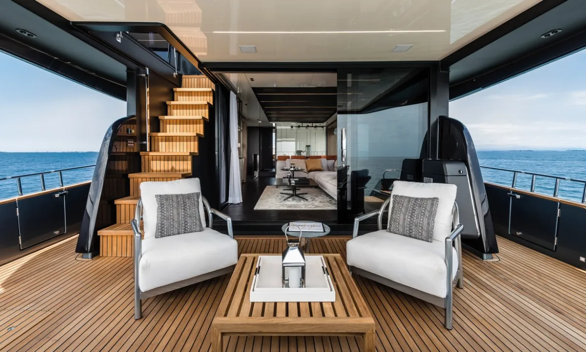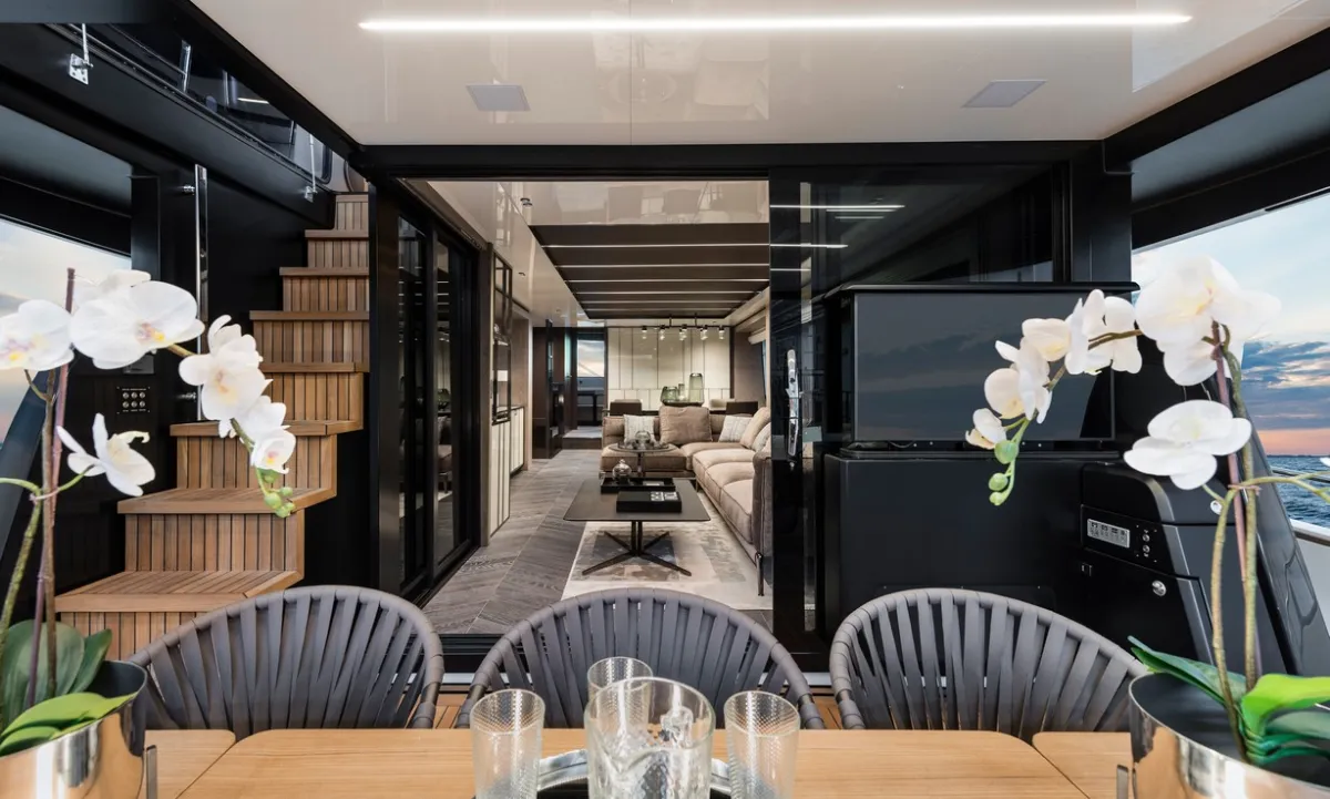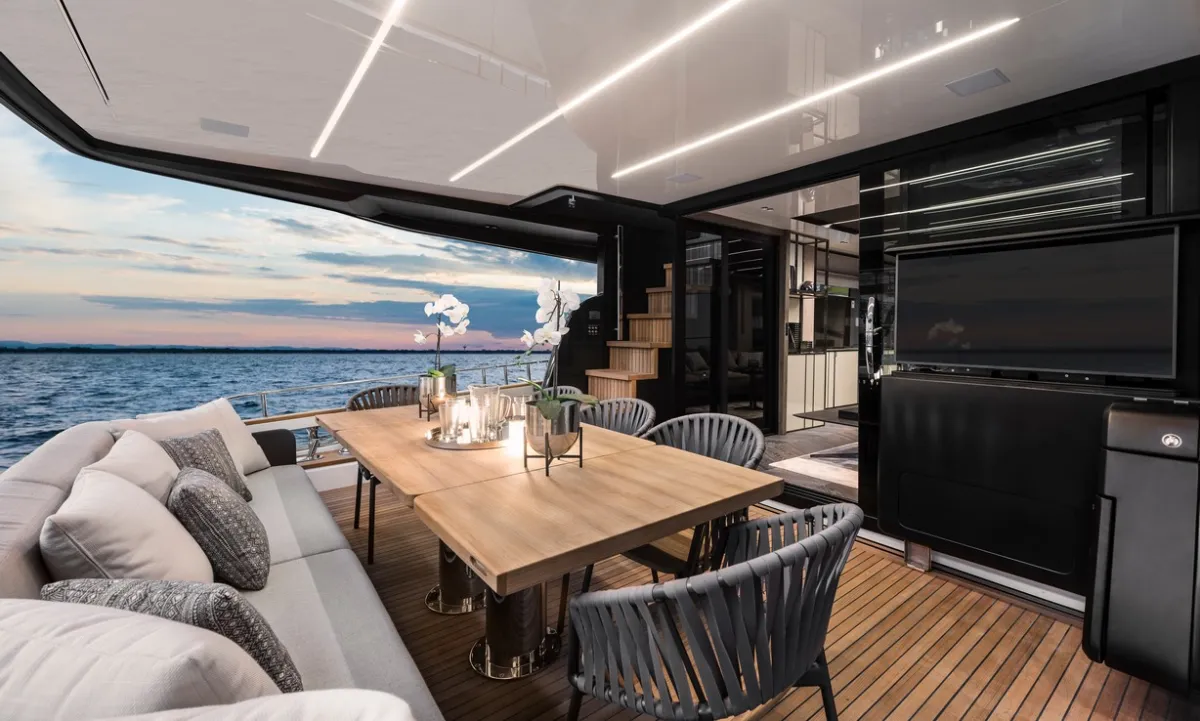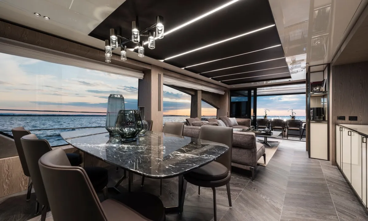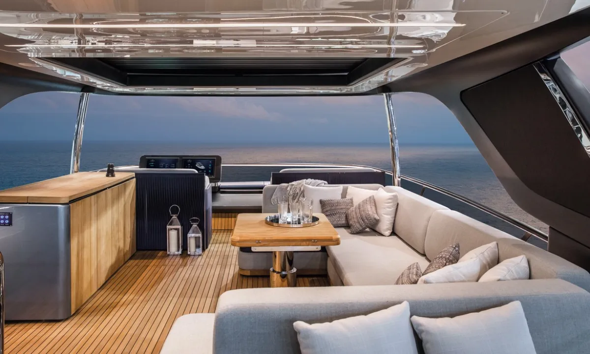 Fotos de catálogo, algunos accesorios y colores pueden no corresponder a la unidad ofrecida. Modelo Settantotto 78 del astillero italiano Cranchi de 25,15 metros de eslora total. Barco con flybridge, interiores de diseño moderno y gran habitabilidad.