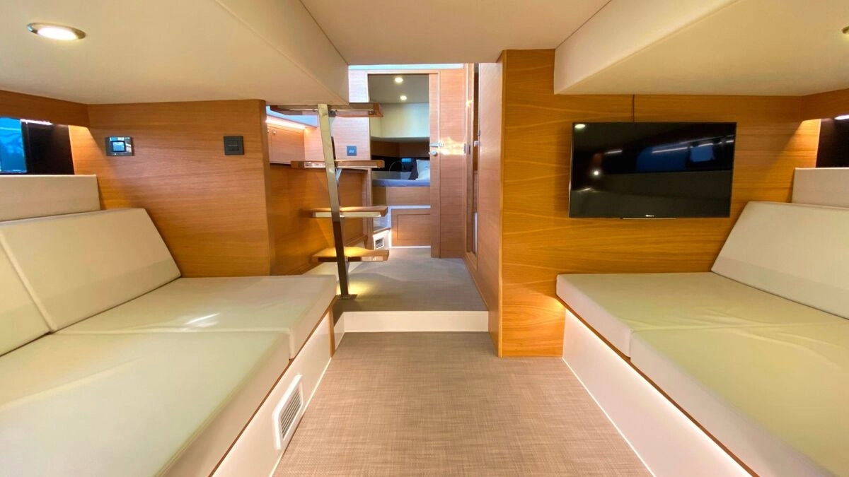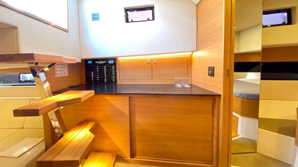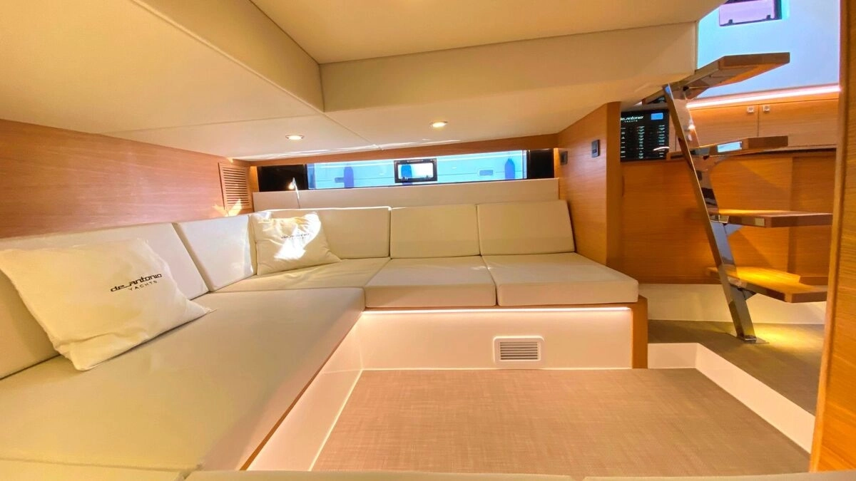 El De Antonio Yachts D42 es uno de los modelos más sofisticados y versátiles de su categoría. Este barco de 12-metros combina diseño moderno, gran habitabilidad y excelentes prestaciones, ideal tanto para día de paseo como para escapadas de fin de semana o incluso explotación en chárter. Diseño walk-around con pasillos amplios que permiten desplazarse con seguridad de proa a popa. Motores fueraborda ocultos bajo la plataforma de popa, lo que mejora la estética, facilita el mantenimiento y optimiza el espacio interior. Tres zonas de solárium: en proa, central y popa. En proa para disfrutar de la brisa y el sol, en popa una zona amplia que muchas veces incorpora plataforma de baño. Cocina exterior totalmente equipado; ideal para compartir comidas a bordo. Interior con al menos una cabina doble privada, salón versátil y un baño completo con ducha independiente. Amplio espacio de almacenamiento; de garaje central para un tender. Excelente distribución: zonas exteriores generosas (soláriums, cocinas exteriores, áreas de estar), un gran confort al aire libre. Diseño moderno y elegante, con acabados de alta calidad (tapicerías Premium, detalles en carbono, iluminación LED, etc.) que le dan un toque de lujo sin estridencias.