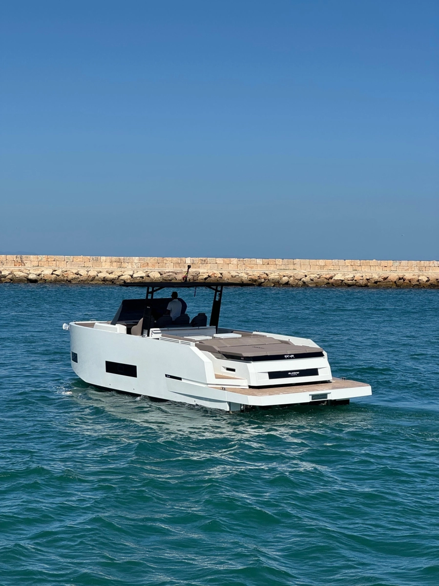 El D42 Open ofrece lo mejor de la navegación con una incomparable plataforma de popa. En concreto, este modelo tiene la plataforma hidráulica, con opción de regular su altura