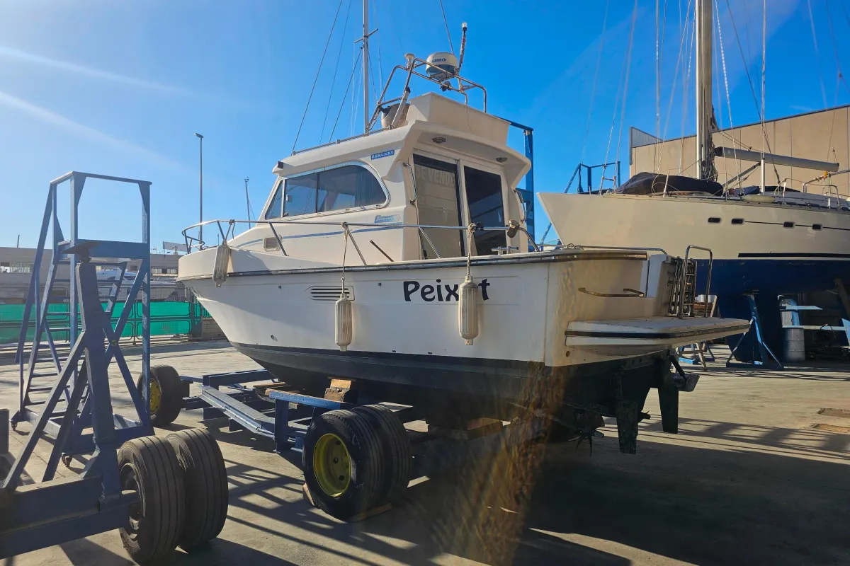 Introducing the remarkable Doqueve 7500, a 1996 sports fishing boat that combines performance and comfort in a sleek 7.49-meter design. Crafted from durable fiberglass, its deep Vee hull shape ensures stability and agility on the water, making it an ideal choice for fishing enthusiasts. Powered by two Yanmar inboard engines, each delivering 150 hp, this vessel boasts impressive cruising speeds of 15 knots and a maximum hull speed of 18 knots, ensuring exhilarating adventures. The electric windlass enhances convenience, allowing for effortless anchoring. With a seating capacity for six, the Peixet is perfect for gatherings with friends or family, and it features a well-appointed head for added comfort. This boat is not just a vessel; it’s an invitation to explore the open waters and create unforgettable memories. Experience the thrill of fishing and cruising with the Doqueve 7500, where every journey is a new adventure.