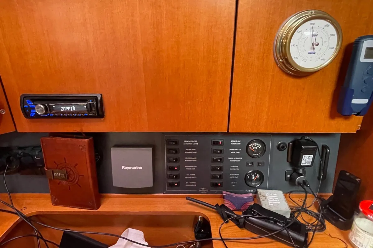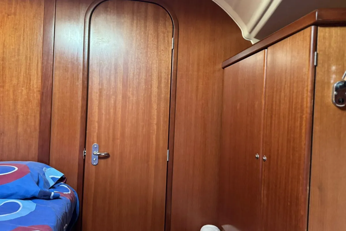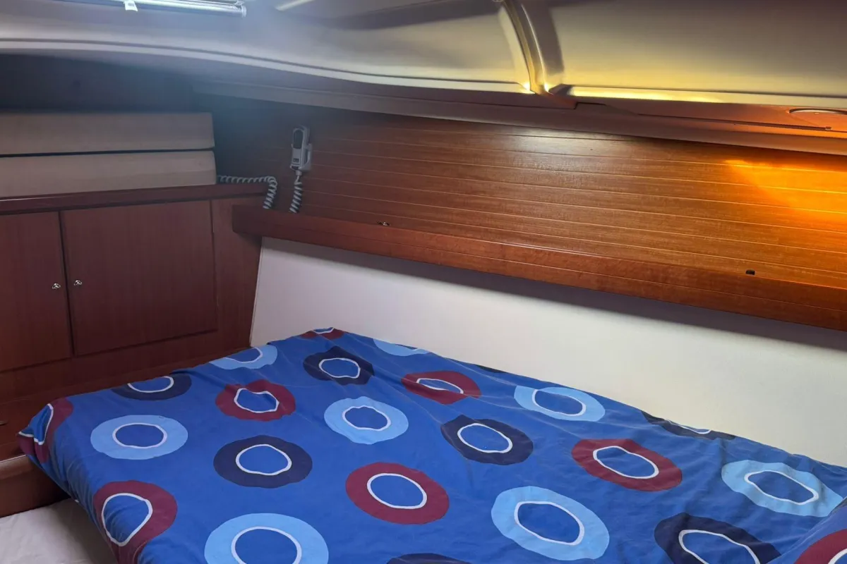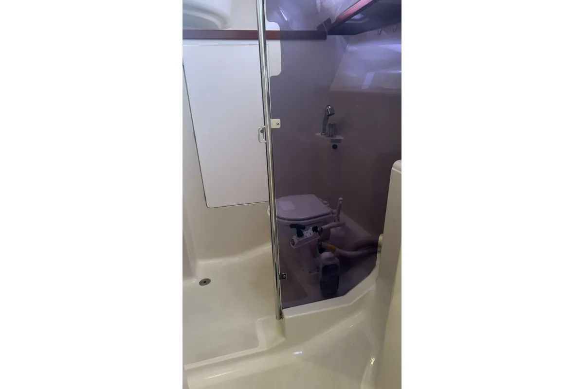 Below deck, the Dufour 385 impresses with its elegant wood finish, abundant natural light, and smart interior layout. Available in two- or three-cabin versions, this unit two cabin ,it features generous living spaces: a cozy main saloon, a fully equipped L-shaped galley, and one or two bathrooms offering all the necessary comfort. Every detail has been carefully designed to deliver well-being and functionality at sea.