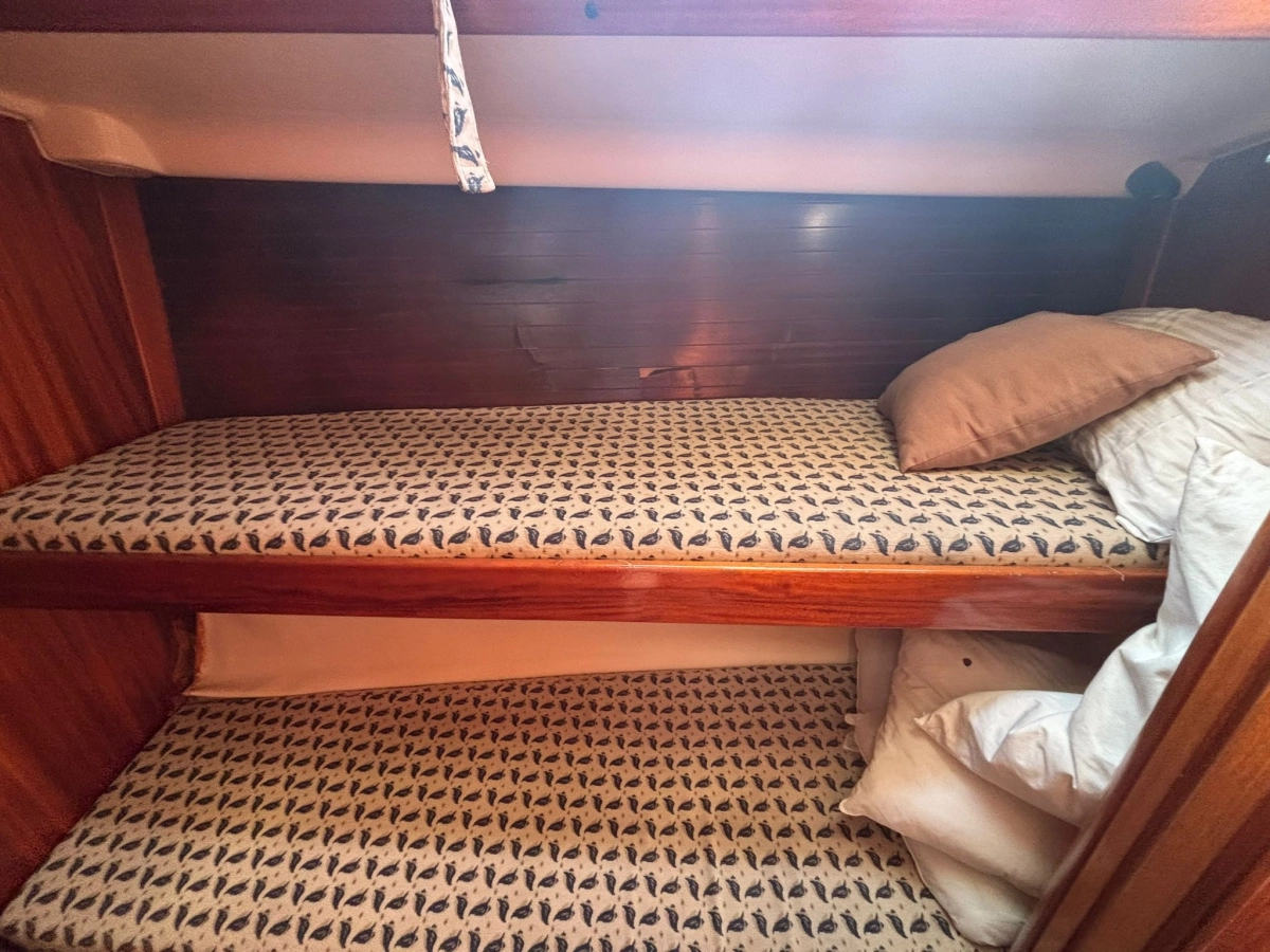 Este Dufour 43 Classic presenta una configuración muy completa, orientada tanto a la vida a bordo como a la navegación de crucero.