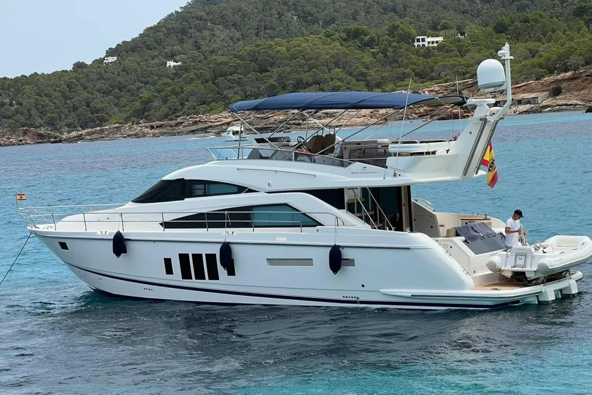 (ES) Presentamos el Fairline Squadron 58, una embarcación deportiva de alta gama del año 2012. Este barco combina elegancia, rendimiento y comodidad, ideal para excursiones de un día o salidas de fin de semana. Tiene tres camarotes y dos baños, una cocina bien equipada y una sala/comedor. Está equipado con dos motores Volvo Penta D13 EVC con 900 CV cada uno con aprox. 845 horas. El Squadron 58 alcanza velocidades de crucero de 28 nudos y una velocidad máxima de casco de 34 nudos, lo que lo hace perfecto para viajes emocionantes. Tiene un alcance de aproximadamente 250 millas. Está registrado en España, tiene el IVA pagado y está homologado para 16 personas. La embarcación está lista para navegar.