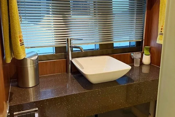 FLAT_SCREEN_TV, LIFERAFT, AIR_CONDITIONING, HYDRAULIC_GANGWAY, STERN_THRUSTER, WASHING_MACHINE, COMPASS, INVERTER, AUTOPILOT, GENERATOR, BATTERY_CHARGER, REFRIGERATOR, ELECTRIC_HEAD, PLOTTER, BOW_THRUSTER, MICROWAVE_OVEN, DISHWASHER, LOG_SPEEDOMETER, DEPTHSOUNDER, VHF, HOT_WATER, SHORE_POWER_INLET, GPS, DEEP_FREEZER, TEAK_COCKPIT, TEAK_SIDEDECKS, RADAR, COCKPIT_TABLE