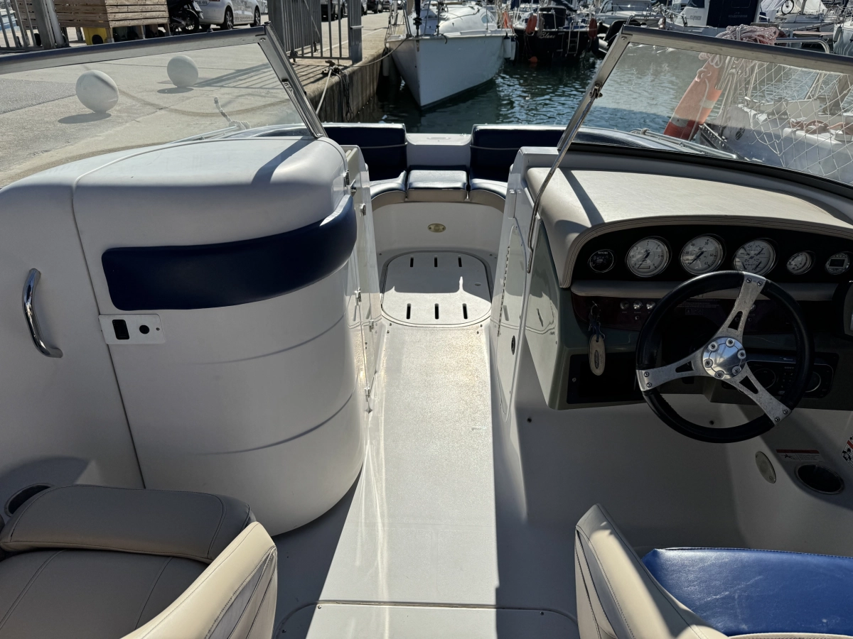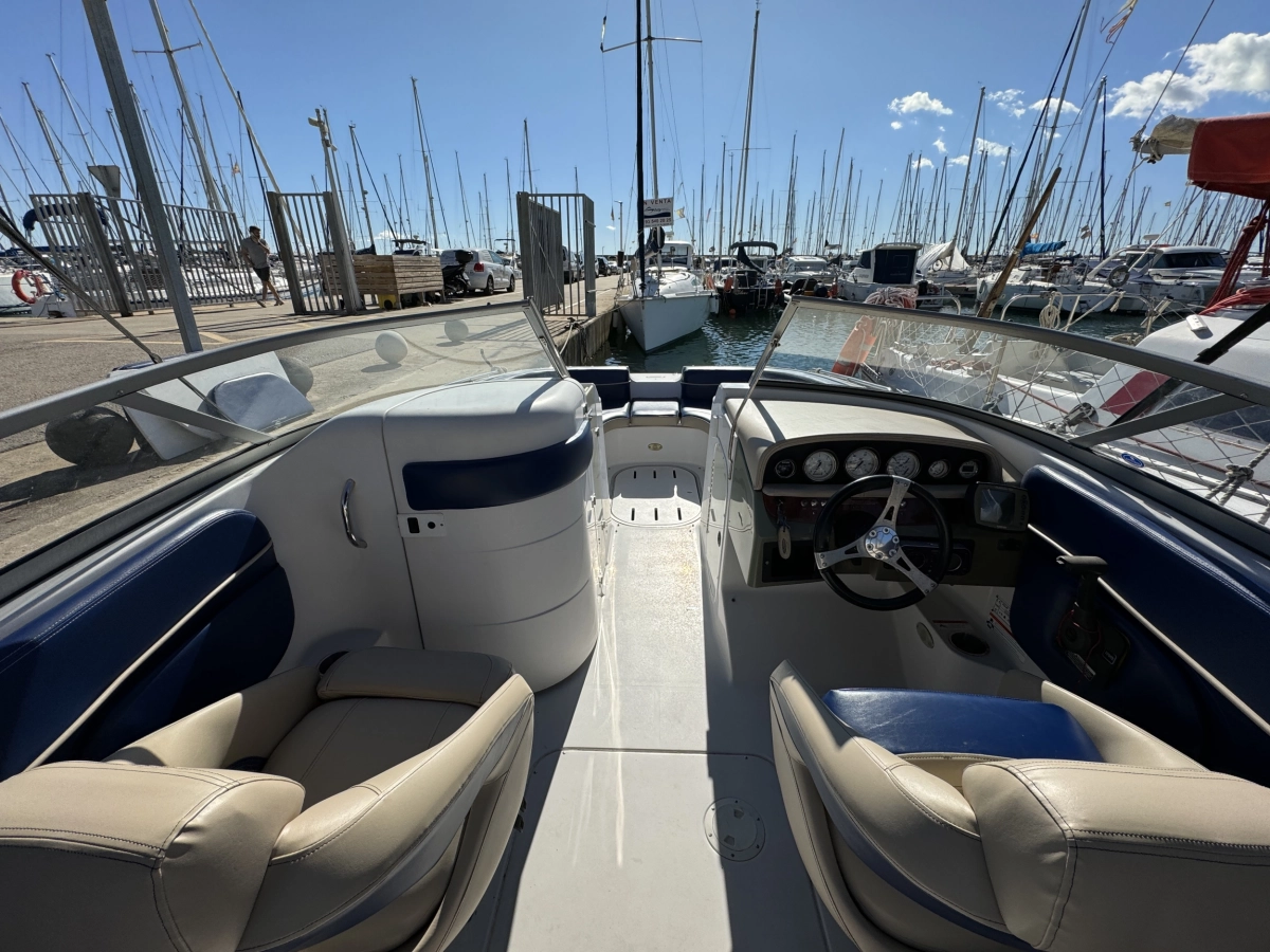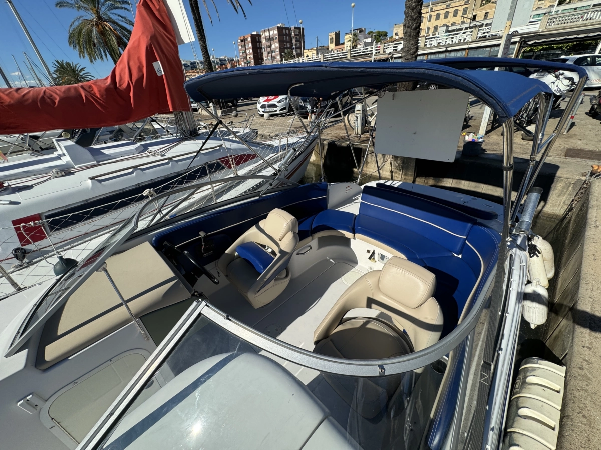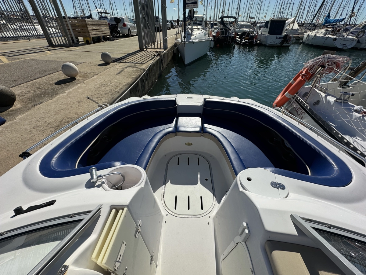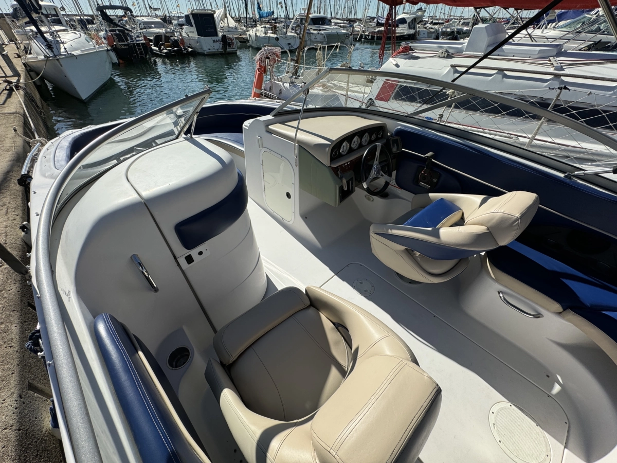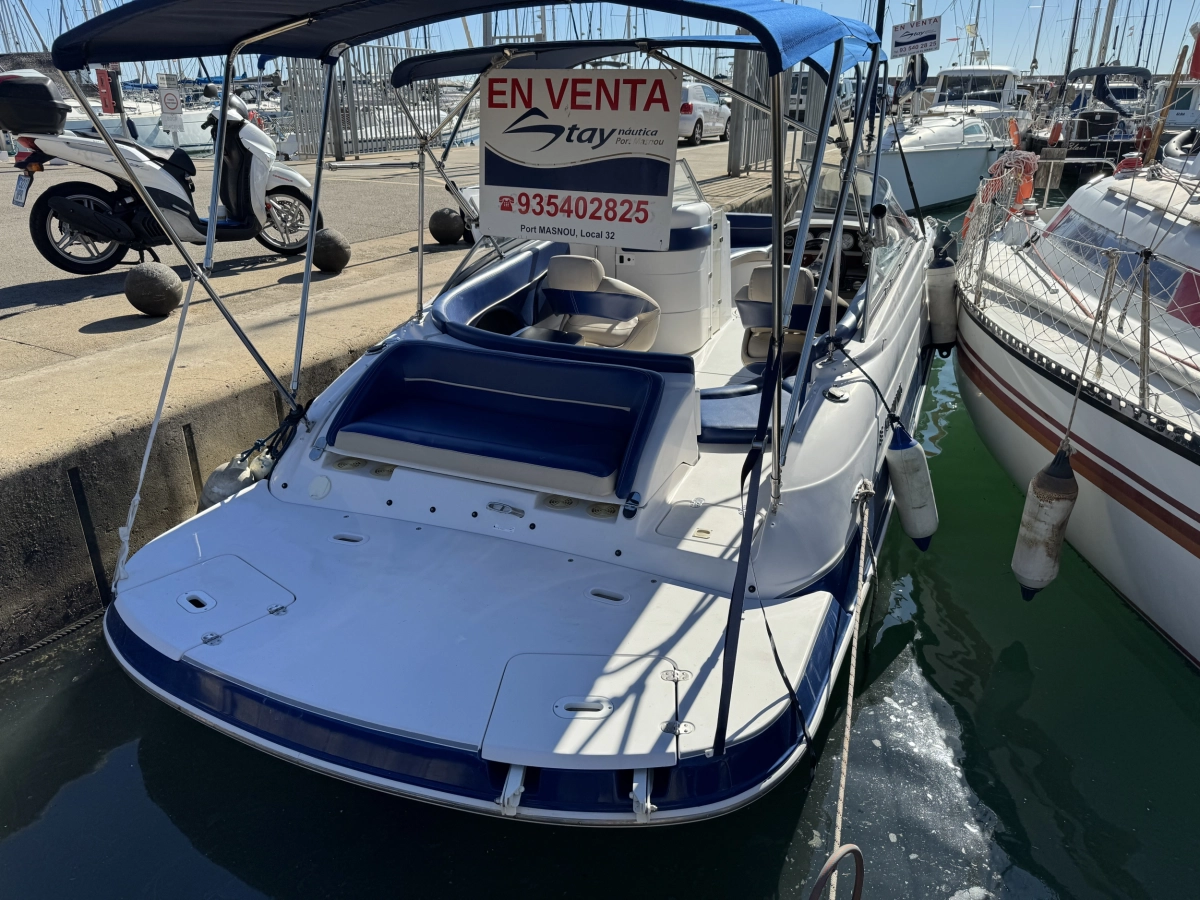 WC químico, Tapicería nueva 2023, Toldo Bimini nuevo 2023, Pintado del casco 2022, Ducha en popa, Radio CD con altavoces, Toma a 12V, Mesa en bañera, Compás, Solárium en popa, Escalera de baño.
