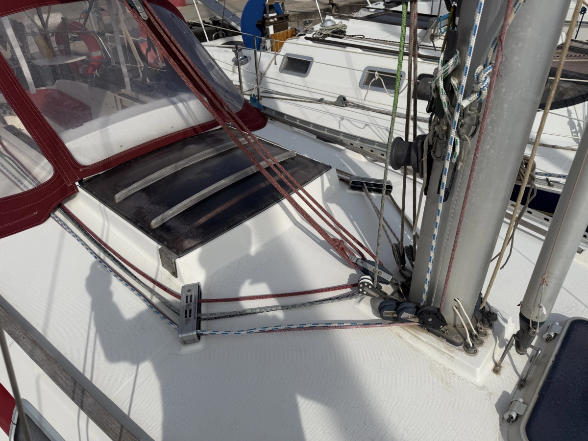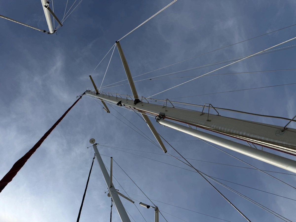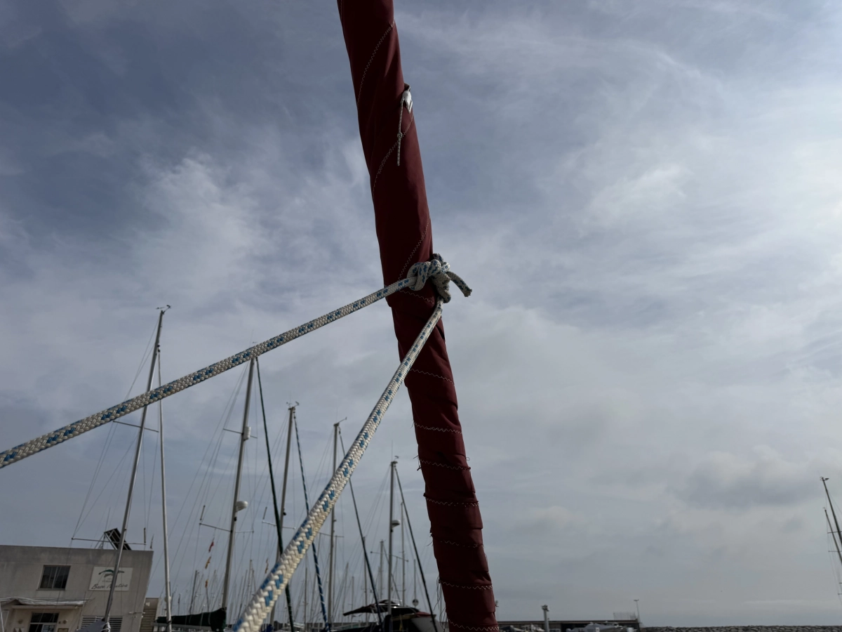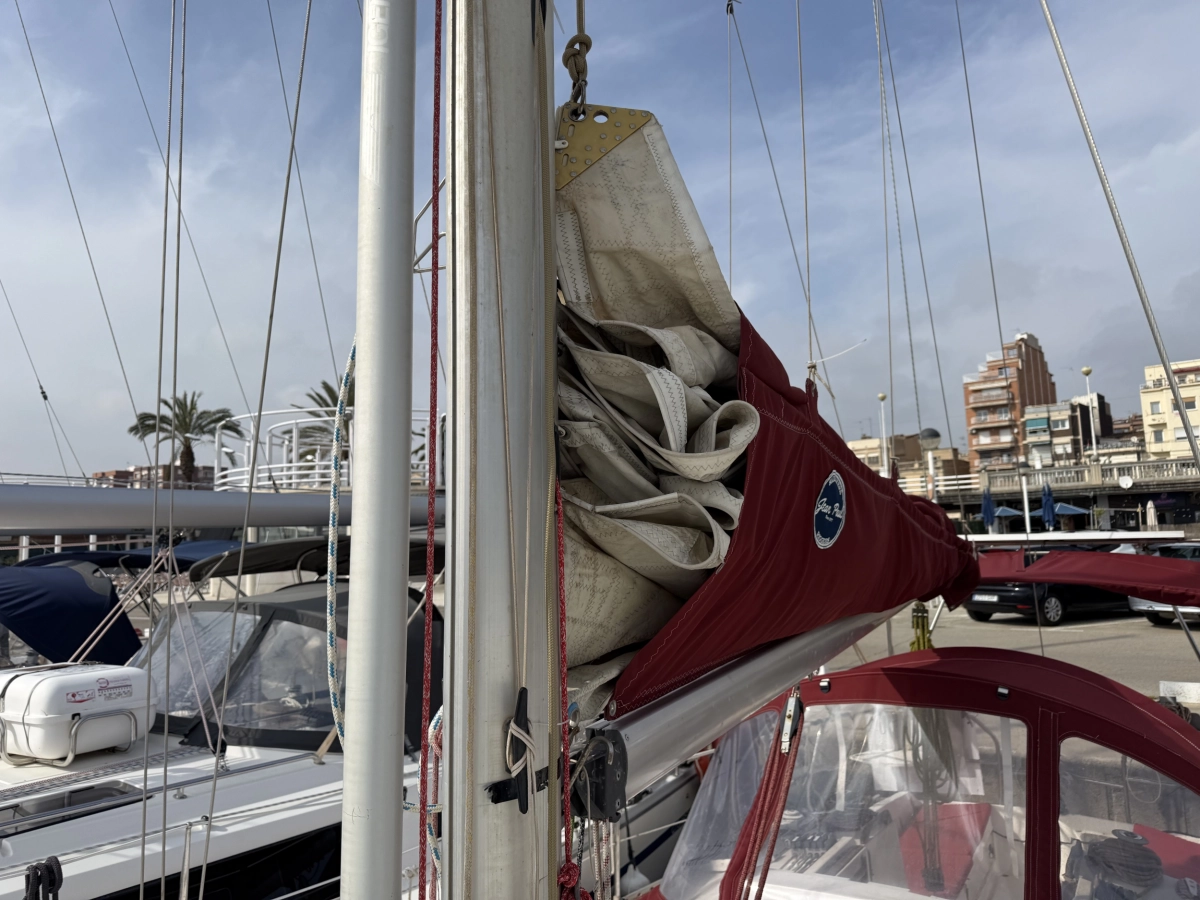 Velas: Mayor Fullbaten, Génova enrollable. Jarcia nueva. Spi, Tangón