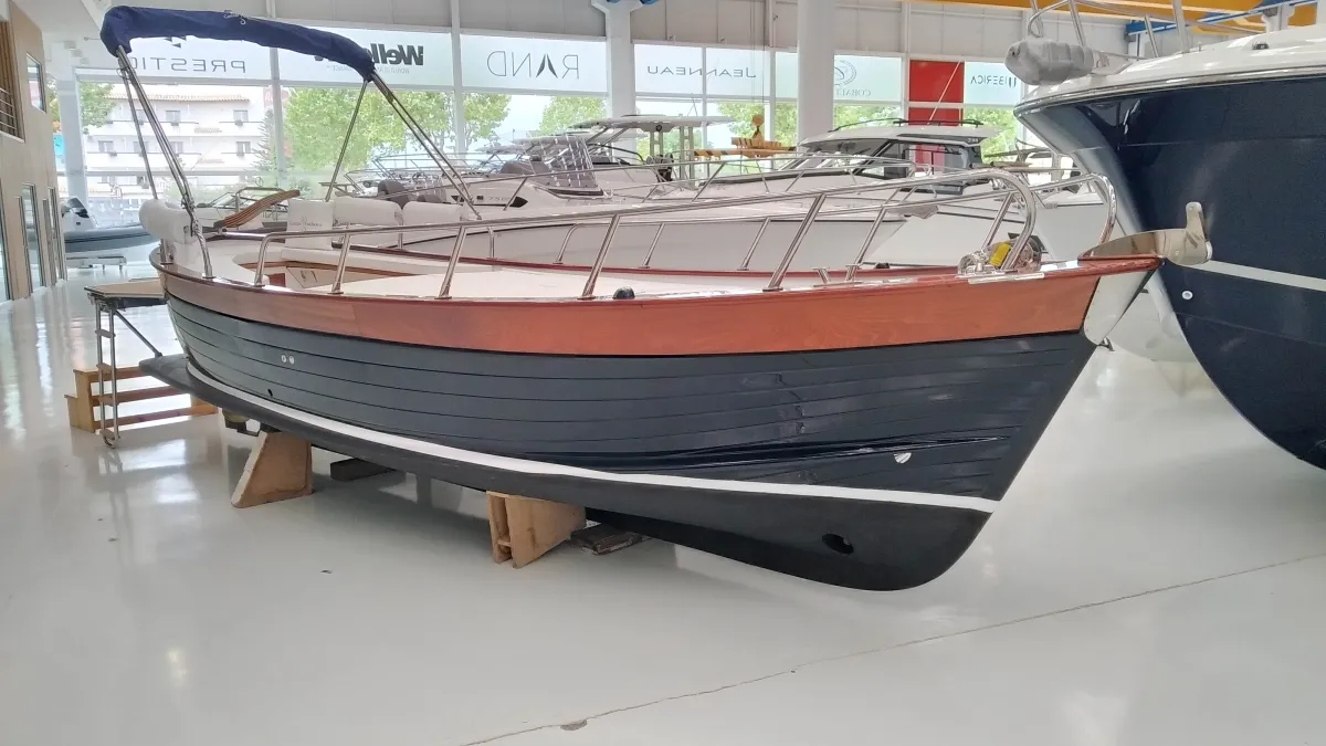 Embarcación en fabricación. Entrega en febrero 2026. Fotos de archivo, los colores y el equipamiento pueden no corresponder exactamente a la unidad ofrecida. Modelo Positano 23 del astillero napolitano Gozzo Positano, de 7 metros de eslora total. Barco con cómoda plataforma de baño, distribución espaciosa.