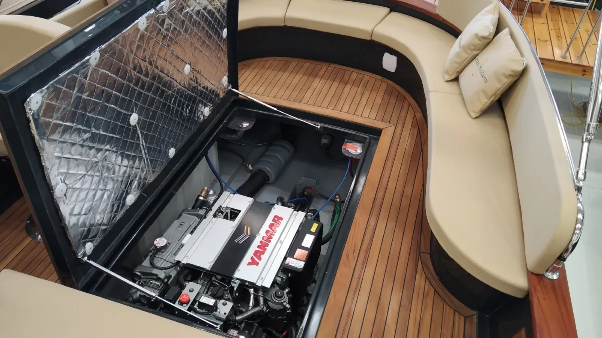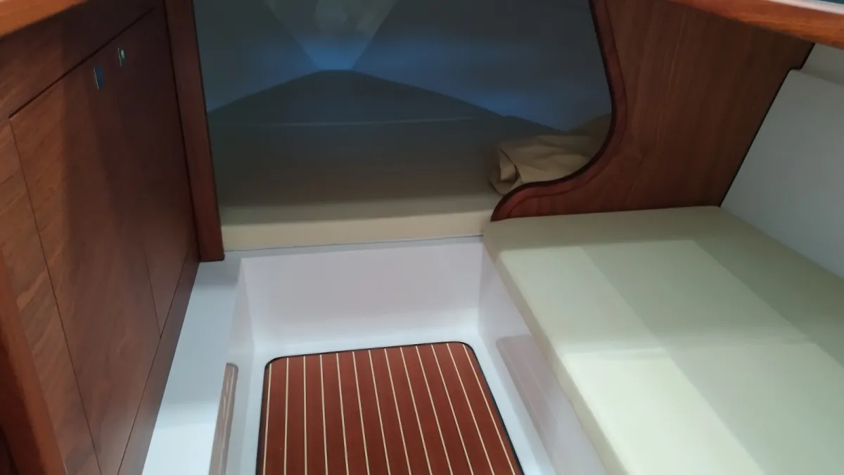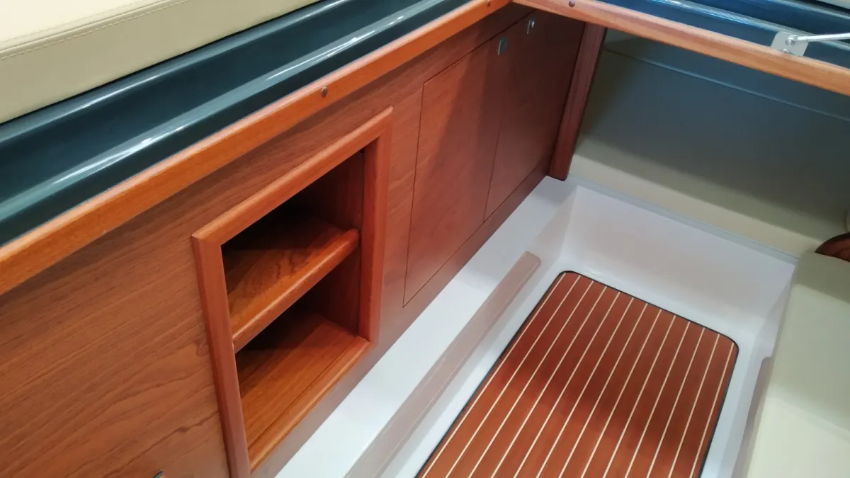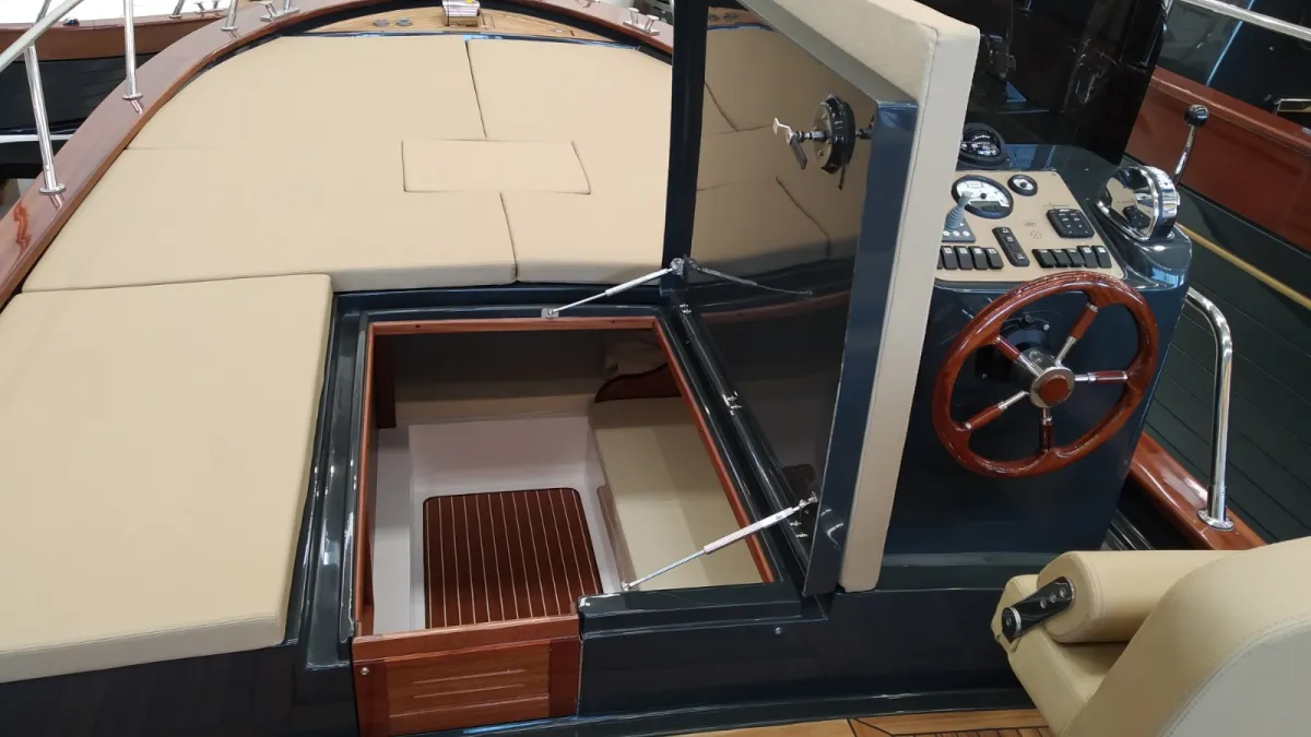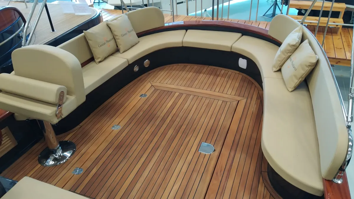 Embarcación en fabricación. Entrega febrero 2026. Fotos de archivo, los colores y el equipamiento pueden no corresponder exactamente a la unidad ofrecida. Modelo Positano 27 del astillero napolitano Gozzo Positano, de 8,22 metros de eslora total. Barco con gran plataforma de baño, caña y cabina.