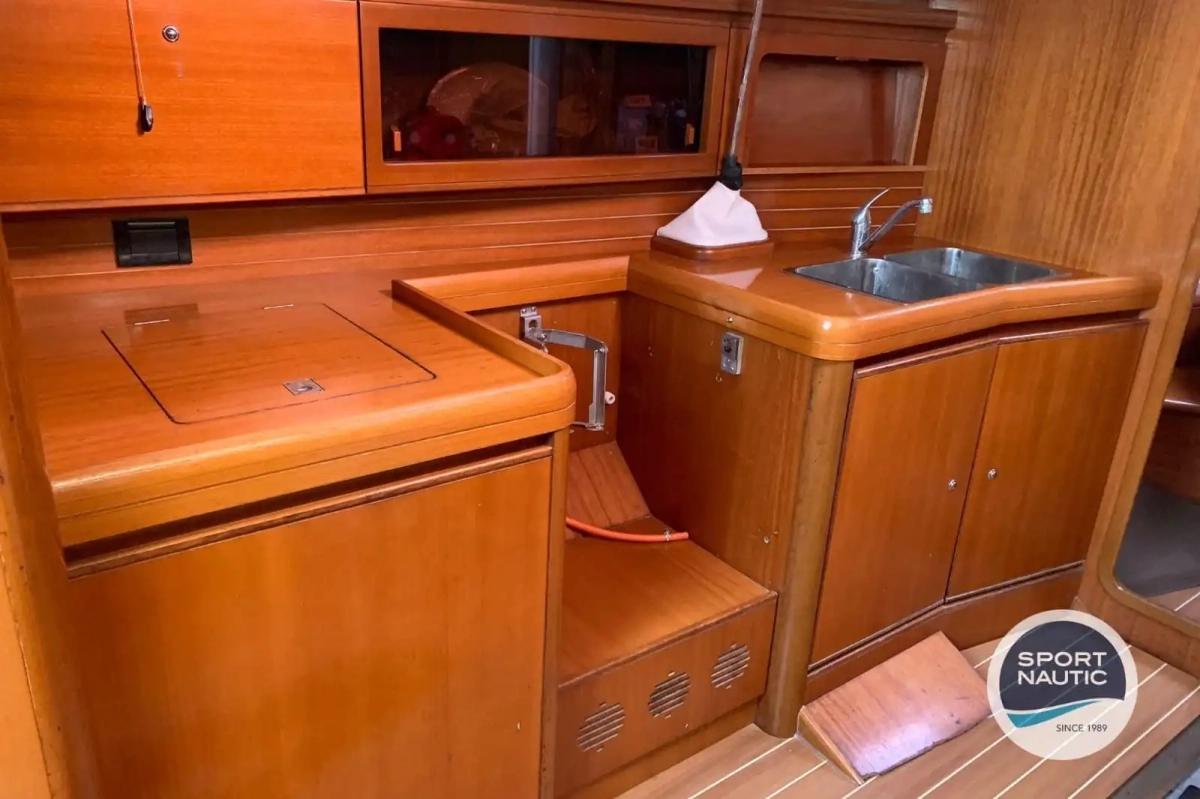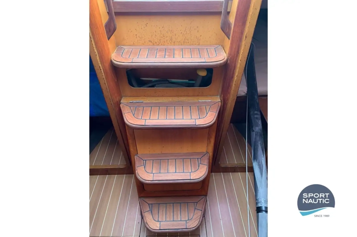 Distribución funcional con 2 camarotes y 1 baño, ideal para regata y crucero rápido