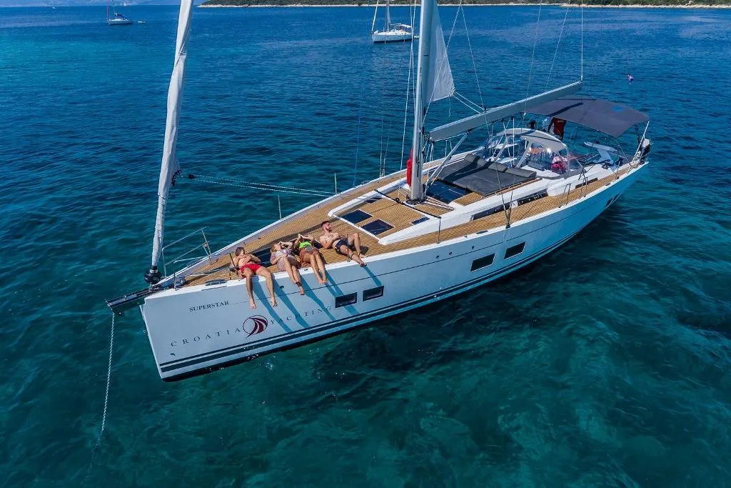 AUTOPILOT, COCKPIT_CUSHIONS, DEEP_FREEZER, GENERATOR, LOG_SPEEDOMETER, REFRIGERATOR, VHF, TEAK_COCKPIT, GARAGE, FURLING_GENOA, SPRAY_HOOD, BOW_THRUSTER, COCKPIT_TABLE, COCKPIT_SHOWER, TEAK_SIDEDECKS, WIND_SPEED_AND_DIRECTION, STEERING_WHEEL, FURLING_MAINSAIL, BATTERY_CHARGER, AIR_CONDITIONING, ELECTRIC_HEAD, INVERTER, SWIMMING_LADDER, HYDRAULIC_BATHING_PLATFORM, OVEN, HOT_WATER, BIMINI_TOP, PLOTTER