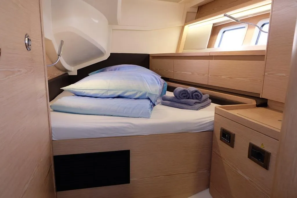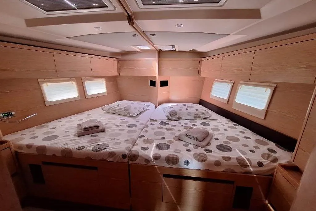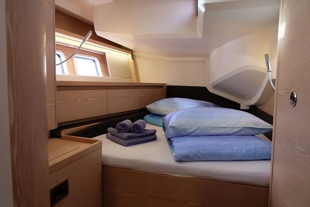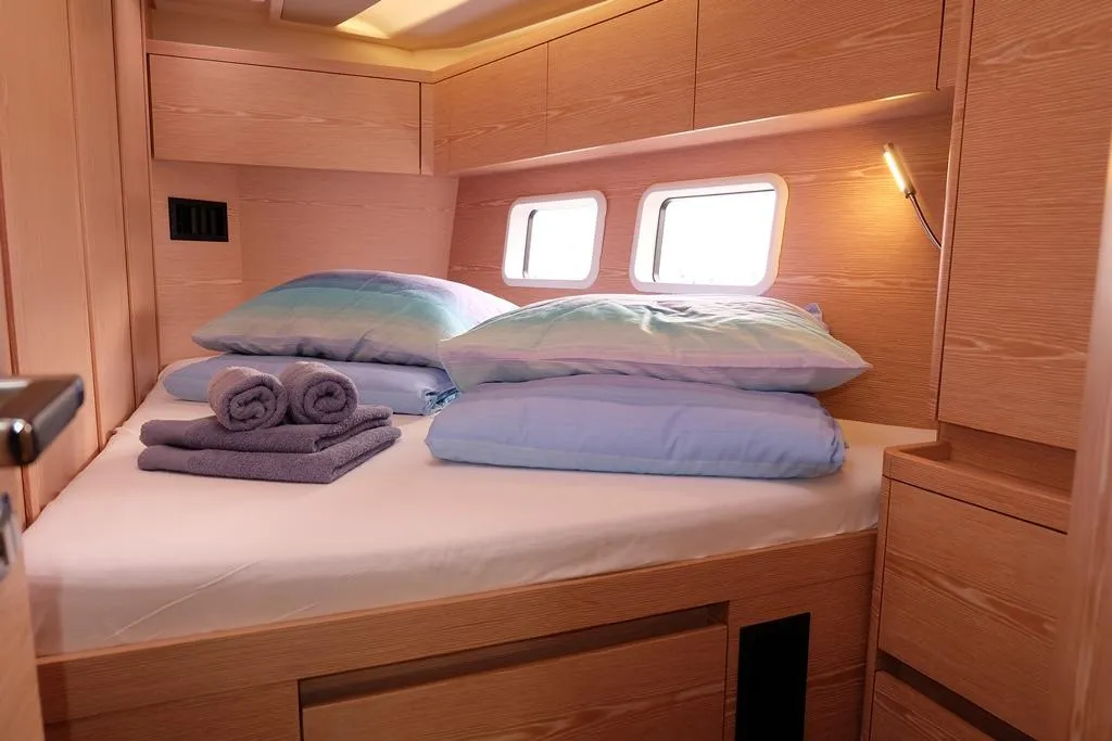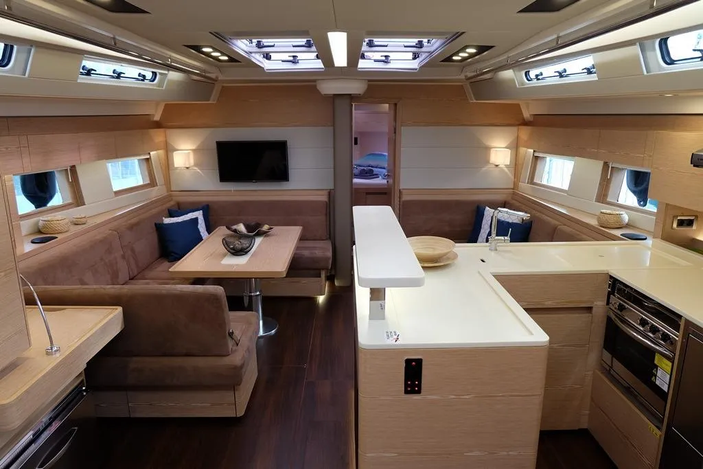 (ES) Este Hanse 588 construido en 2017 está en buenas condiciones y totalmente equipado. El yate tiene una distribución tipo chárter con 5 camarotes, 4 baños. Las dos cabinas frontales son modulares y se pueden unir en una sola cabina del propietario. Ideal si está buscando un yate para su empresa de alquiler. Es un velero de crucero diseñado para ofrecer confort y rendimiento. Ideal para travesías en familia, este barco combina elegancia y robustez, haciendo que cada experiencia de navegación sea inolvidable. Tiene un motor Volvo Penta D3-110 de 110 CV con aprox.2.000 horas. Tiene una mayor enrollable, un foque autovirante.