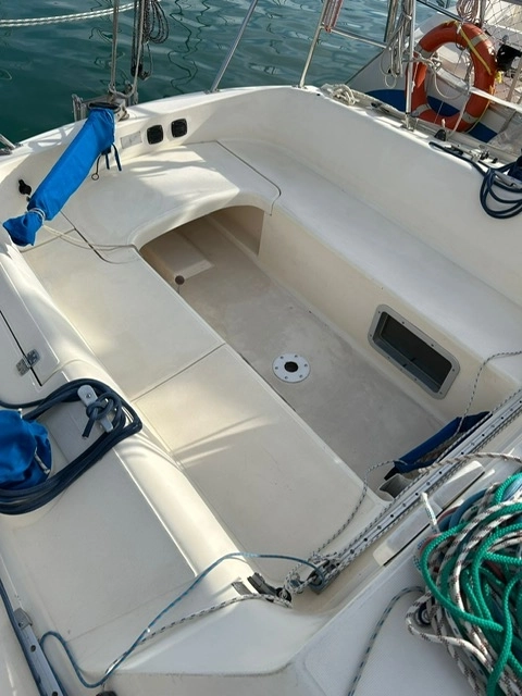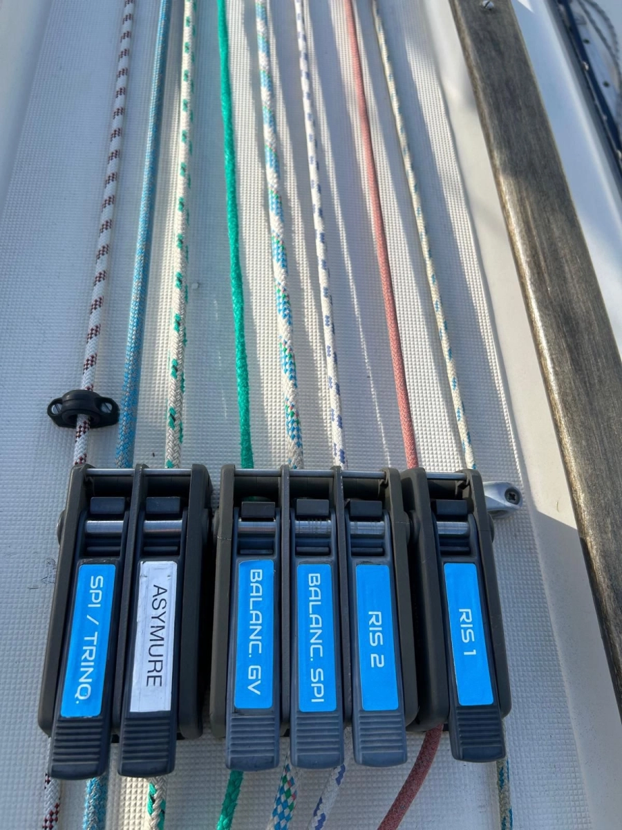 2 Cabinas 1 Baño , Compás, Equipo de viento, Reflector de Radar, Emisora VHF, Sonda, Corredera, Piloto automático, Enchufes 220V, Batería de motor y batería de servicio, Cargador de baterías, Cocina gas, fregadero, Molinete eléctrico, Cofre ancla y cadena 30m, Plataforma de baño, Escalera de baño, Ducha en popa en proa, Bañera Winches, Toldo de sol largo, Depósito de agua 60 litros, Depósito de combustible 25 litros, Bandera Francesa.
