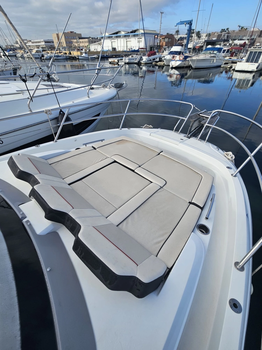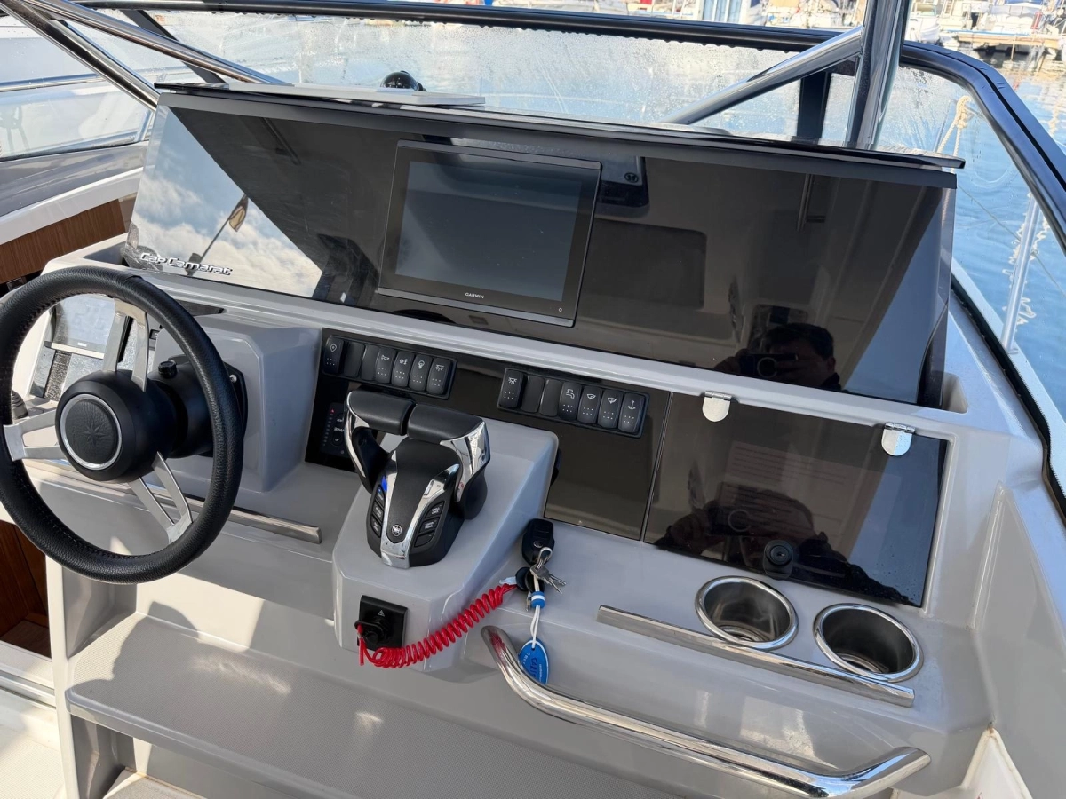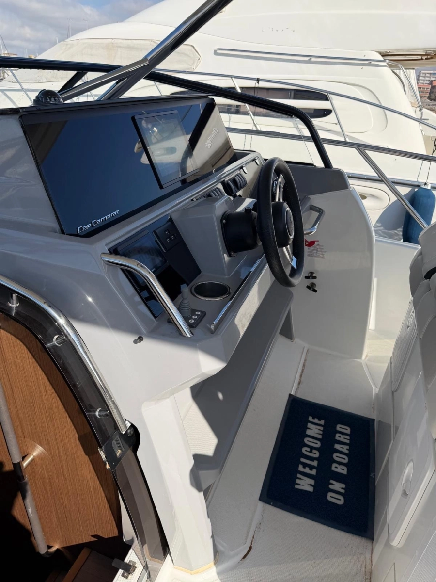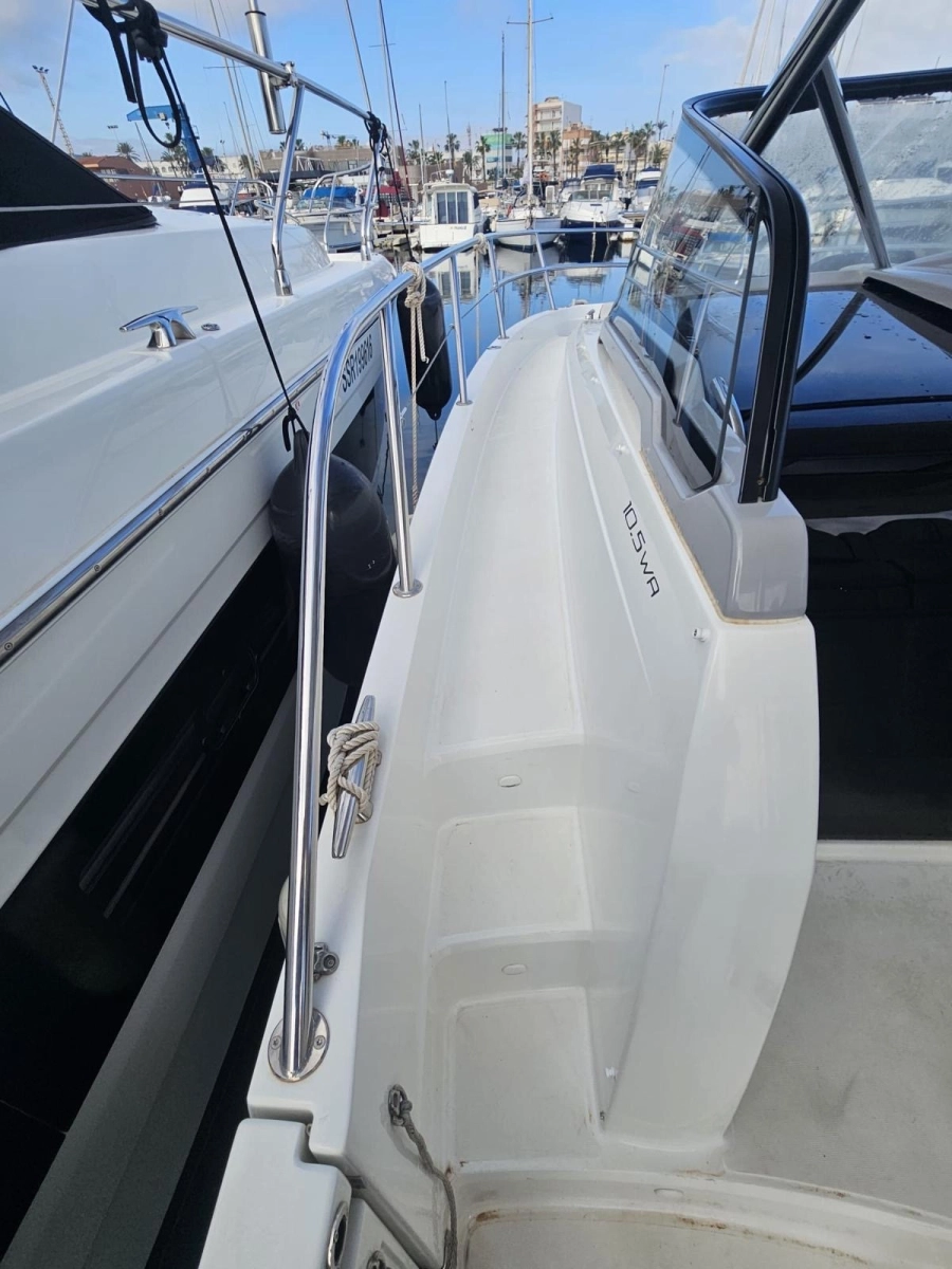 Impulsado por dos Yamaha 300 CV, ofrece una navegación ágil, equilibrada y silenciosa. La cabina interior sorprende por su luminosidad y distribución práctica, perfecta para escapadas de fin de semana. Una embarcación ideal para quienes buscan prestaciones, estabilidad y un nivel de equipamiento superior, lista para disfrutar desde el primer día.