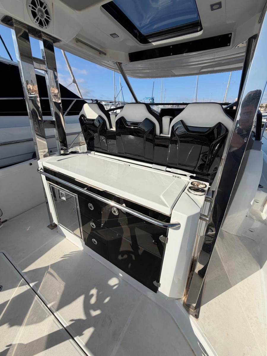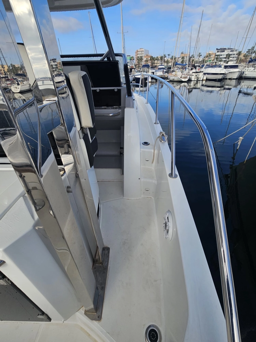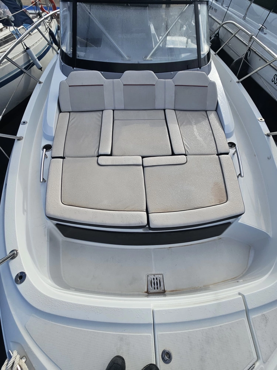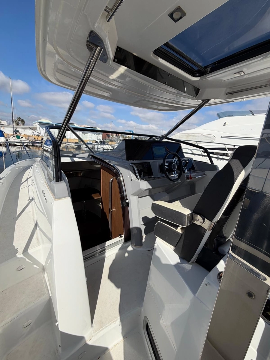 Impulsado por dos Yamaha 300 CV, ofrece una navegación ágil, equilibrada y silenciosa. La cabina interior sorprende por su luminosidad y distribución práctica, perfecta para escapadas de fin de semana. Una embarcación ideal para quienes buscan prestaciones, estabilidad y un nivel de equipamiento superior, lista para disfrutar desde el primer día.