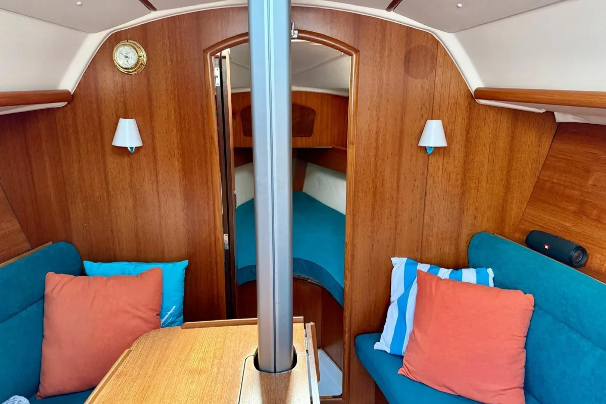 [EN]Introducing the Jeanneau Sun Fast 32i, a remarkable racer/cruiser from 2002, boasting an overall length of 9.45 meters. This monohull vessel features a robust fiberglass hull and a fin keel, ensuring excellent stability and performance on the water. Powered by a reliable Yan 3YM 20 inboard diesel engine, delivering 20 kW, this boat is designed for both speed and efficiency. The propeller, crafted from durable bronze with a two-blade design, enhances maneuverability and responsiveness. The Sun Fast 32i offers comfortable accommodation with one head, making it a practical choice for day trips or extended cruising. Its thoughtful design and features make it an ideal vessel for sailing enthusiasts seeking adventure and leisure on the open sea.
