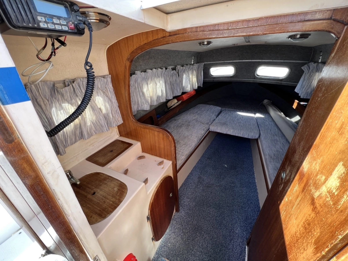 1 Cabina 1 Baño, Emisora VHF, Bomba de achique eléctrica, Luces de navegación, WC químico.