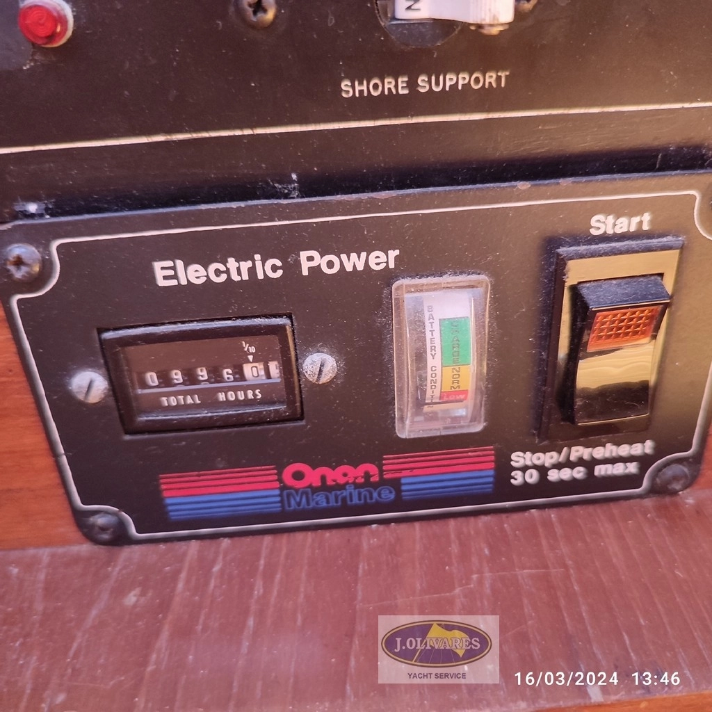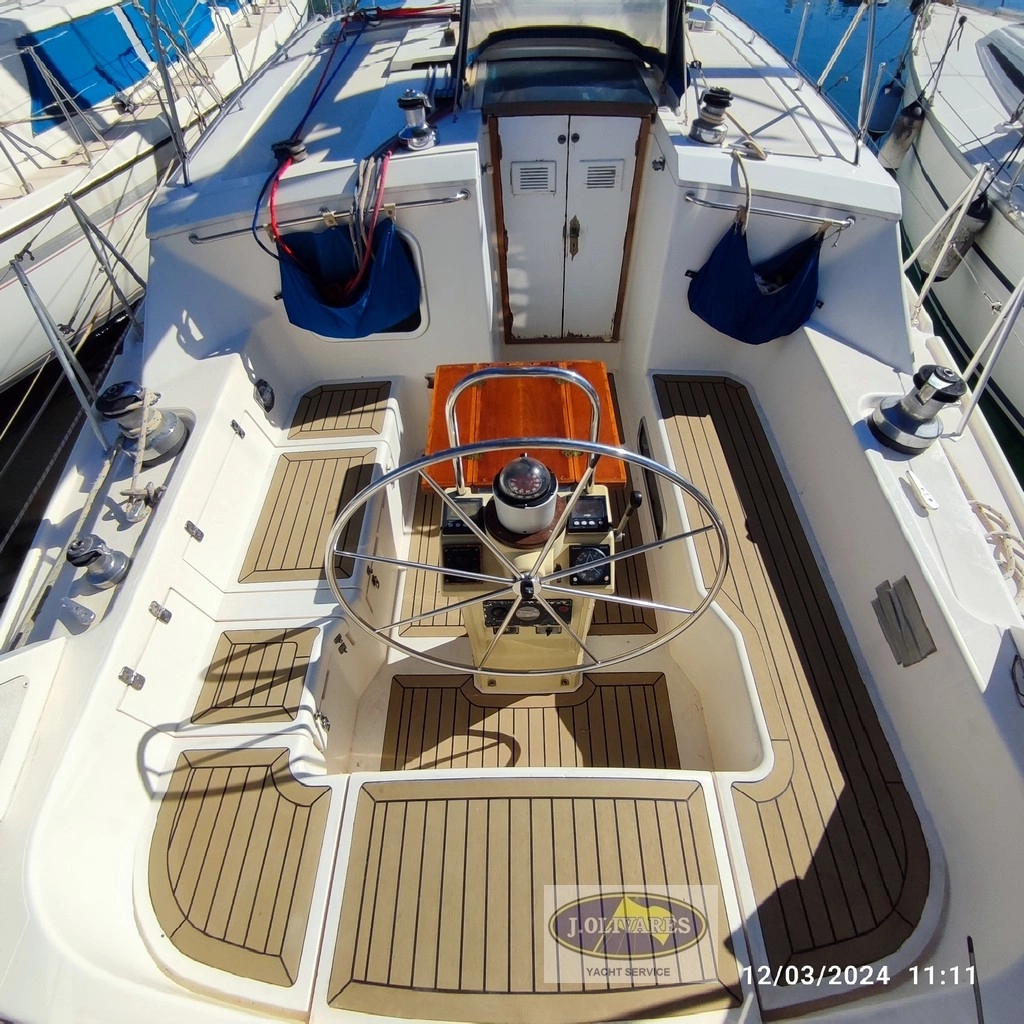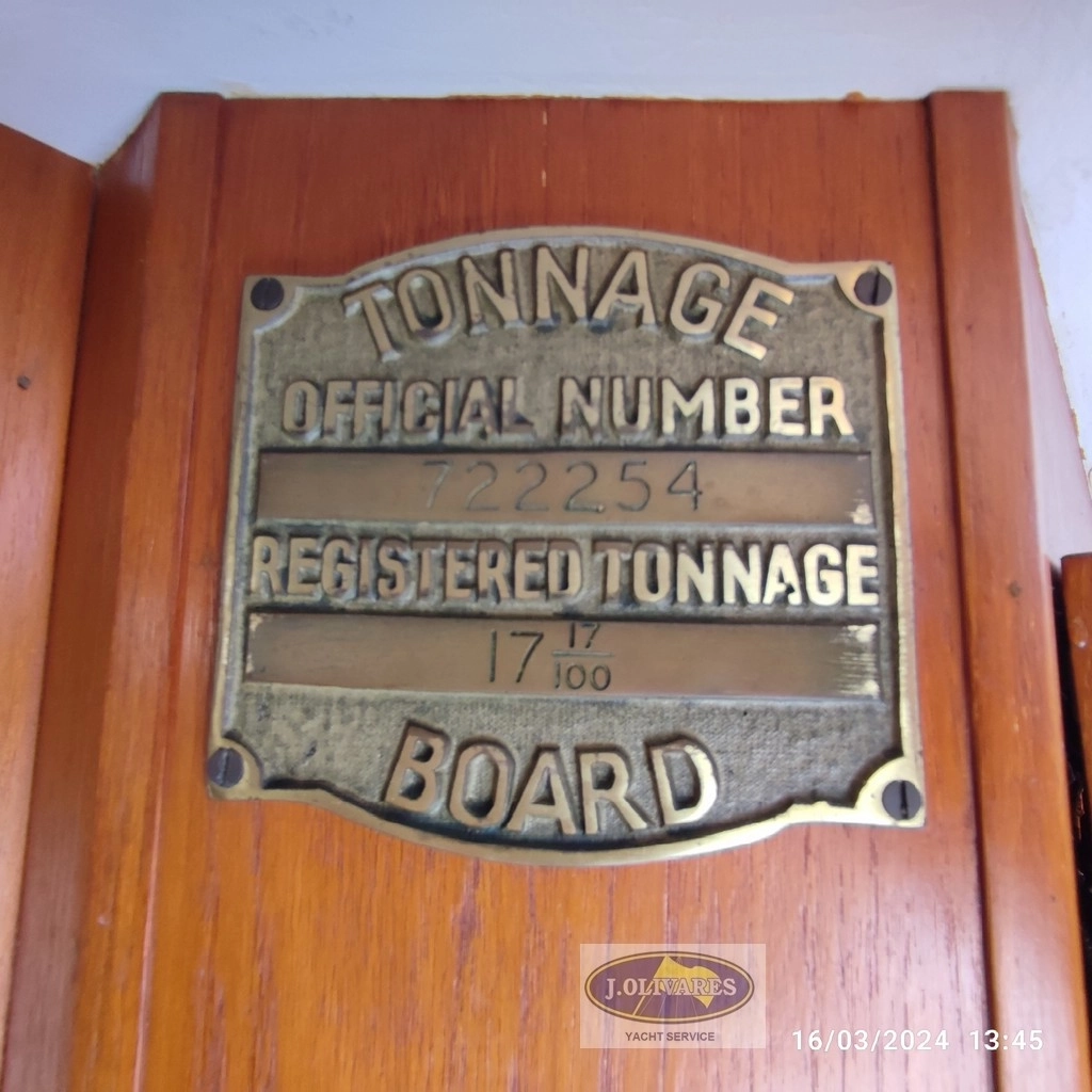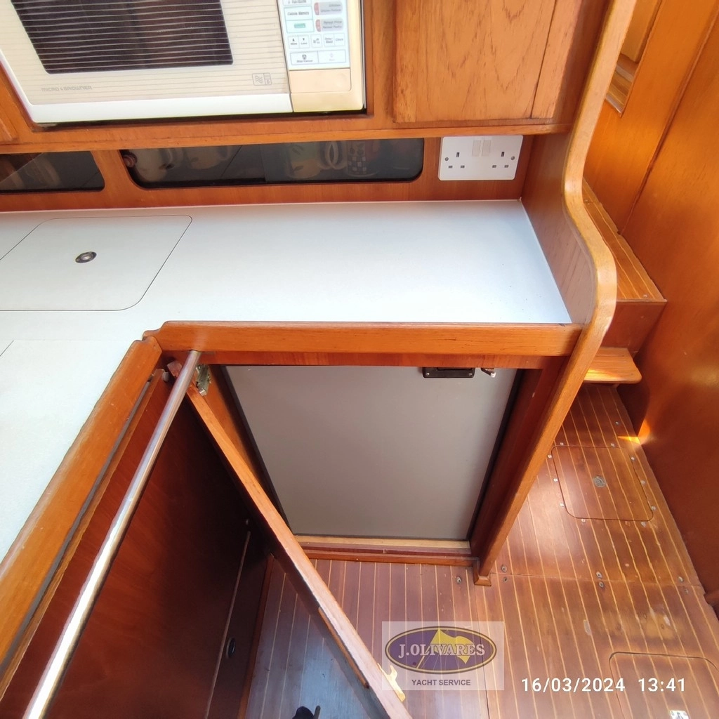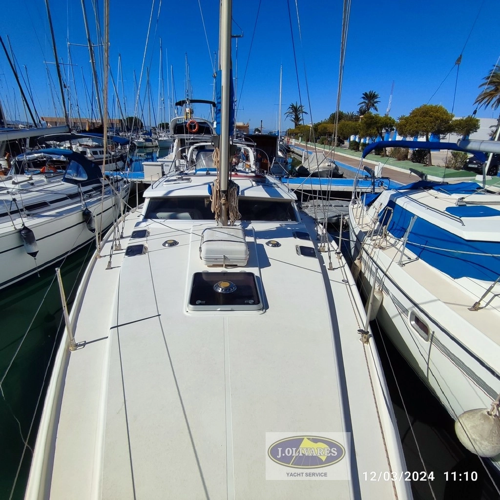 MOODY ECLIPSE 43 (1990) Año: 1990 Bandera: Reino Unido (Nunca Española) Eslora: 12,95 m Manga: 4,26 m Calado: 1,47 m Motor: Perkins Prima 80T(Diésel 80cv) Depósito combustible: 410 litros. Depósito de agua: 450 litros. Electrónica: Piloto automático, sonda, GPS, compás, corredera, plotter, equipo de viento, radar, VHF, AIS, hélice de proa. Velas: Mayor con enrollador en palo, foque con enrollador, génova con enrollador, spinnaker con tangón Equipamiento cubierta: Solarium de proa y popa con colchonetas, 2 anclas con cofre, molinete eléctrico nuevo de 1.500w, plataforma de baño con escalera, pescantes, pasarela manual, winches eléctricos, ducha en popa, asientos, mesa y altavoces en bañera, arco de radar, cierre completo para bañera con bimini. Cabinas: 3 + salón convertible Aseos: 2 Cocina: A gas, microondas, fregadero, frigorifico y congelador. Equipamiento confort: enchufes a 220v, baterías de motores y servicios(5 baterías en total), generador eléctrico Onan 5kw, cargador con toma a puerto, 2 unidades de aire acondicionado, purificadora de agua, paneles solares, calefacción, calentador de agua (Nuevo en 2023).