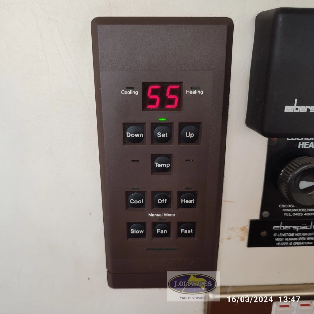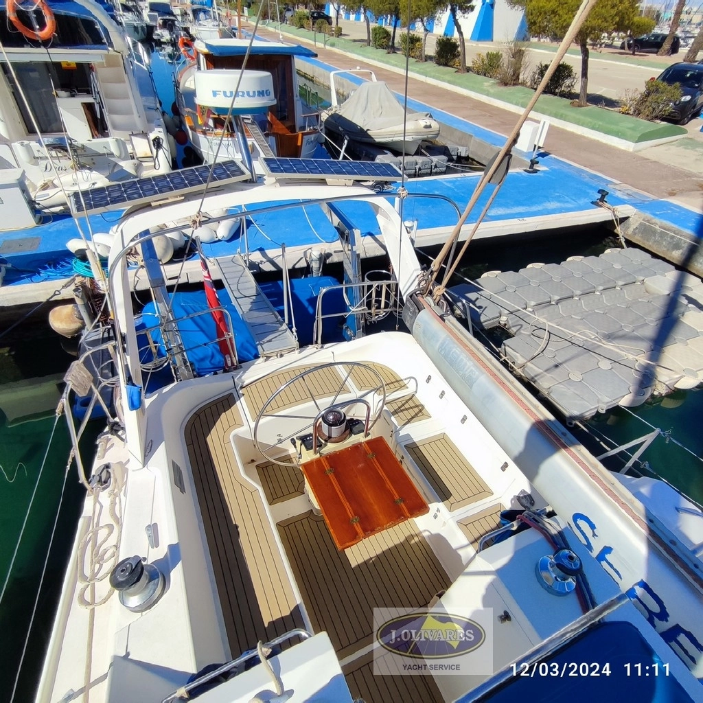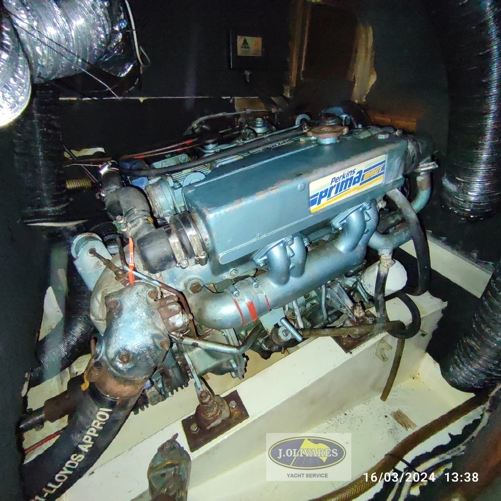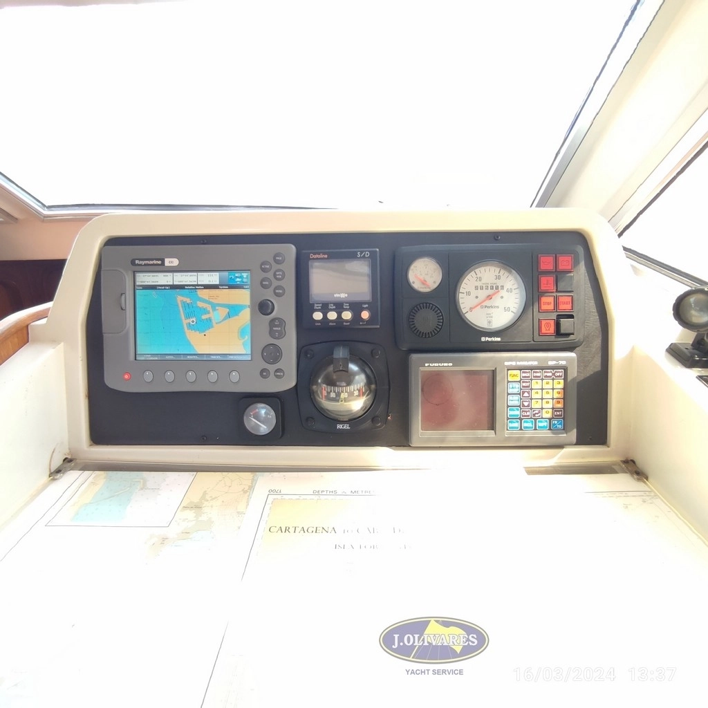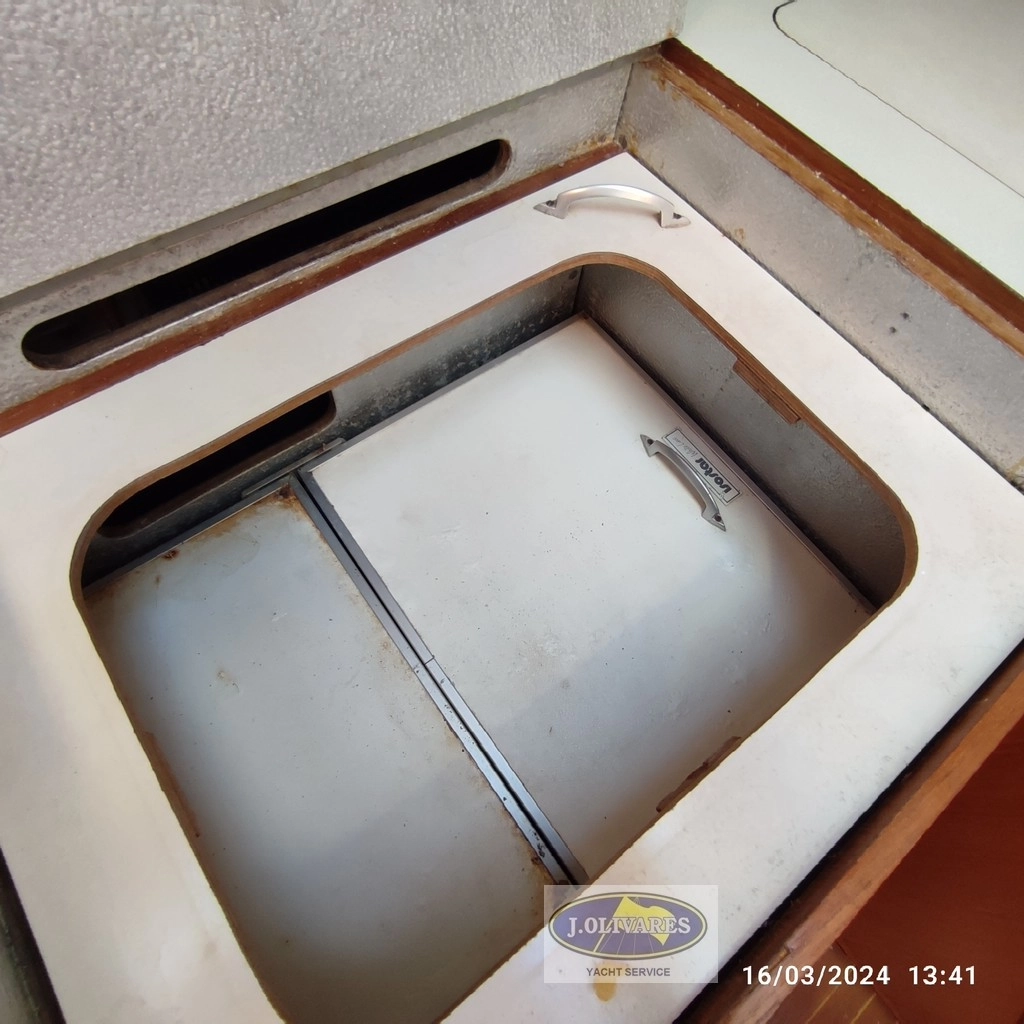 MOODY ECLIPSE 43 (1990) Año: 1990 Bandera: Reino Unido (Nunca Española) Eslora: 12,95 m Manga: 4,26 m Calado: 1,47 m Motor: Perkins Prima 80T(Diésel 80cv) Depósito combustible: 410 litros. Depósito de agua: 450 litros. Electrónica: Piloto automático, sonda, GPS, compás, corredera, plotter, equipo de viento, radar, VHF, AIS, hélice de proa. Velas: Mayor con enrollador en palo, foque con enrollador, génova con enrollador, spinnaker con tangón Equipamiento cubierta: Solarium de proa y popa con colchonetas, 2 anclas con cofre, molinete eléctrico nuevo de 1.500w, plataforma de baño con escalera, pescantes, pasarela manual, winches eléctricos, ducha en popa, asientos, mesa y altavoces en bañera, arco de radar, cierre completo para bañera con bimini. Cabinas: 3 + salón convertible Aseos: 2 Cocina: A gas, microondas, fregadero, frigorifico y congelador. Equipamiento confort: enchufes a 220v, baterías de motores y servicios(5 baterías en total), generador eléctrico Onan 5kw, cargador con toma a puerto, 2 unidades de aire acondicionado, purificadora de agua, paneles solares, calefacción, calentador de agua (Nuevo en 2023).