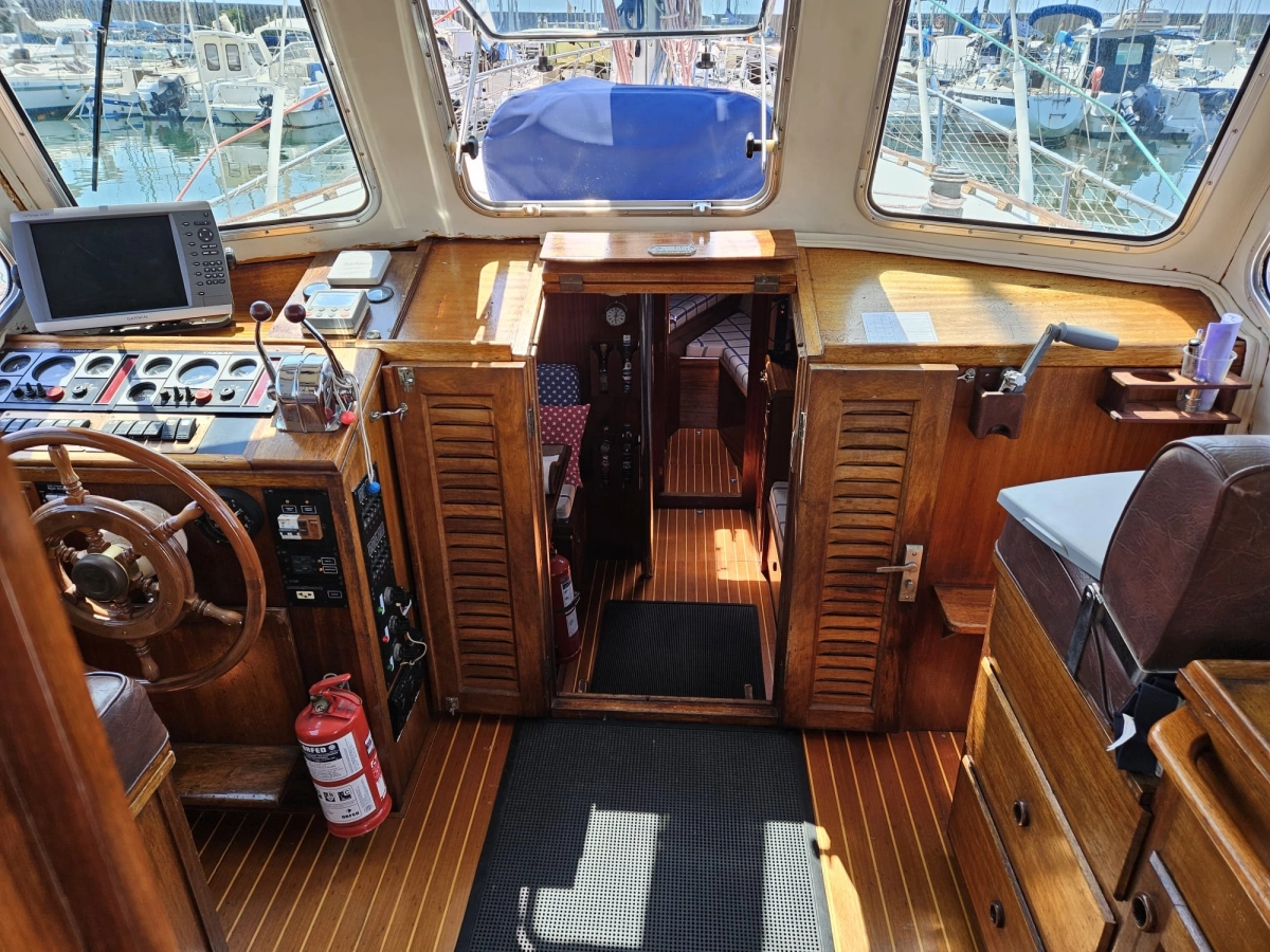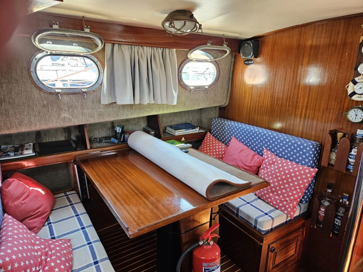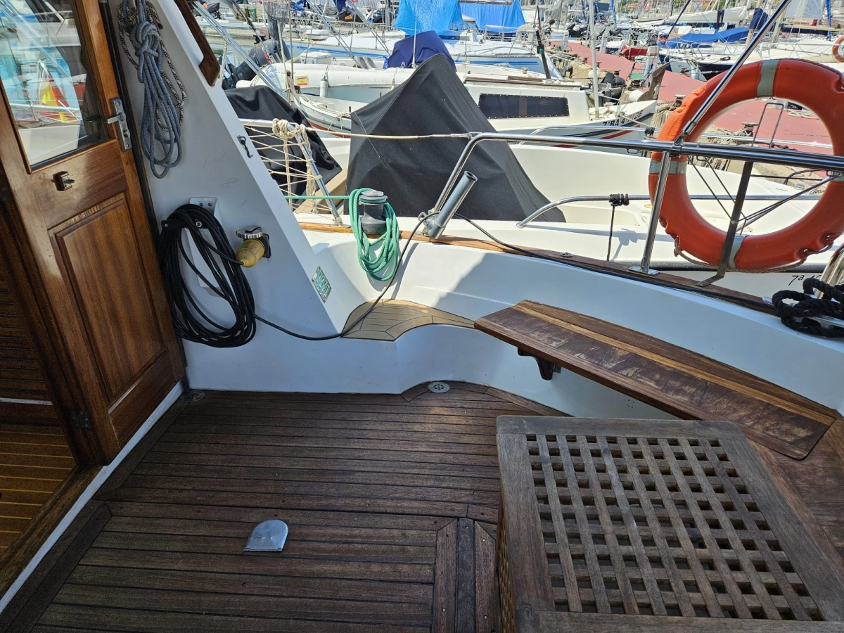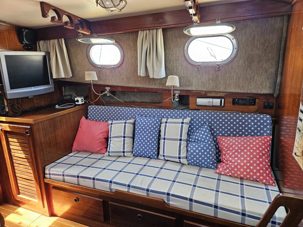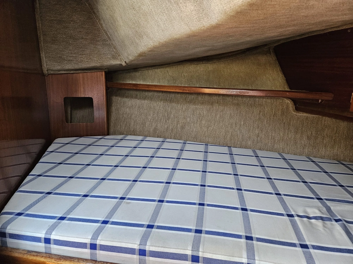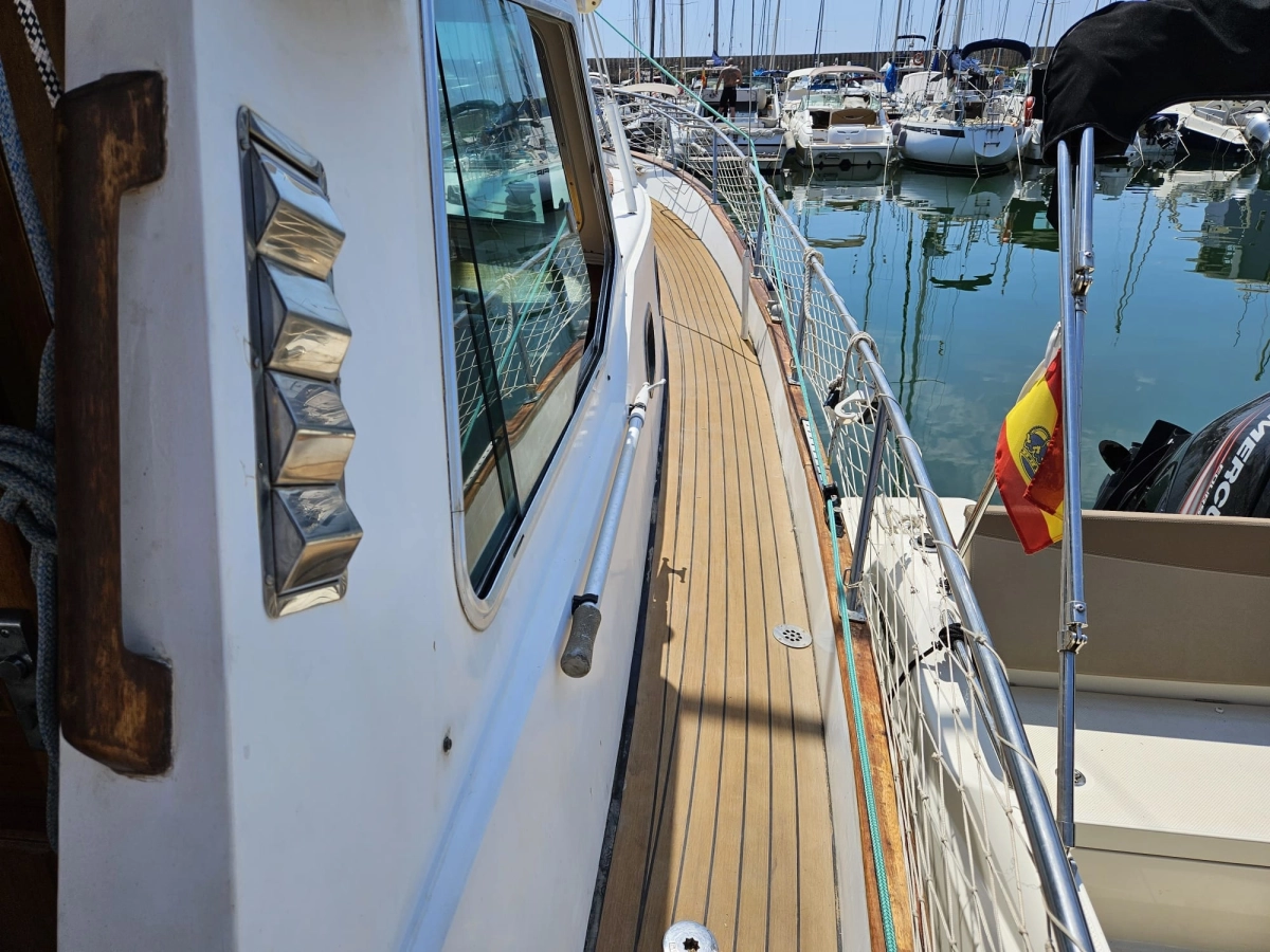 1 Cabina 1 Baño, WC eléctrico, Vela Mayor con Lazy Back, Génova enrollable, GPS Plotter Garmin 4005, Piloto automático, Equipo de viento, Cargador de baterías, Toma tierra, Hélice de proa, Molinete eléctrico, Agua caliente, Nevera eléctrica (falta carga gas), Entrada proa con escalera Inox, Plataforma de baño, 2 Escaleras de baño, Toldo popa, fundas en ventanas, Balsa y radiobaliza a revisar, Bocinas secas ejes, Motores nuevos año 2000, 1.200 horas de navegación, Bandera española, Uso privado.
