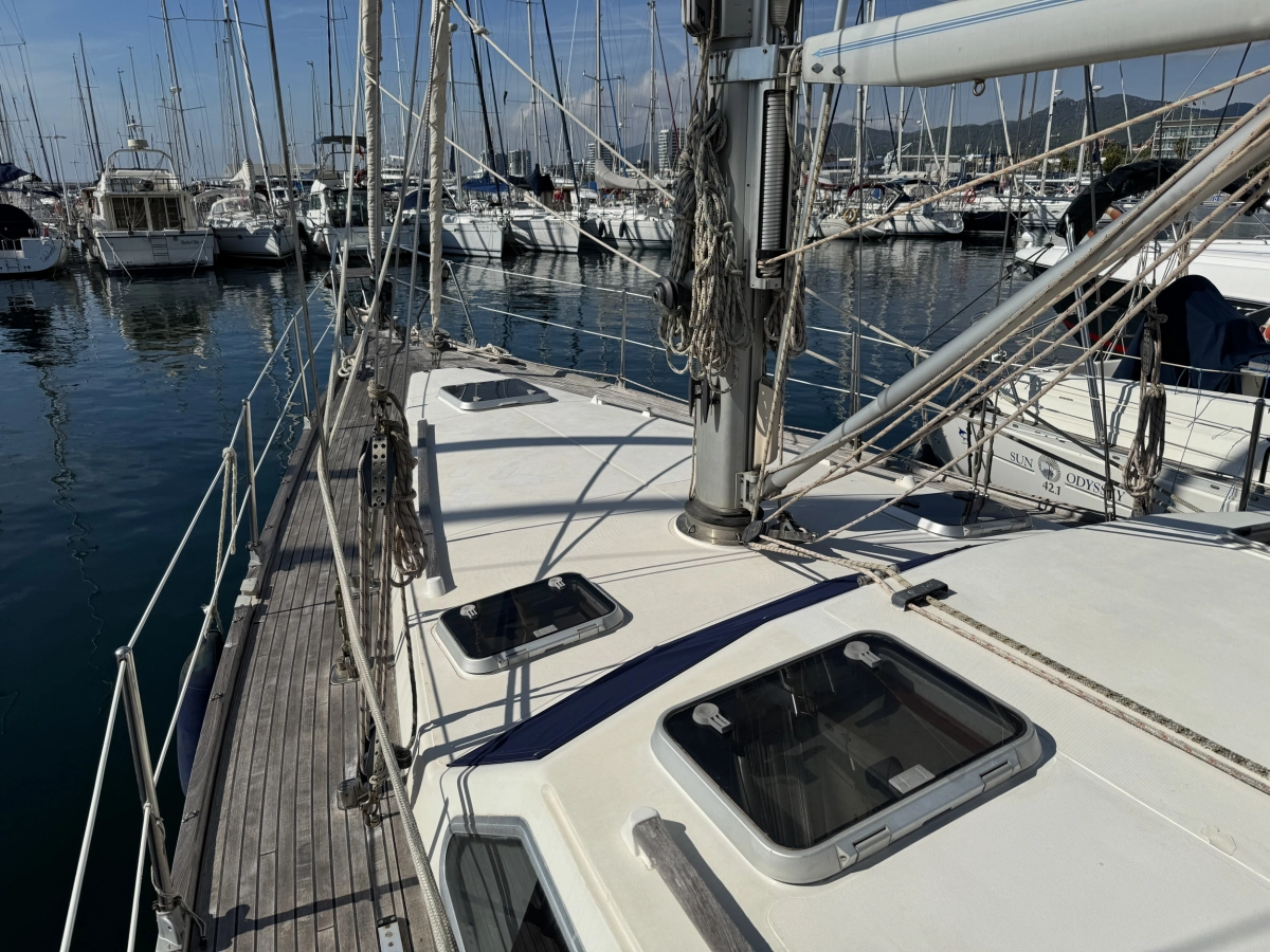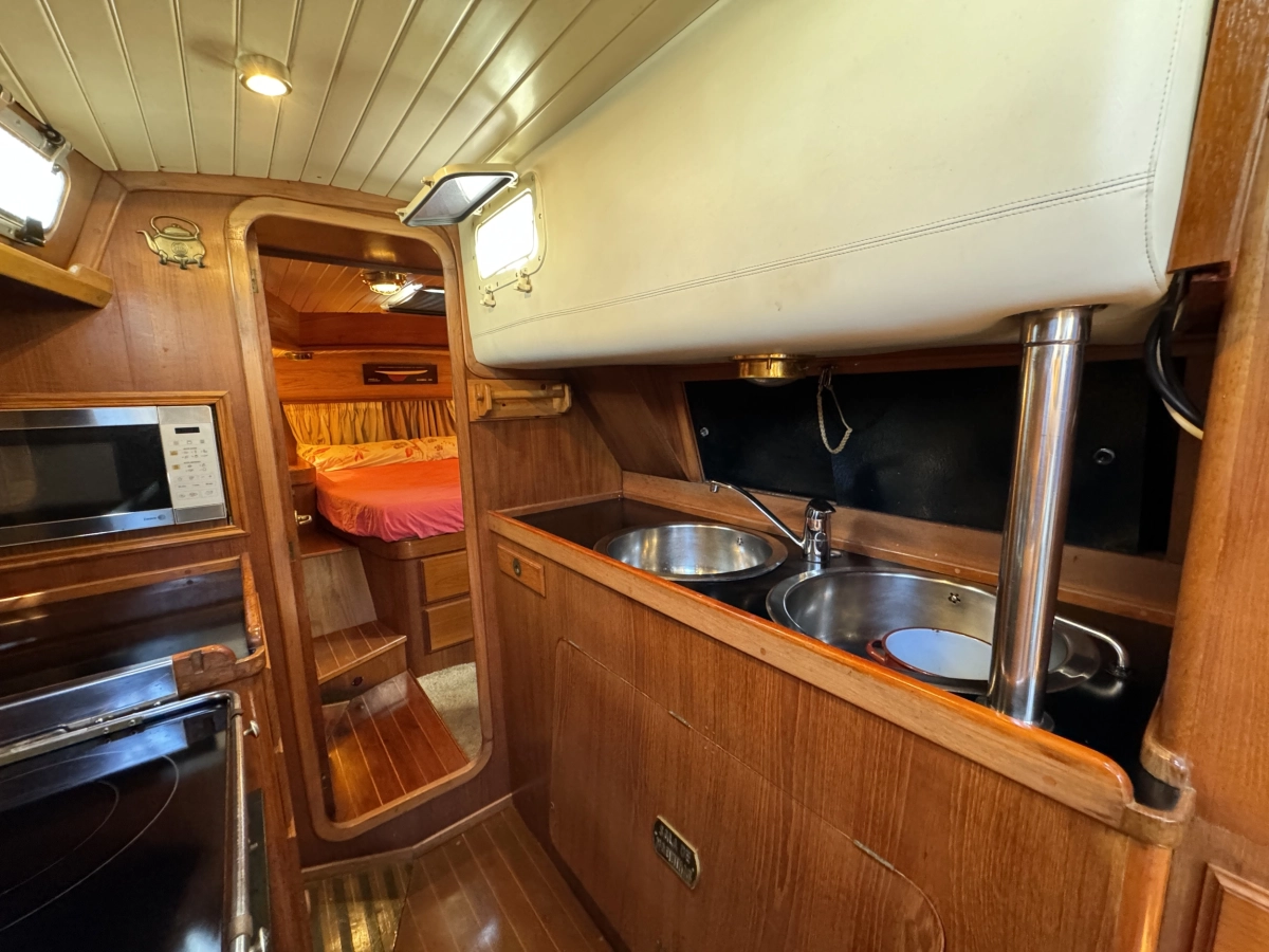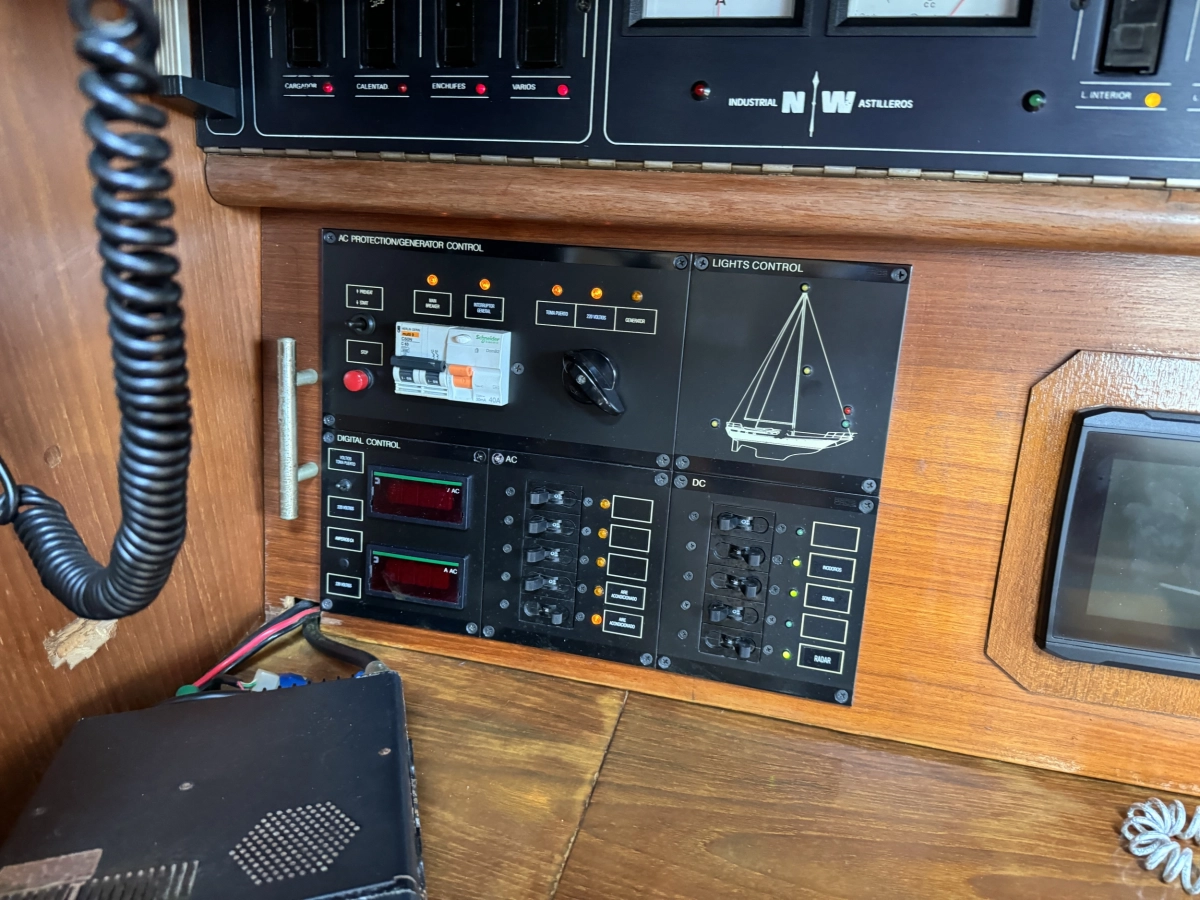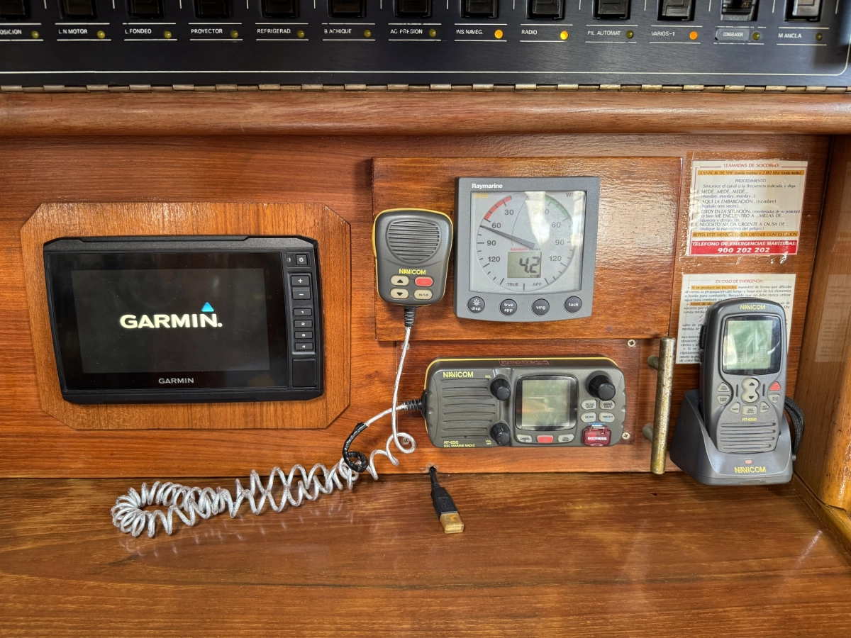 1 cabina 1 Baño completo, Conejera en popa, GPS Plotter Raymarine C80, VHF Raymarine 54E, Radar Furuno, AIS Camino 10B, Bomba agua presión, Cocina a gas 2 fogones, Nevera eléctrica, Sonda + corredera, Equipo de viento, Conexión 220V, Cargador de baterías, Medidor de baterías, Vela Mayor Fullbaten y Génova enrollable, Instalación eléctrica restaurada, Jarcia + crucetas 2017, Tratamiento osmosis 2023, Motor nuevo de 2001.
