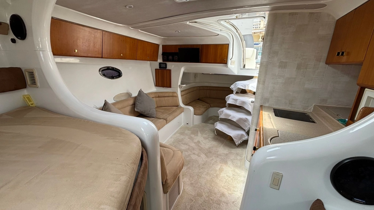 1 Cabina 1 Baño, Motores nuevos 2017, 400 horas de funcionamiento, VHF con GPS nueva, GPS Plotter Northstar, Tapizados exteriores nuevos, Faro pirata electrónico, Smart TV, Equipo audio BT pantalla táctil, Nevera eléctrica, Microondas, Luces LED, Aire acondicionado, Ducha en bañera, WC eléctrico, Motores conexión Bluetooth/móvil.