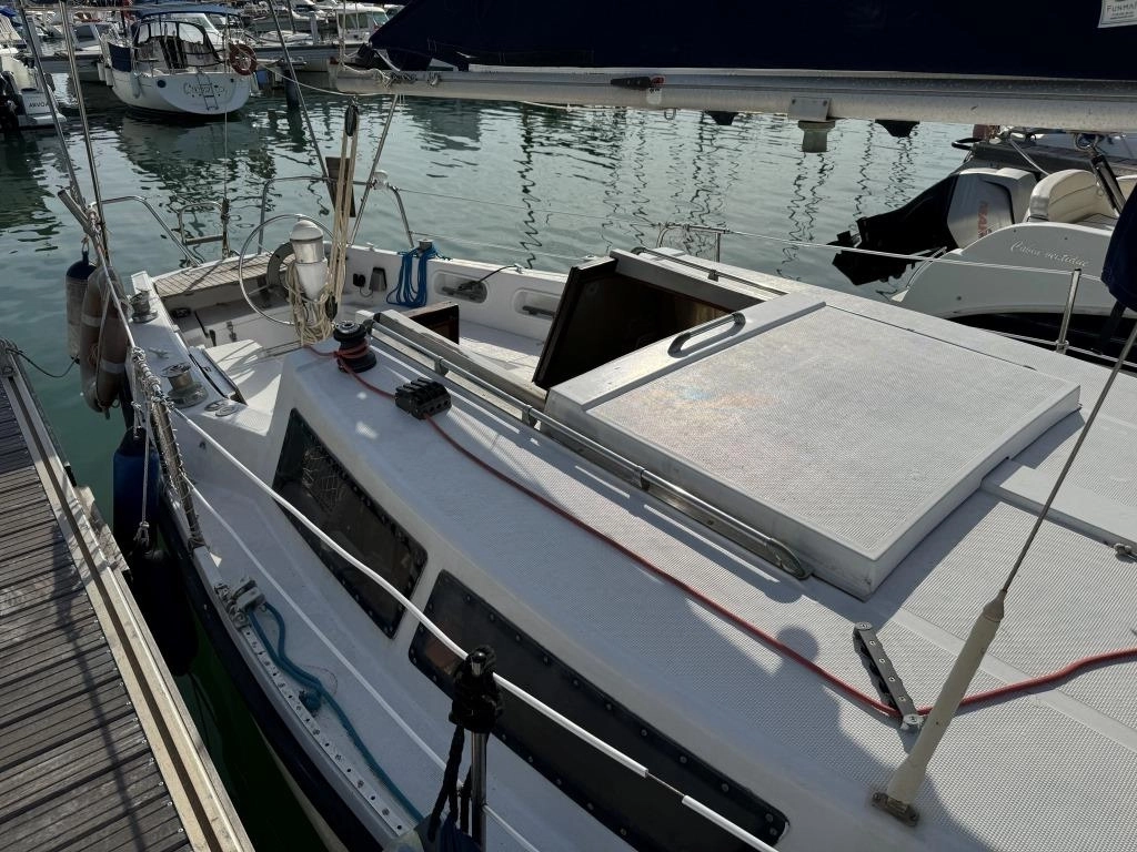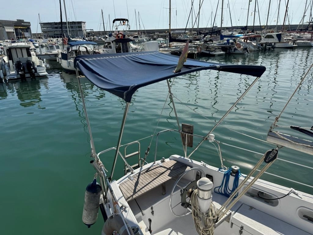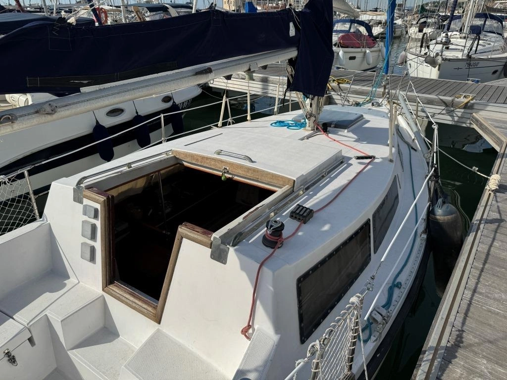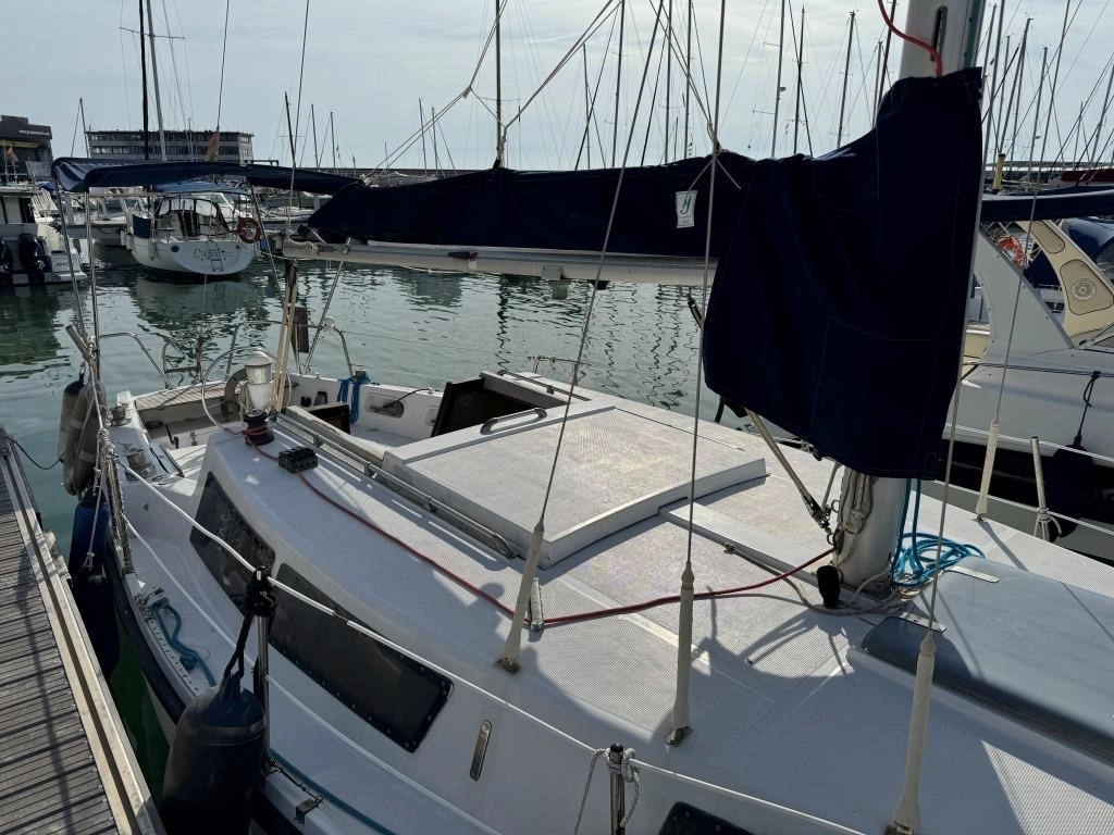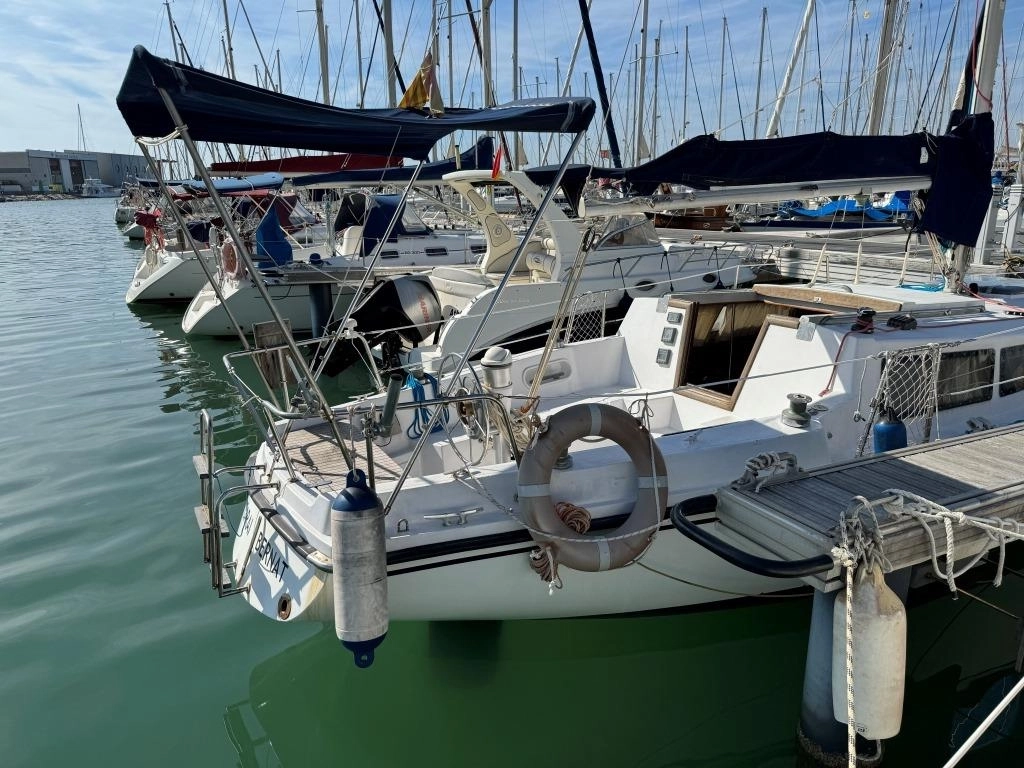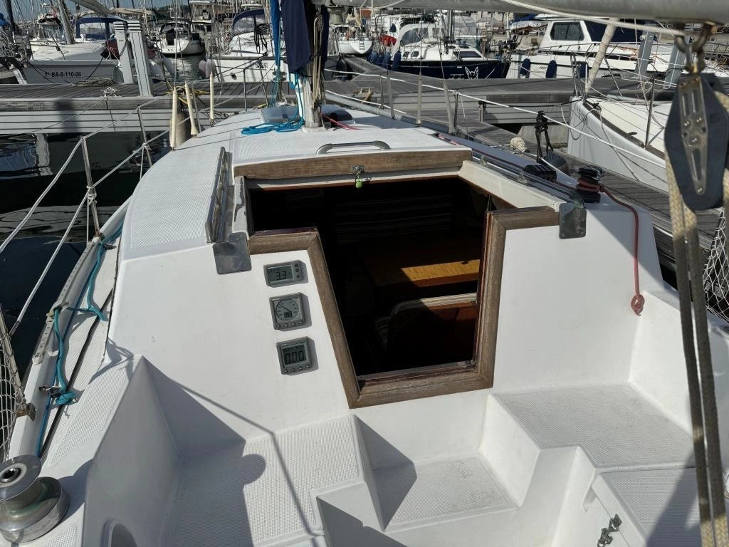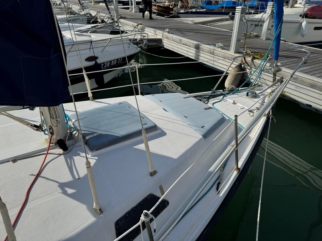 1 Cabina 1 WC químico, Sonda Raymarine ST60+, Equipo de viento ST60+, Profundímetro Raymarine ST60, Piloto autom. Raymarine ST6002, Toma 220V + cable, Cargador de baterías, VHF Intech MT-500, Radio Pioneer + altavoces, DVD USB, Luces LED interior, 2x 50 L depósito gasoil, Soporte motor fueraborda, Nevera eléctrica nueva 2024 (220V), Horno microondas, Colchonetas bañera, Toldo Bimini, Molinete eléctrico nuevo 2022, Selector de baterías, Escalera de baño. Motor Solé 29 Hp.