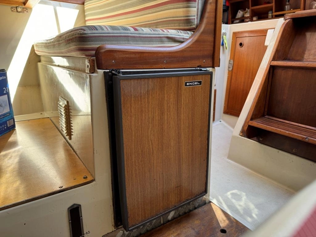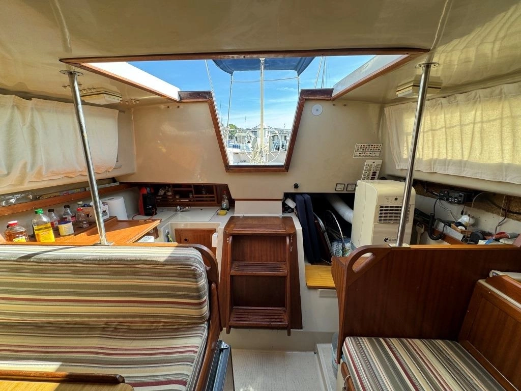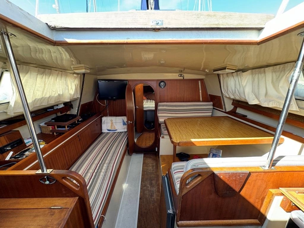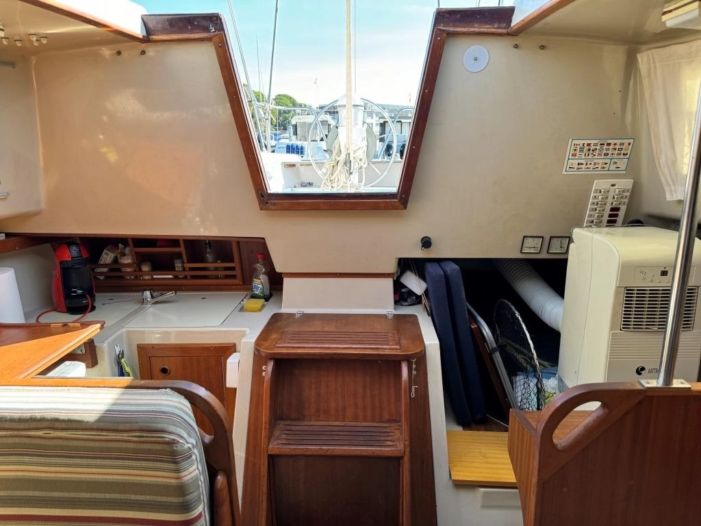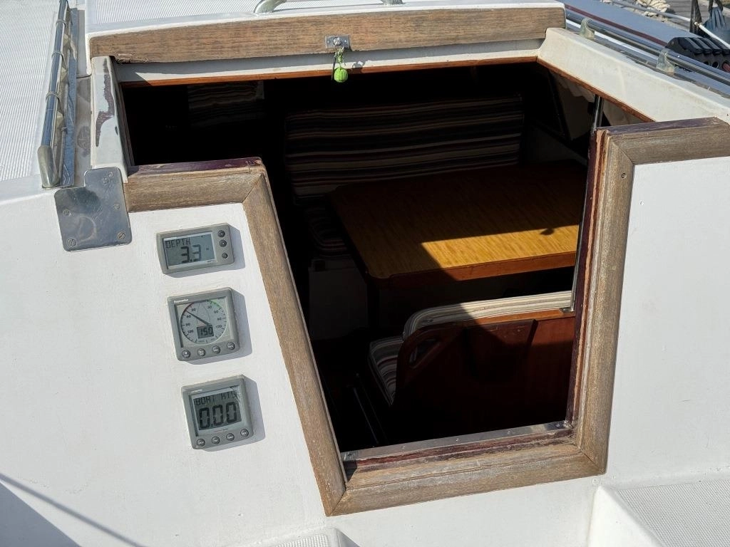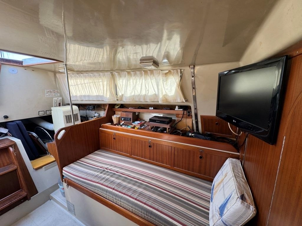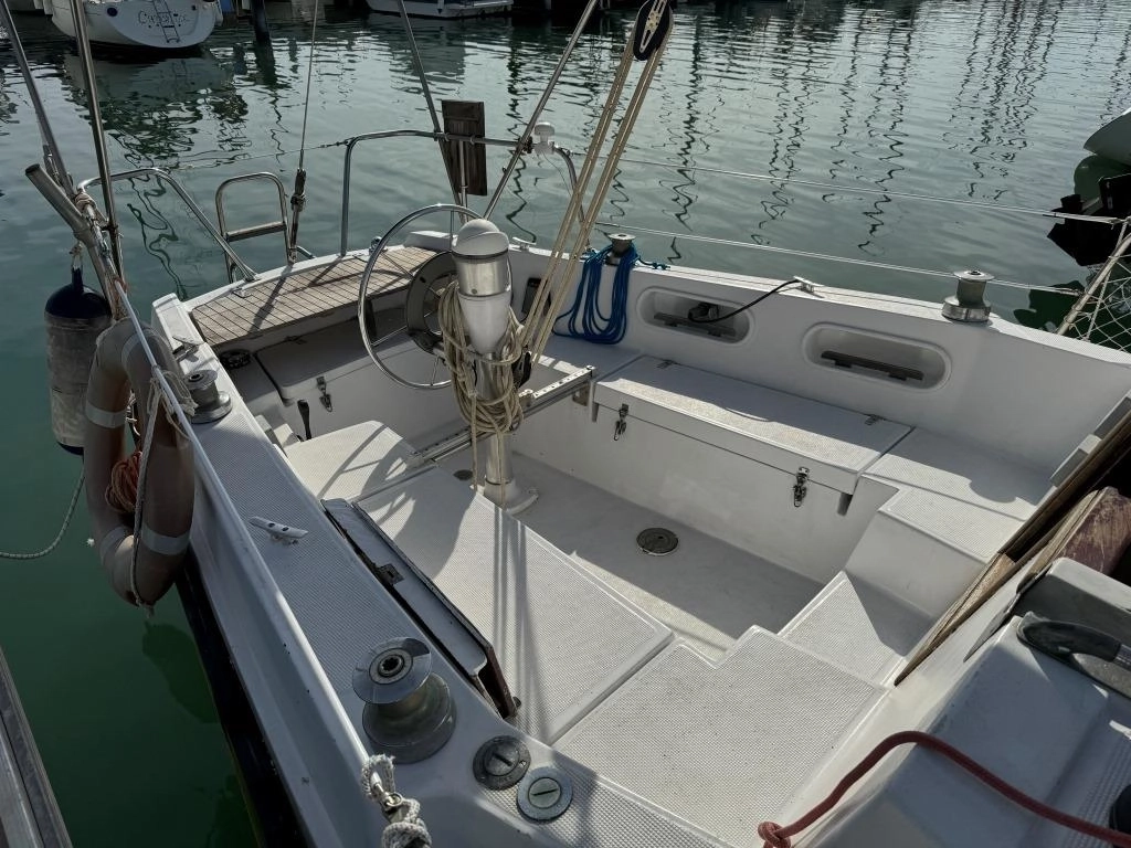 1 Cabina 1 WC químico, Sonda Raymarine ST60+, Equipo de viento ST60+, Profundímetro Raymarine ST60, Piloto autom. Raymarine ST6002, Toma 220V + cable, Cargador de baterías, VHF Intech MT-500, Radio Pioneer + altavoces, DVD USB, Luces LED interior, 2x 50 L depósito gasoil, Soporte motor fueraborda, Nevera eléctrica nueva 2024 (220V), Horno microondas, Colchonetas bañera, Toldo Bimini, Molinete eléctrico nuevo 2022, Selector de baterías, Escalera de baño. Motor Solé 29 Hp.